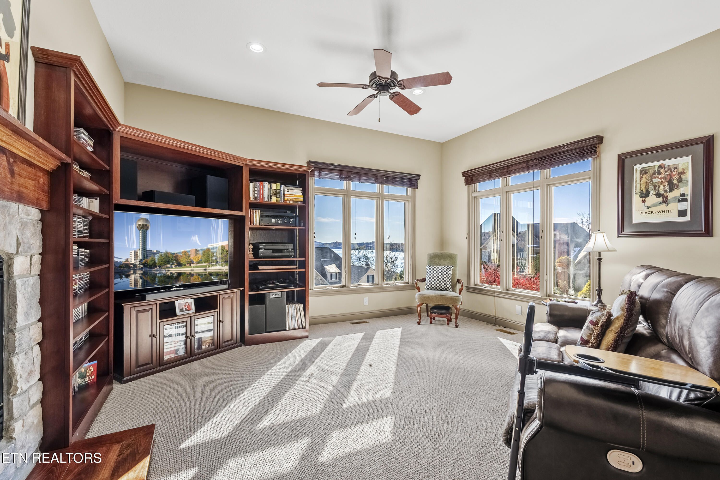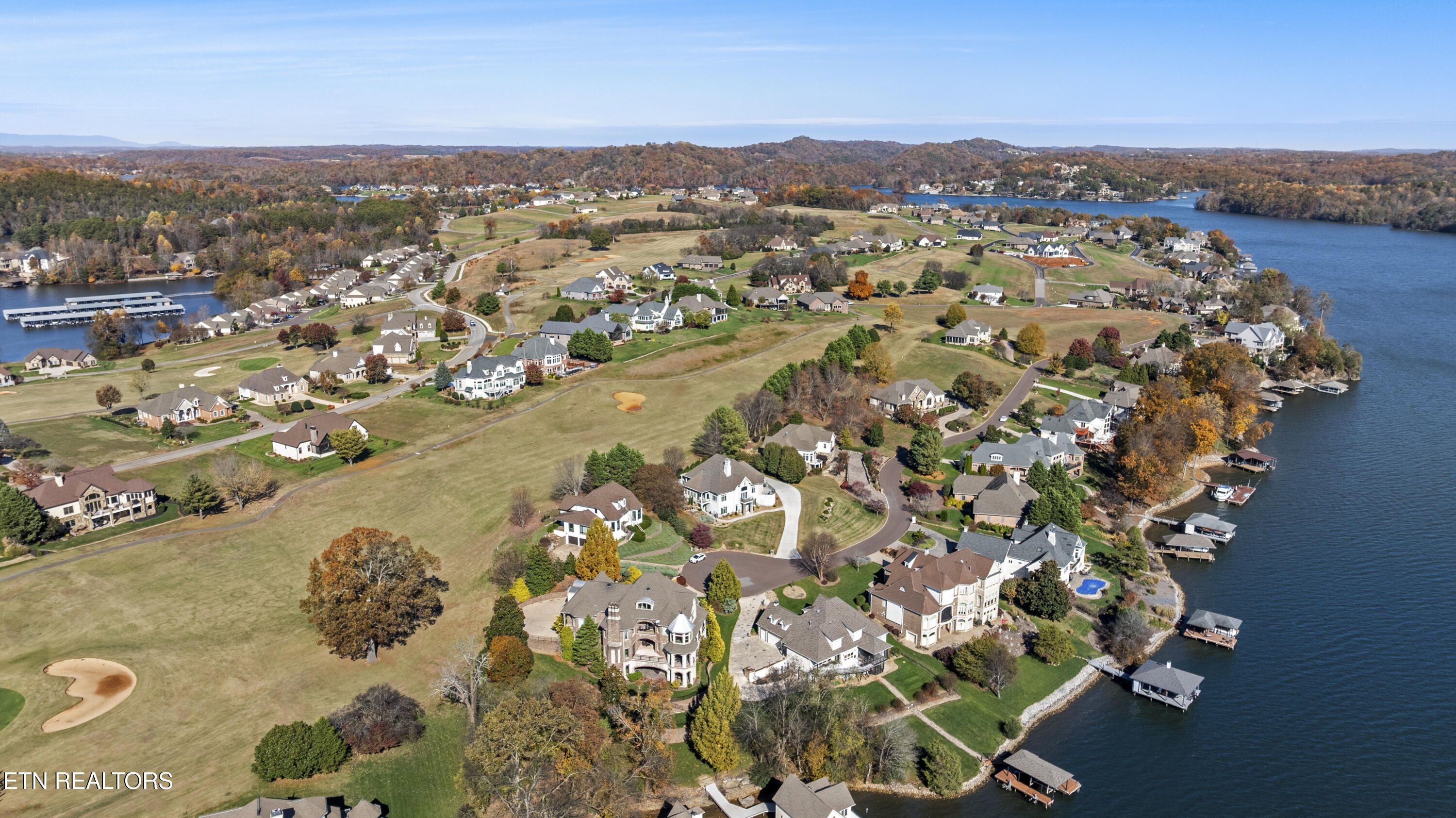 Wonderful VIEW of Tellico Lake main channel and The Smoky Mountains! At the end of a quiet cult-du-sac, and on the 15th Fairway with a Premier Golf Membership at Rarity Bay Country Club. Gated! Positioned directly across the street overlooking Tellico Lake and luxury homes. It's an impressive view! Custom designed. Quality. Lots of built-ins. Meticulously maintained. Original owner. His and Hers Offices. Craft Room. 4-season room with a Lake View. Oversized 2 Car garage + 1 Golf Cart garage . 4 Bedroom + Office. Lake View Master Suite with walk-in closet and direct access to laundry room. LAKE VIEW Living Room. Lake View Library. Fireplace. 3 Lake Viewing Decks. Formal Dining room. Big cherry kitchen. Tall 10 foot ceilings throughout. Lower level has a large open Recreation Room, Bedroom 2 (Lake view) & 3 (Lake View) & 4 (or Office #2), oversized bathroom with a cedar-lined sauna. Bar with a full size Refrigerator/Dishwasher. Excellent storage room, too. Come see for yourself.