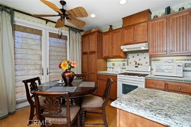 Former Model Home Located In The Prestigious, Guard-Gated Four Seasons 55+ Golf Community By K. Hovnanian. This Beautifully Maintained Single-Story Residence Reflects True Pride Of Ownership And Offers 1,439 Square Feet With Two Bedrooms And Two Bathrooms, Featuring Extensive Floor-To-Ceiling Upgrades Throughout. Situated On An Extremely Private Corner Lot At The End Of A Cul-De-Sac, This Home Features Two Courtyards — One At The Front Entry And One Centrally Located — Both Enhanced With Custom Saltillo Tile. The Center Courtyard Includes A Tranquil Water Feature, Creating A Private Outdoor Retreat. A Custom Solid Wood And Glass Front Door Welcomes You Inside, Where You’ll Find A Custom Tile Inlay Entry, Nine-Foot Ceilings, Designer Wallpaper Accents, Plantation Shutters, Custom Draperies, Ceiling Fans Throughout, True Bamboo Flooring, A Built-In Entertainment Center, And Three Sets Of French Doors. Owner Created Enclosed Courtyards With Wrought Iron Fencing. The Cook’s Kitchen Offers A Beveled Glass Block Window Over The Sink, Granite Center Island, Raised-Panel Cabinetry With Nickel Hardware, White Appliances, Recessed Lighting, Custom Tile Countertops And Backsplash, And An Exterior-Vented Exhaust Hood Over The Range. The Great Room Is Finished With Custom Wainscoting, Crown Molding, And Surround Sound, Which Extends To The Primary Suite. Bedrooms Are Thoughtfully Located On Opposite Sides Of The Home For Privacy. The Primary Suite Features Chair Rail And Wainscoting Accents, An Elegant Chandelier, Walk-In Closet, Dual Sinks, Custom Tile Countertops, A Custom Tile Shower, White Brick Inlay Flooring, And A Leaded Glass Window For Added Privacy. The Secondary Bedroom Includes Chair Rail Detailing. Additional Highlights Include Black Wrought Iron Fencing With Two Gates, French Doors With Sliding Screen Doors, Indoor Laundry, Artificial Turf, Clay Tile Roof, Rain Gutters, A Two-Car Attached Garage, And Ample Additional Parking Behind The Property. This Charming Home Is Just A Short Walk To The Lodge Clubhouse. Community Amenities Include Shuffleboard, Bocce Ball, Pickleball, Tennis, Swimming Pool And Spa, Library, Arts And Crafts Room, Fitness Center, Aerobics Room, Billiards Room, Ballroom, Rose Garden, Outdoor Kitchen With BBQs, Indoor And Outdoor Fireplaces, Theater, Computer Room, Card Room, Ping Pong, Walking Trails, Clubs, Social Events, Dances, And Outdoor Concerts. Additional Fees Apply For Golf, Bistro Restaurant, Salon, And Massage Services.