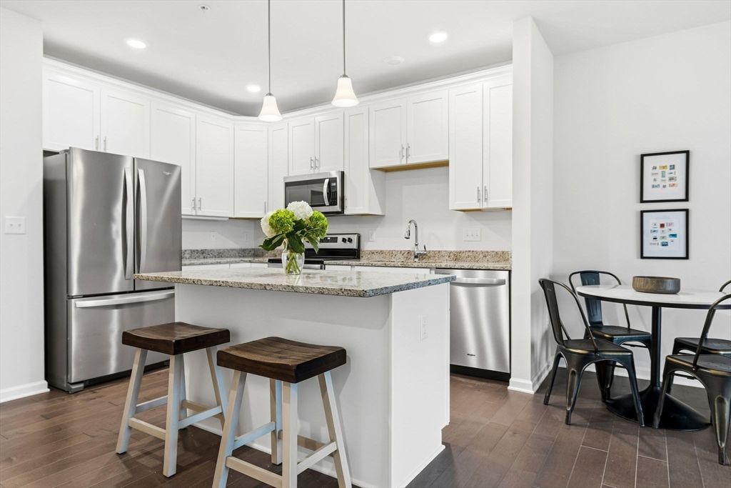 Experience comfort, convenience and community at Martin's Landing- North Reading's premier 55+ adult community. This beautifully maintained 1 bedroom, 1 bathroom + den with 1 garage parking space offers single-level living and an open concept layout. The modern kitchen features granite countertops, stainless steel appliances, ample cabinetry and a center island with seating. Light & bright living/dining area opens to a private balcony, perfect for relaxing. A versatile flex space is ideal for a den, home office, reading nook, formal dining room, or exercise room etc. Spacious primary bedroom with large closet. Stylish bath with shower stall. In-unit laundry room with shelving offers additional storage. Pet-friendly community with access to walking trails, clubhouse, fitness center, meeting rooms, outdoor grilling areas, social activities and more. All within easy access to Route 93, shopping, restaurants and Harold Parker State Forest.