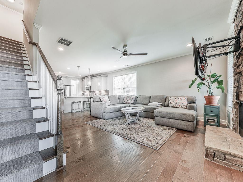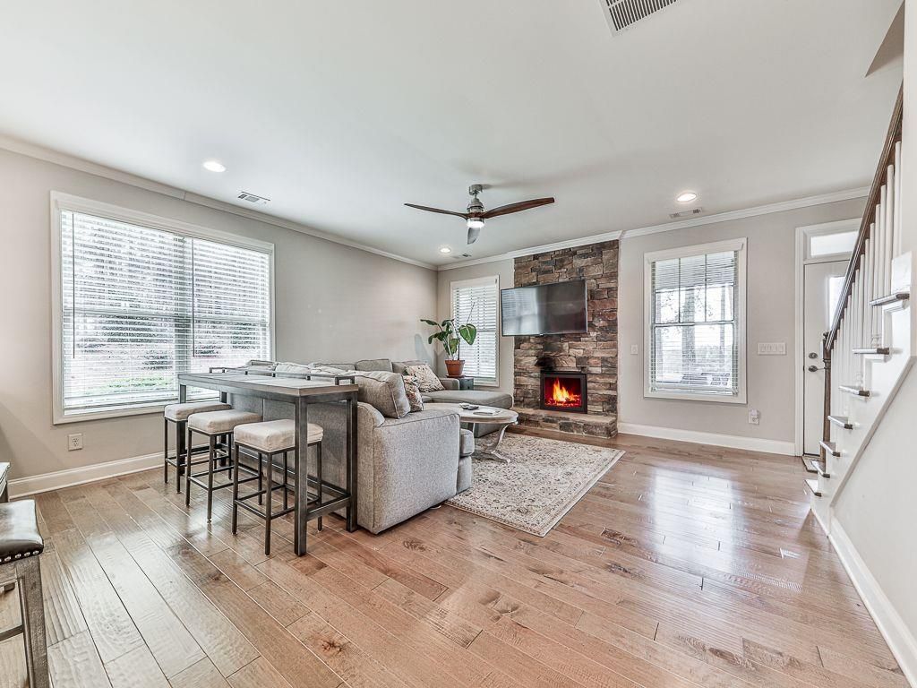 This home feels like a warm hug from the moment you step inside! Executive home sits on oversized cul-de-sac lot with breathtaking views of 10th fairway and mountain views. Entryway with tray ceiling leads to separate dining room filled with light and wall of windows. Open and bright kitchen and living area make entertaining a breeze! Kitchen has oversized, shaker style fluted front cabinets with brushed nickel pulls. Quartz countertop with beautiful herringbone pattern glass blacksplash rounds out kitchen with 5 burner gas range and stainless appliances! Comfortable living room houses gas fireplace with stone surround. Beautiful golden hardwoods on main level with crown molding and upgraded 6 inch base moldings throughout. Oversize primary suite on main level has peaceful wood, mountain, and golf course views. Primary bath has two vanities for convenience and ceramic tile floors with ease of walk in shower with cut out and extra long bench. Two walk in closets as well! Upstairs you will find 3 additional bedrooms and full bath. Upstairs utility room also has extra storage space! Let's not forget the extended garage for oversized vehicle or more storage space. You will love the generous screened porch area that includes recessed lights and designer touch ceiling fans overlooking the tranquil view. This area also offers uncovered space with stone pavers perfect for the grill master! Soleil Laurel Canyon has so much to offer, including 24 hour manned gate, clubhouse with library, billiards, indoor-outdoor pools/sauna, garden plots and greenhouse, tennis and pickleball, copious amounts of clubs will always keep you social and engaged. Truly, a remarkable lifestyle close to shopping, restaurants, and state of the art medical facilities!