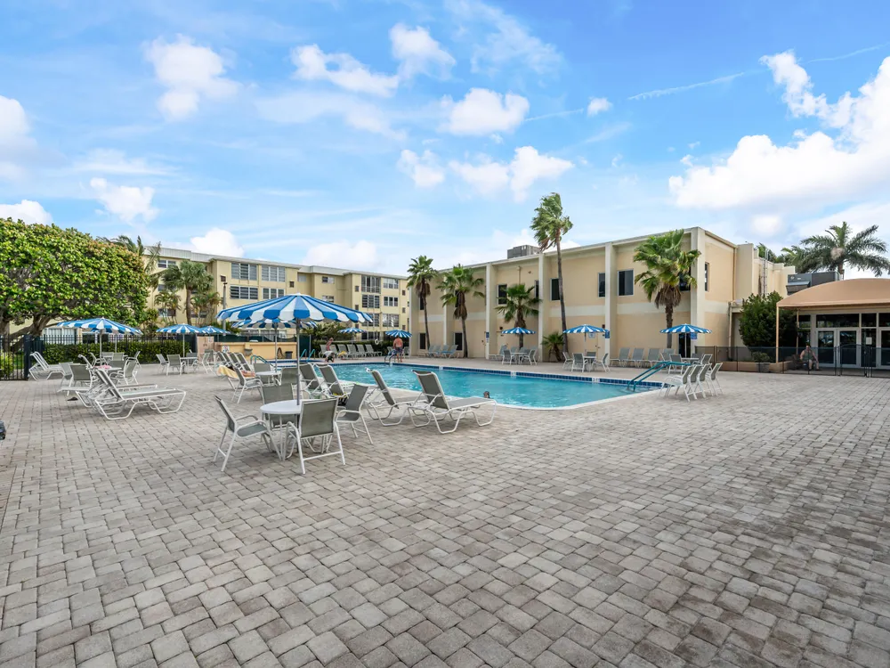 Beautifully maintained 1st floor, 2 bedrooms, 2 full bathrooms, walk in closets, enclosed lanai, kitchen nook, outdoor patio space & more! 1 assigned parking spot & a ton of guest/visitor parking right outside your front & back doors. 2nd Owner(original was Family), meticulously maintained & cared for. Washer & Dryer allowed in 1st floor units. Laundry rooms on 2nd, 3rd & 4th floors(elevators to use of course)! 55 & up community. Tile in living areas, new laminate in bedrooms. Amenities included but not limited to, 2 pristine swimming pools, Gym, Rec Center! Close to Beautiful South Florida Beaches, Shopping, Grocery Stores & Malls. Condo fee includes water, cable, internet, community maintenance & pest control! Lanaia & bedrooms have impact windows.