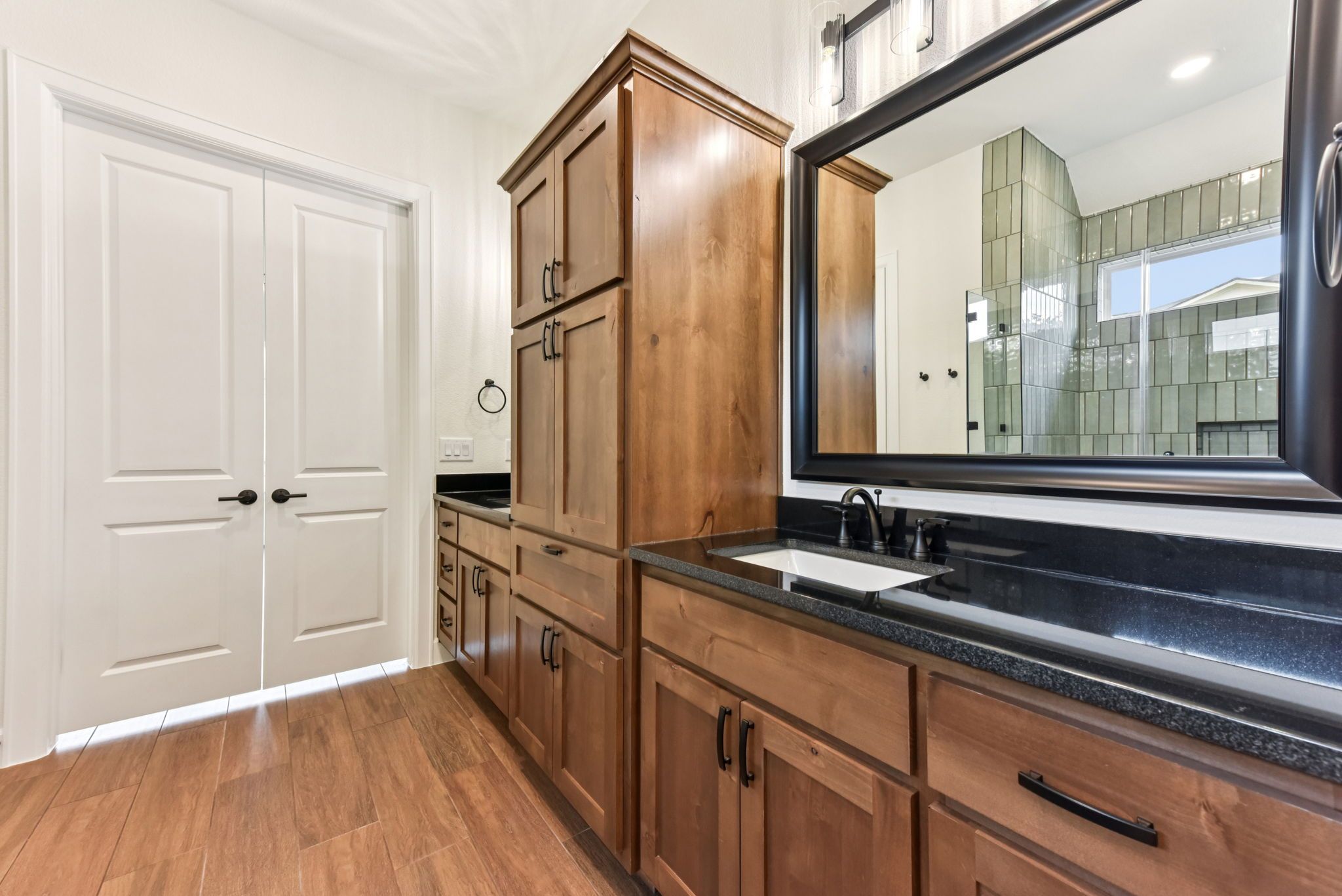 - Ceiling Fan(s), Dry Bar, Double Vanity, Granite Counters, Kitchen Island, Main Level Primary, Open Floorplan, Pantry, Smart Home, Walk-In Closet(s)