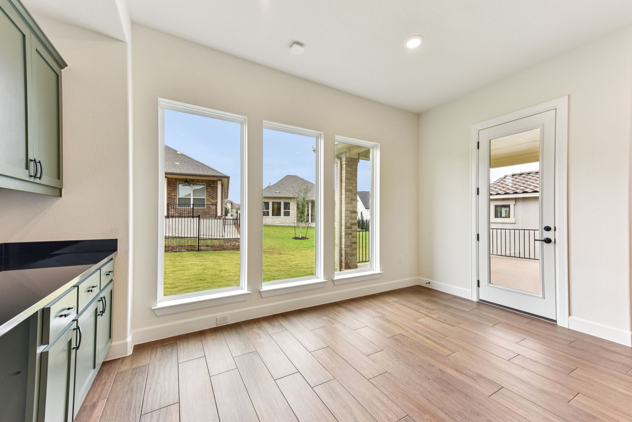 Auburn plan with upgraded kitchen, upgraded granite countertops, dry bar, enlarged covered patio, tile flooring throughout, 4' garage extension, optional study with double doors