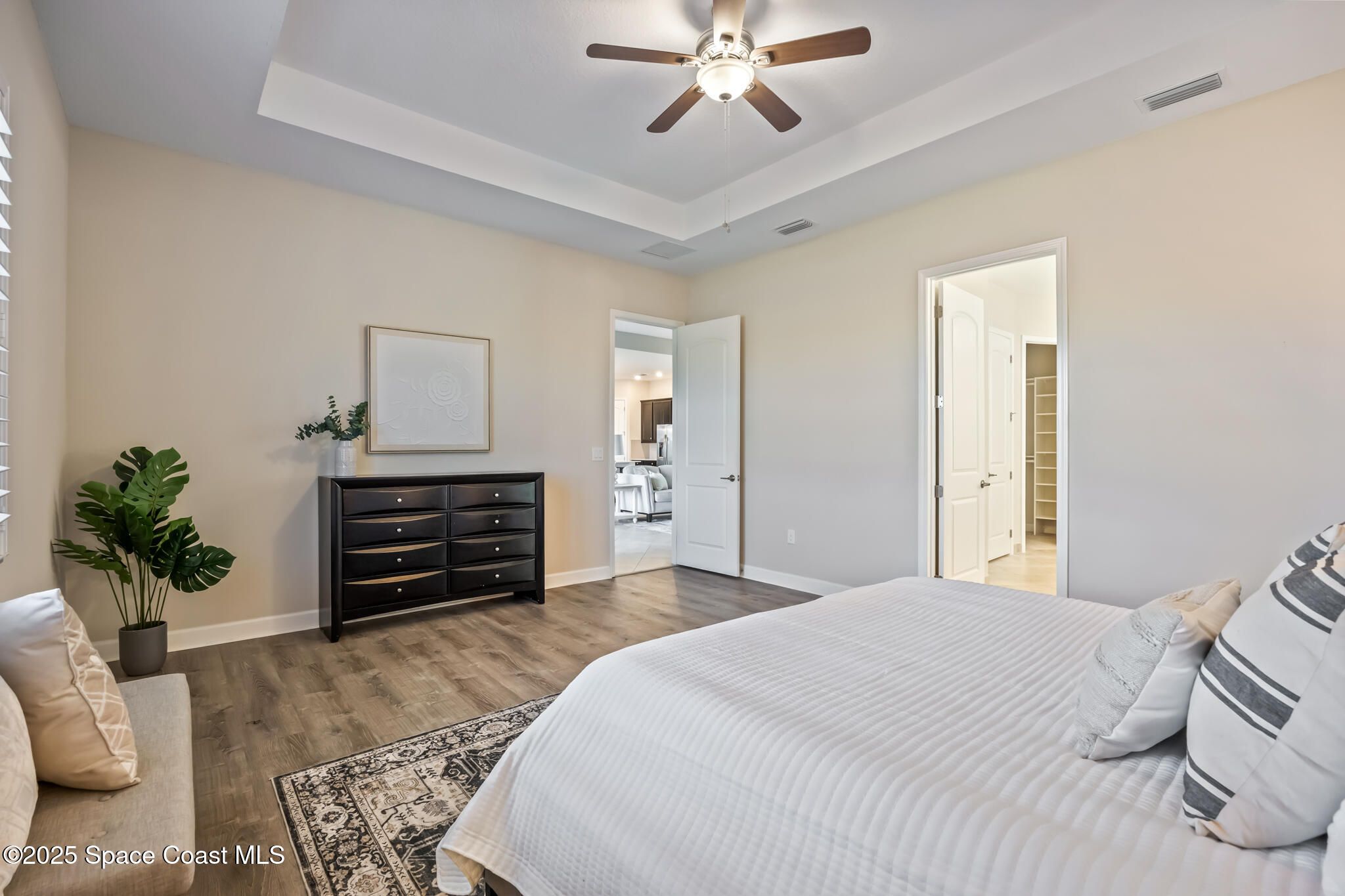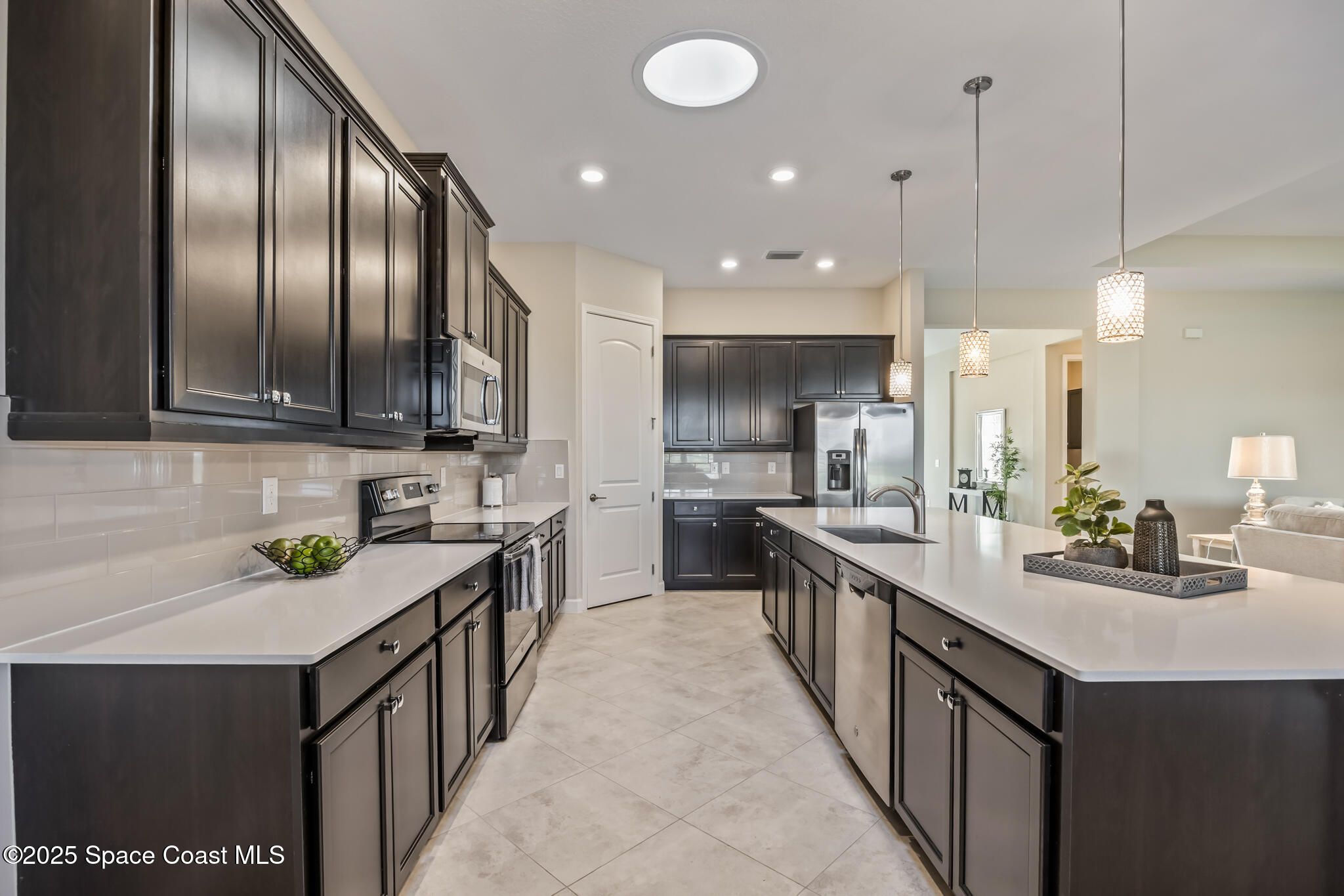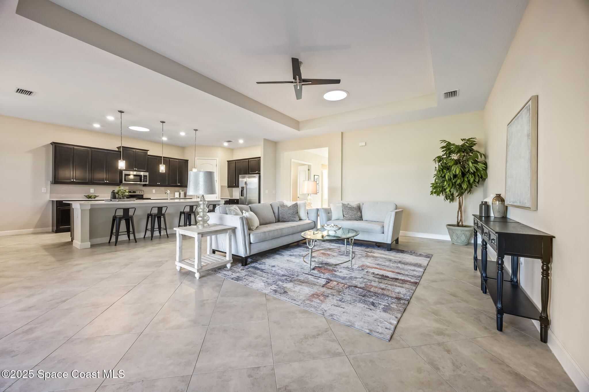 Welcome to this stunning Summerville floor plan, where modern comfort meets true Florida living. Designed for effortless entertaining & everyday enjoyment, this home offers a bright, open layout filled with natural sunlight. Step inside to find a spacious great room seamlessly connected to the dining area & a chef-inspired kitchen featuring an expansive island, sleek modern appliances, & ample cabinetry. Just beyond the great room, sliding glass doors lead to your covered oversized lanai with supreme lake views. This thoughtful layout includes a second master guest suite, providing a private retreat for visiting family & friends, complete with its own full bathroom. Across the foyer, you'll find an office or 4th bedroom, an additional guest bedroom, and a second full bath. The primary master suite is a true sanctuary, offering a spacious bedroom, dual walk-in closets enhanced with custom shelving and motion-sensor lighting, and a luxurious bathroom with a garden tub, separate shower, and dual vanities. Additional highlights include a three-car garage with powered upper storage racks and attic access, a laundry room with washer, dryer, and freestanding laundry tub, and a prime front-of-community location for quick access to the gate and community center. At the resort-style community center, enjoy endless amenities designed for an active lifestyle fitness center, movie theater, coffee bar, tennis, bocci and pickleball courts, a resort pool plus lap pool, and a grand ballroom perfect for private events. Ideally located just 10 minutes from the beach and 35 minutes from Orlando International Airport, this home perfectly blends luxury, lifestyle, and convenience.