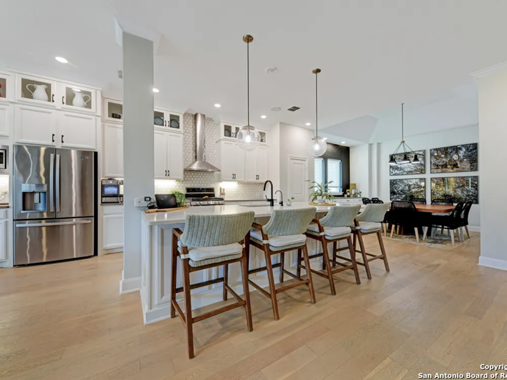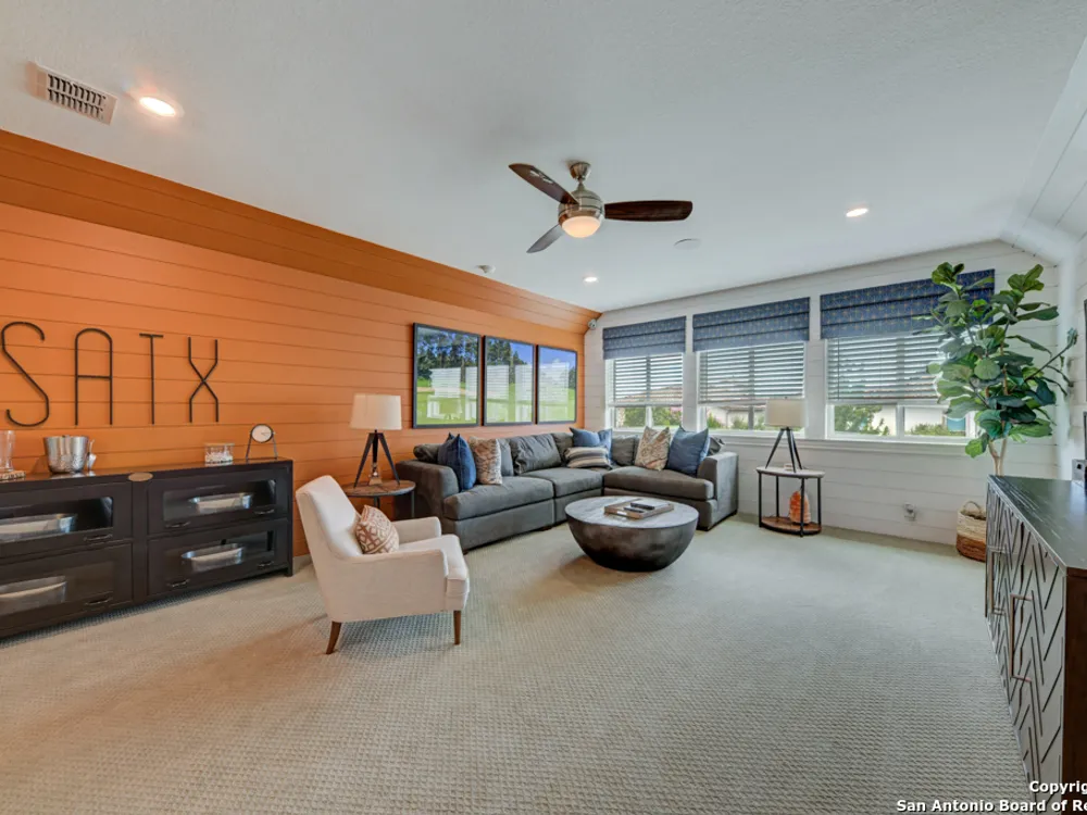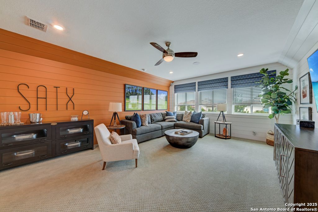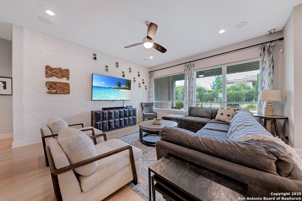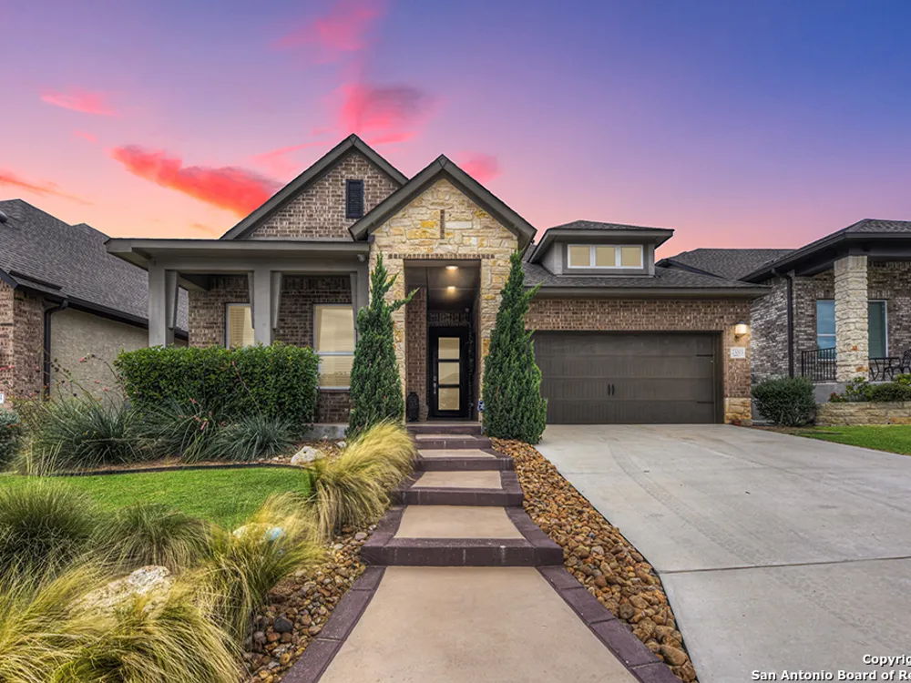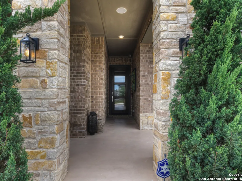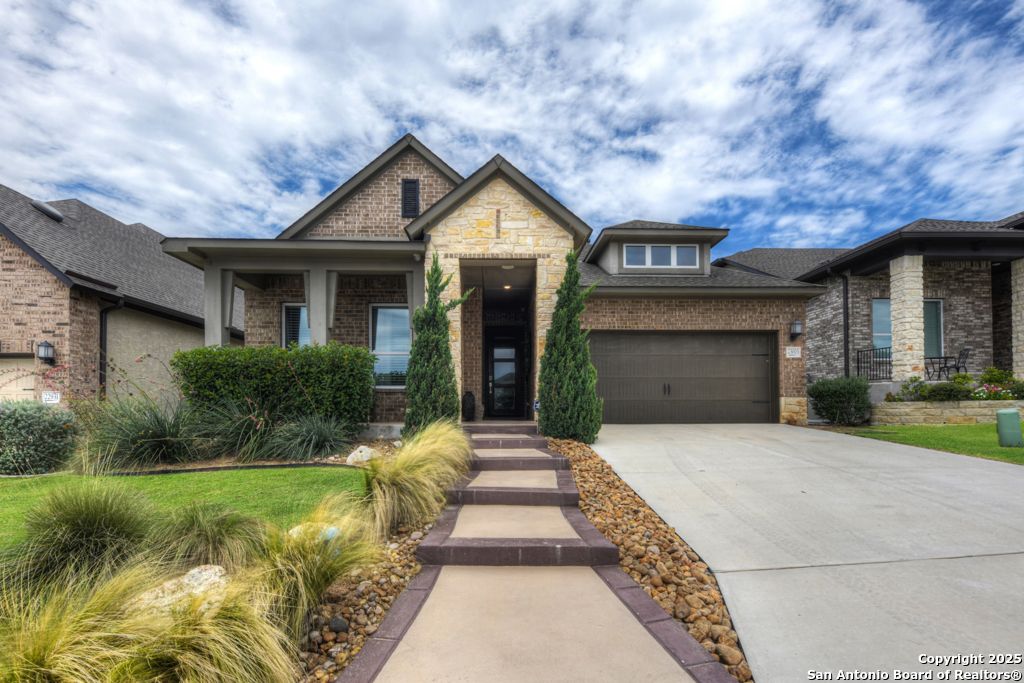 From the moment you step inside this former model home, it's clear-this is something special. Located in the prestigious, gated Campanas at Cibolo Canyons, this 2020-built gem offers a perfect blend of luxury design and everyday comfort. The open-concept layout welcomes you with gorgeous light wood flooring, wainscoting, accent walls, and a striking white brick feature in the living area. Natural light pours in through tall windows, highlighting soaring ceilings and creating an airy, inviting space. The luxury kitchen is a showstopper with quartz countertops, custom white cabinetry, a butler's area, two pantries, and stainless steel appliances. Whether you're enjoying casual meals in the breakfast nook or hosting in the formal dining room, the flow is seamless. All bedrooms are on the main floor in a smart split layout. The primary suite offers a peaceful retreat with a wood accent wall, large walk-in shower, double vanities, and a spacious closet with direct laundry access. Upstairs, a versatile bonus room with half bath is perfect for a media space, playroom, or home gym. Outside, the all-brick and stone exterior adds timeless curb appeal, while nearby walking trails invite daily strolls. As part of Campanas at Cibolo Canyons, enjoy access to resort-style pools, tennis courts, a clubhouse, fitness center, and playgrounds. Ideally located in North San Antonio's 78261, just 11 miles from JBSA-Randolph, with top-tier shopping nearby (HEB, Costco, Sprouts), and greenway expansions planned through 2026-this home offers more than comfort, it offers lifestyle. Every room in this home has something special. Come experience it for yourself.