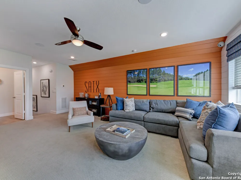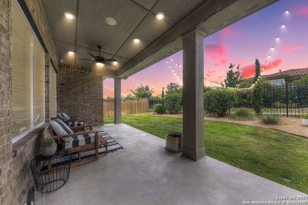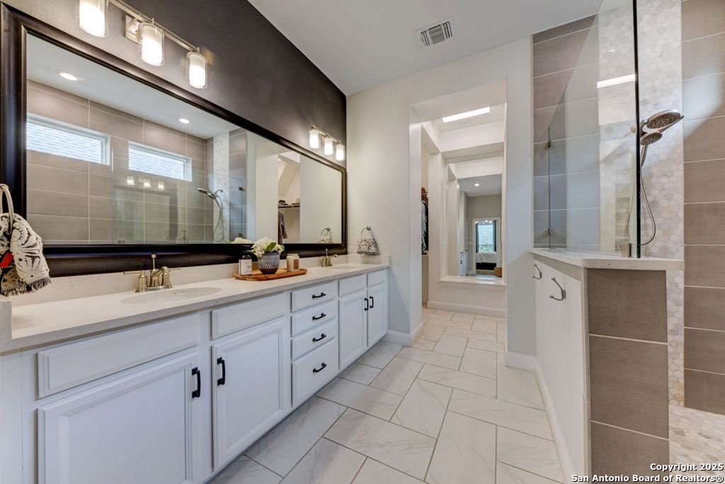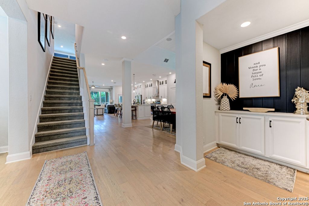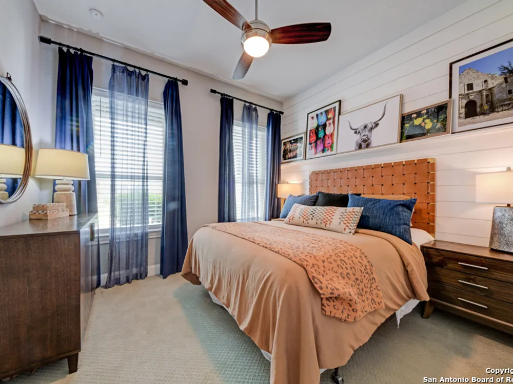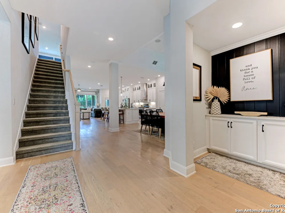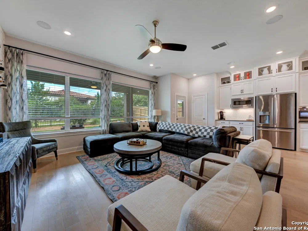 From the moment you step inside this former model home, it's clear-this is something special. Located in the prestigious, gated Campanas at Cibolo Canyons, this 2020-built gem offers a perfect blend of luxury design and everyday comfort. The open-concept layout welcomes you with gorgeous light wood flooring, wainscoting, accent walls, and a striking white brick feature in the living area. Natural light pours in through tall windows, highlighting soaring ceilings and creating an airy, inviting space. The luxury kitchen is a showstopper with quartz countertops, custom white cabinetry, a butler's area, two pantries, and stainless steel appliances. Whether you're enjoying casual meals in the breakfast nook or hosting in the formal dining room, the flow is seamless. All bedrooms are on the main floor in a smart split layout. The primary suite offers a peaceful retreat with a wood accent wall, large walk-in shower, double vanities, and a spacious closet with direct laundry access. Upstairs, a versatile bonus room with half bath is perfect for a media space, playroom, or home gym. Outside, the all-brick and stone exterior adds timeless curb appeal, while nearby walking trails invite daily strolls. As part of Campanas at Cibolo Canyons, enjoy access to resort-style pools, tennis courts, a clubhouse, fitness center, and playgrounds. Ideally located in North San Antonio's 78261, just 11 miles from JBSA-Randolph, with top-tier shopping nearby (HEB, Costco, Sprouts), and greenway expansions planned through 2026-this home offers more than comfort, it offers lifestyle. Every room in this home has something special. Come experience it for yourself.