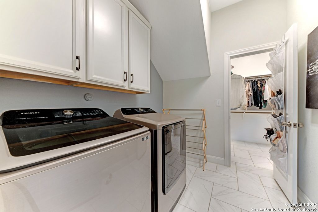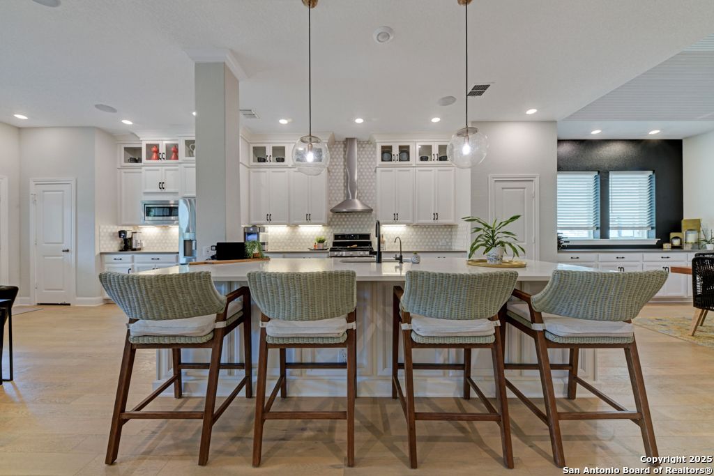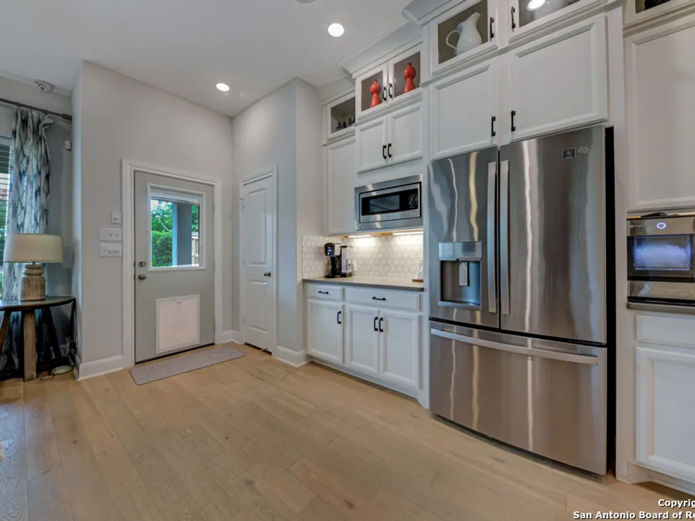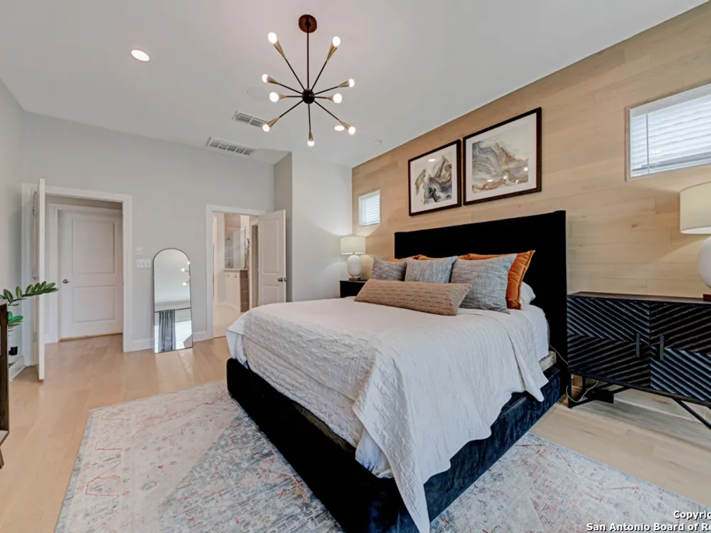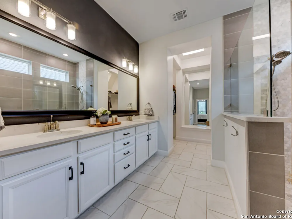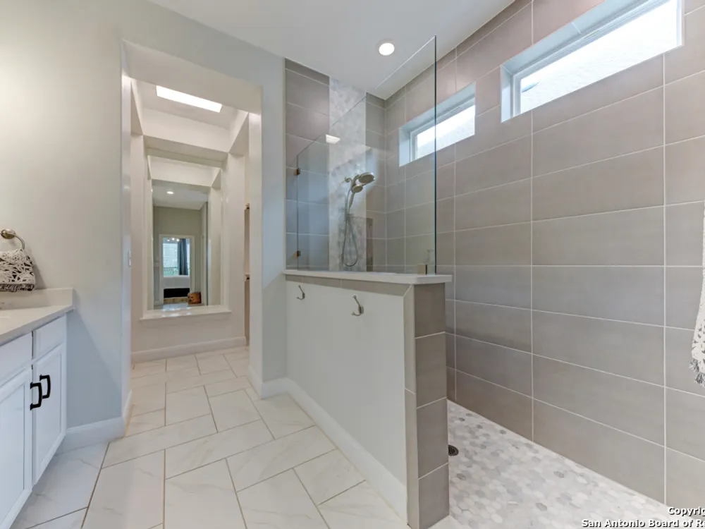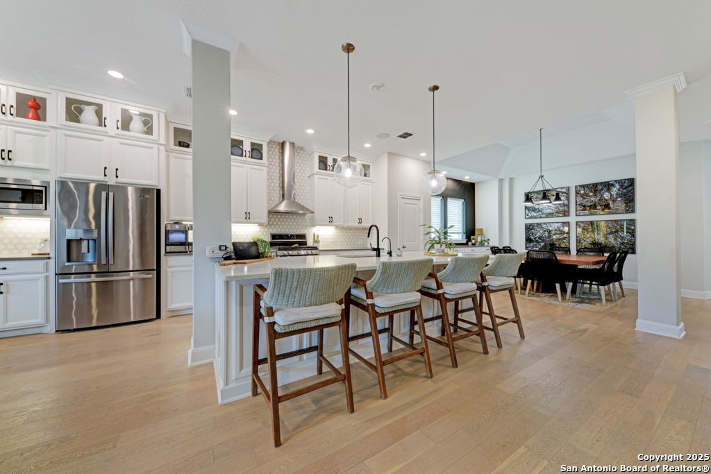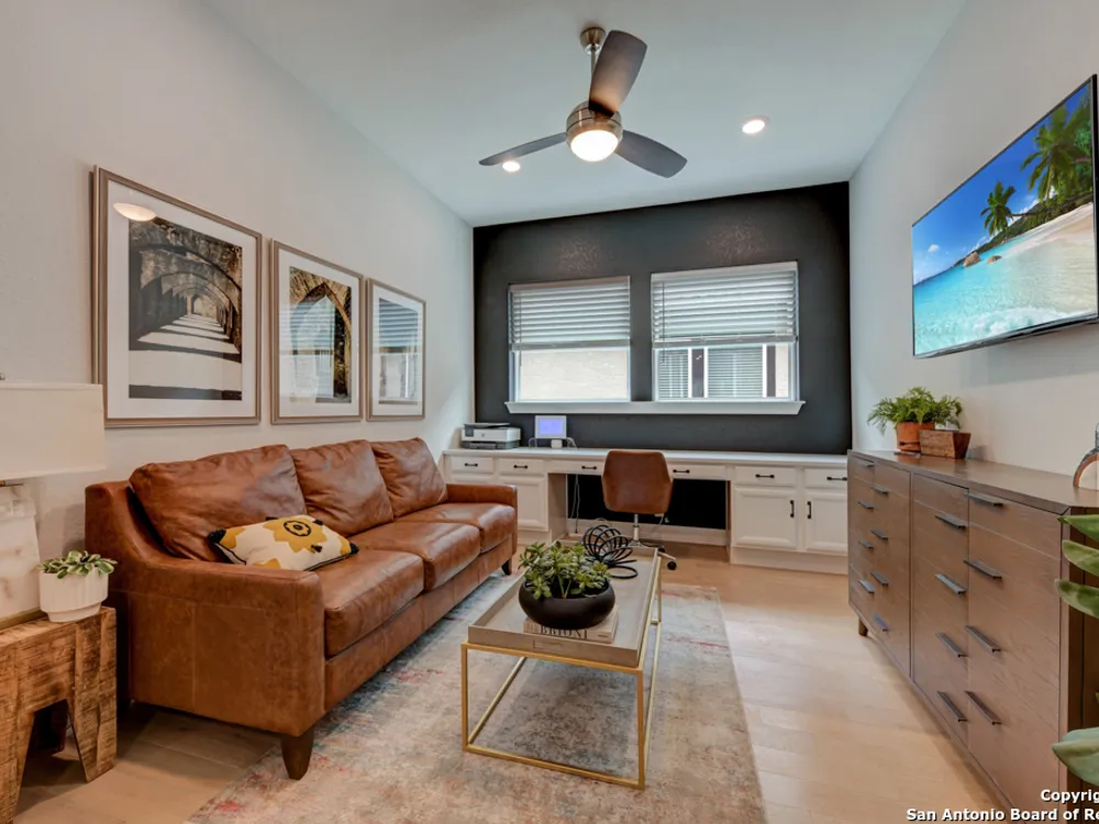 From the moment you step inside this former model home, it's clear-this is something special. Located in the prestigious, gated Campanas at Cibolo Canyons, this 2020-built gem offers a perfect blend of luxury design and everyday comfort. The open-concept layout welcomes you with gorgeous light wood flooring, wainscoting, accent walls, and a striking white brick feature in the living area. Natural light pours in through tall windows, highlighting soaring ceilings and creating an airy, inviting space. The luxury kitchen is a showstopper with quartz countertops, custom white cabinetry, a butler's area, two pantries, and stainless steel appliances. Whether you're enjoying casual meals in the breakfast nook or hosting in the formal dining room, the flow is seamless. All bedrooms are on the main floor in a smart split layout. The primary suite offers a peaceful retreat with a wood accent wall, large walk-in shower, double vanities, and a spacious closet with direct laundry access. Upstairs, a versatile bonus room with half bath is perfect for a media space, playroom, or home gym. Outside, the all-brick and stone exterior adds timeless curb appeal, while nearby walking trails invite daily strolls. As part of Campanas at Cibolo Canyons, enjoy access to resort-style pools, tennis courts, a clubhouse, fitness center, and playgrounds. Ideally located in North San Antonio's 78261, just 11 miles from JBSA-Randolph, with top-tier shopping nearby (HEB, Costco, Sprouts), and greenway expansions planned through 2026-this home offers more than comfort, it offers lifestyle. Every room in this home has something special. Come experience it for yourself.