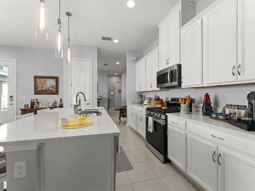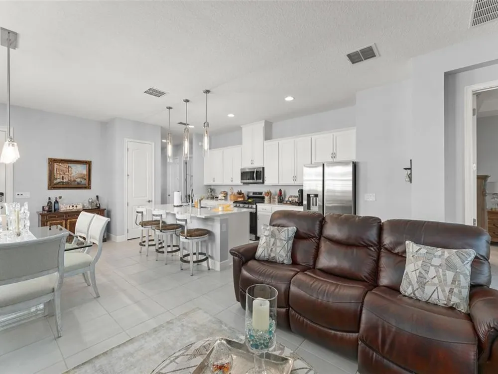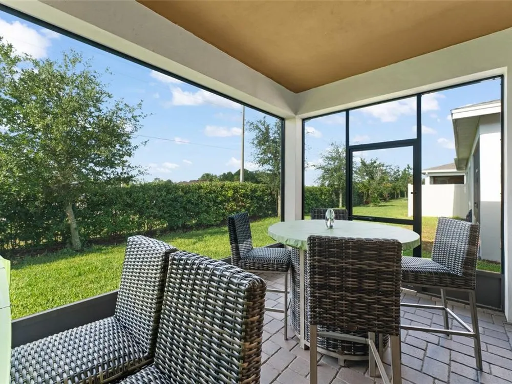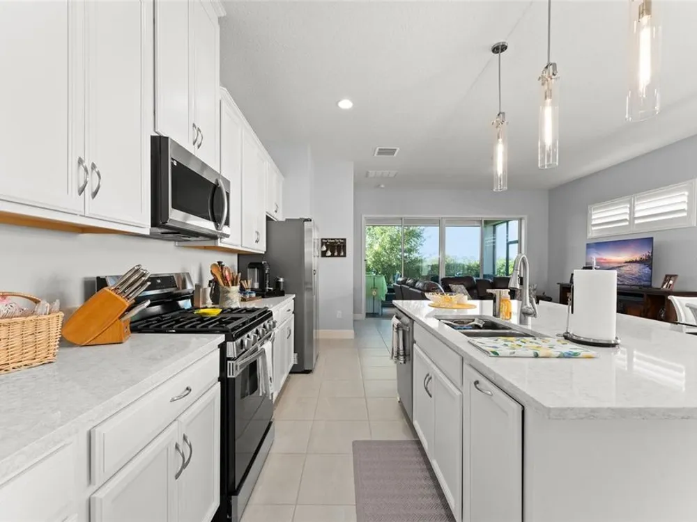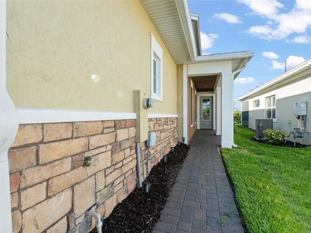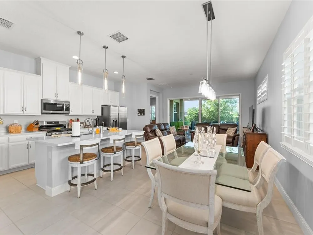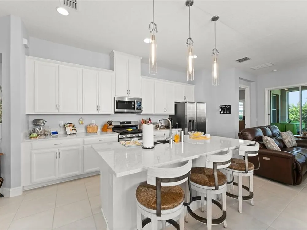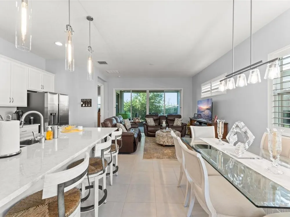 **MOTIVATED SELLER**Turnkey villa with 2 bedroom 2 bathroom loaded with the upgrades you are looking for! Welcome to one of the most sought after models in this vibrant 55+ gated community! This immaculate home is move-in ready and brimming with high-end upgrades and thoughtful features. Step inside and enjoy a bright, open-concept floor plan with soaring ceilings, luxury flooring, and plantation shutters that enhance energy efficiency and timeless style. The kitchen is a chef’s dream, featuring granite countertops, stainless steel appliances, a natural gas stove, large island, ample cabinet space, and a washer/dryer conveniently included. Relax in your fully screened-in lanai, perfect for bug-free evenings and year-round enjoyment. This home also boasts new ceiling fans and light fixtures, a smart HVAC drain system, installed gutters, timed exterior lighting, and sealed pavers and sidewalk for added curb appeal. Enjoy peace of mind with hurricane-impact windows and a spacious tandem garage that fits two cars plus a golf cart. Additional shelving and a bonus refrigerator/freezer offer extra storage and convenience. Community amenities include resort-style pools, clubhouse overlooking a scenic lake, private boat dock, lawn care and exterior home maintenance, fitness center and sauna, walking trails, tennis, and pickleball courts. Experience resort-style living at its finest in this friendly and well-maintained neighborhood. Don’t miss your chance to own this stunning home! Schedule your private showing today.**This property qualifies for a closing cost credit up to $5,900 through the Seller’s preferred lender.**
