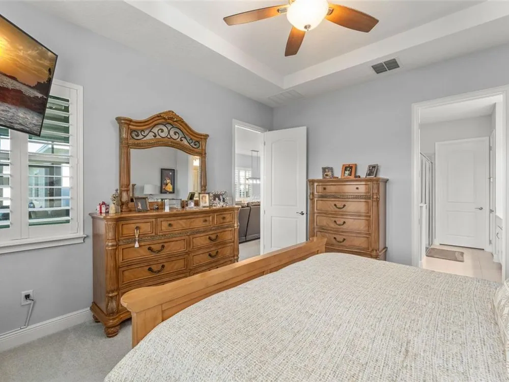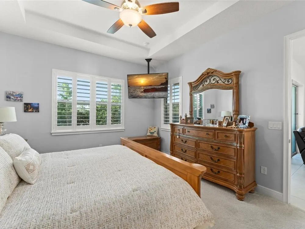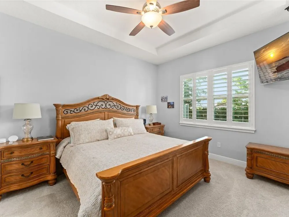 - Ceiling Fan(s), Crown Molding, High Ceilings, Solid-Wood Cabinets, Split Bedrooms, Thermostat, Walk-In Closet(s), Window Treatments