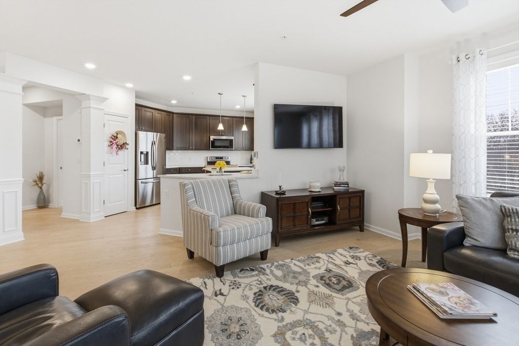 At the heart of the welcoming 55+ community at Pennington Crossing, a rare corner residence quietly awaits--filled with light comfort, and ease. Step inside this bright and airy 1470 sq ft home and discover the beauty of true one-level living. Sunlight pours through generous windows, illuminating rich hardwood floors and an open layout designed for both relaxation and connection. The beautifully designed kitchen flows effortlessly into the dining and living areas. The spacious primary suite is a haven of its own, featuring a walk-in closet, a full bath with a walk-in shower and double vanity. A 2nd bedroom and full bath provide comfort for guests or flexible use. With in-unit laundry, 2 deeded garage spaces, and pet-friendly living, convenience is always close at hand. Enjoy added privacy with a private balcony overlooking surrounding areas. Residents enjoy a vibrant lifestyle with access to a clubhouse, gazebo, elevator, and scenic walking trails--a truly wonderful place to call home.
