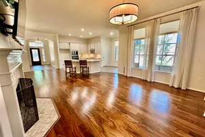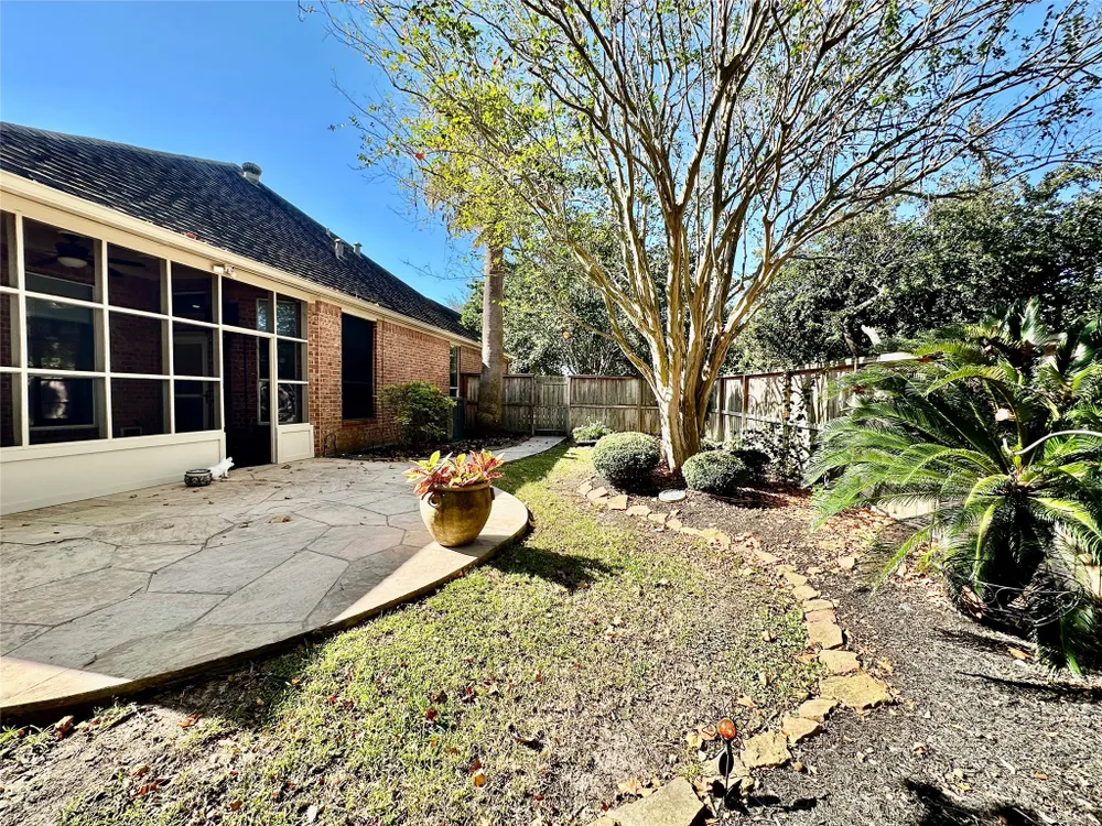 Bellavita HIGH & DRY Gated Community-55+ Active Adult Community - Easy Access to I-45 and Hwy. 518. Great Community. Remodeled throughout. Shutters, New Kitchen cabinets, beautiful countertops in kitchen and bath, you will love the hardwood floors and new window coverings. New lighting fixtures, new door and kitchen and bath fixtures. All new appliances and new TV stays. Front door with wide foyer, high ceiling and crown molding. Fireplace. 3 Bed 2 bath, open concept, master bath has double sinks, separate shower & spa tub. Front yard & sprinklers maintained. 9-year-old roof. Basic Comcast & high-speed internet. Front yard maintained by the HOA except trees. Backyard is a beautiful oasis with many plants and trees and nice lighting. Enclosed patio with a really large deck in backyard. Resort style living with clubhouse that includes library, billiards, ballroom, swimming pool and spa.11-acre lake with a 1mile walking trail.