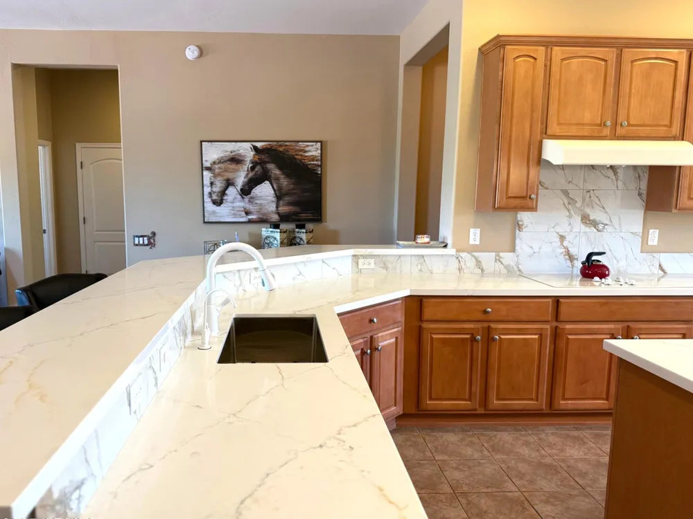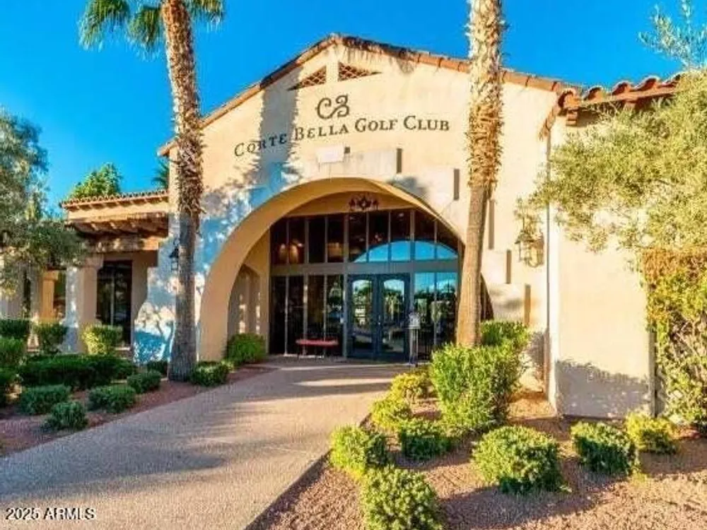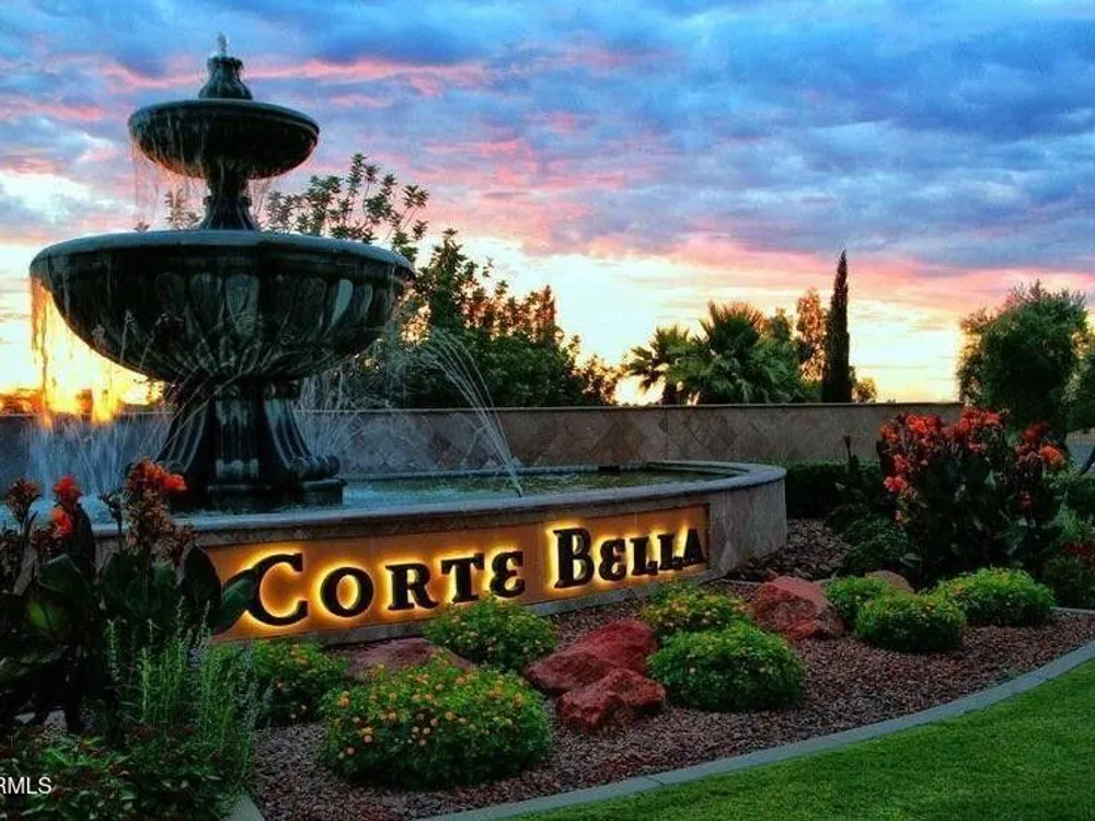 Resort-Style Living on the Fairway - Meticulously maintained Encanto model on Corte Bella's #6 fairway. This move-in ready home offers 2 beds, 2 baths, a den, and an open family room floor plan with soaring ceilings and natural light. The gourmet kitchen features quartz counters, custom pull-out cabinetry, and upgraded fixtures perfect for entertaining. The primary suite includes a walk-in closet and a luxurious bath with separate shower and tub. Enjoy a covered patio, built-in BBQ, and lush landscaping. Extended garage, low-E windows, programmable thermostat, and zero-grade entry add smart functionality. Comfort, sophistication, and resort-style living await.