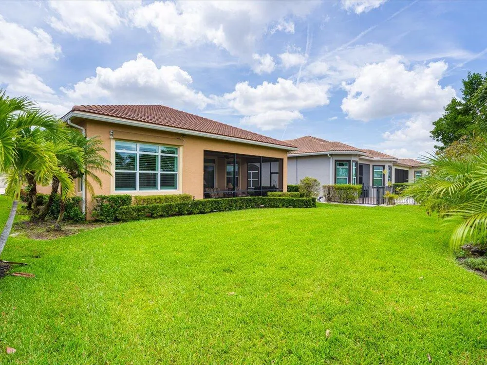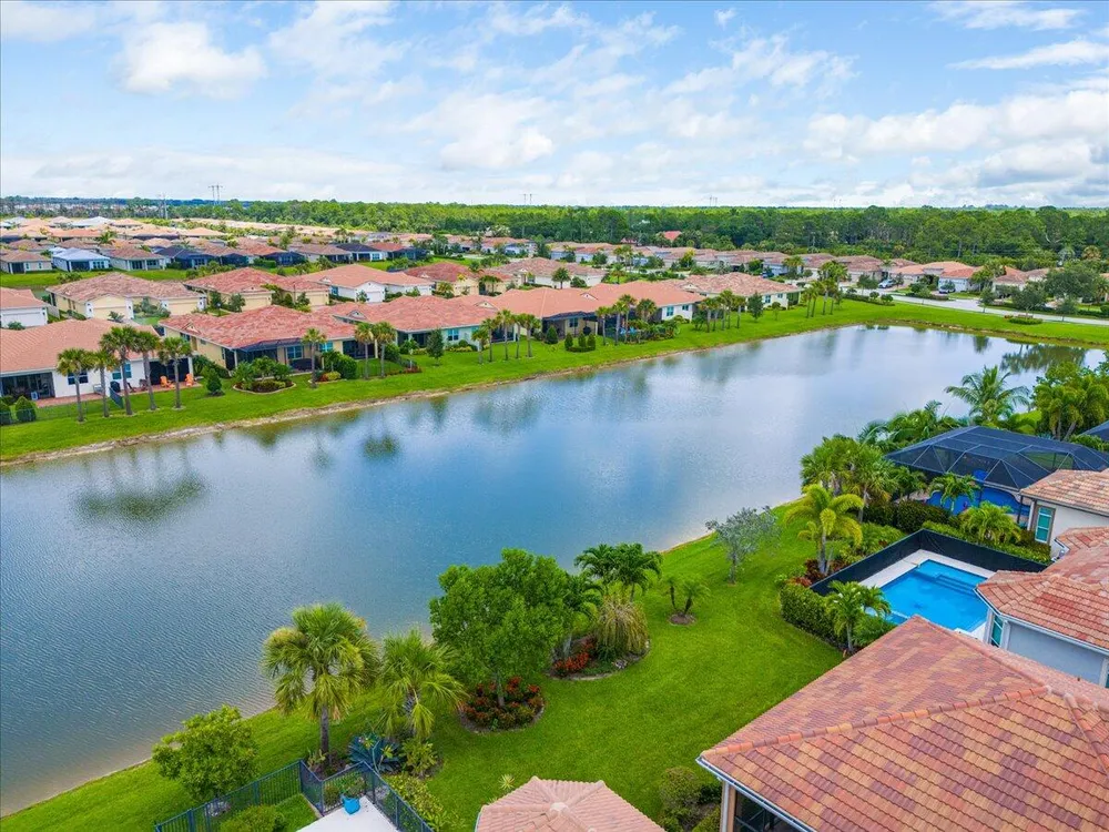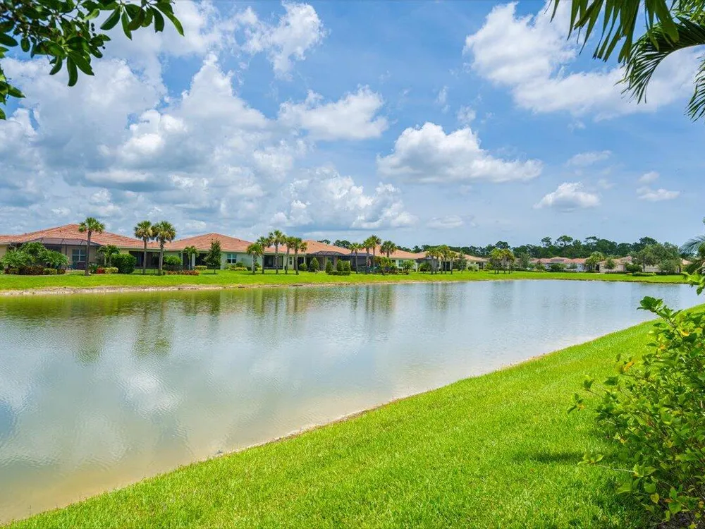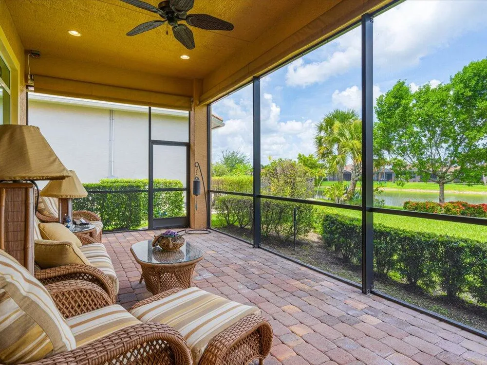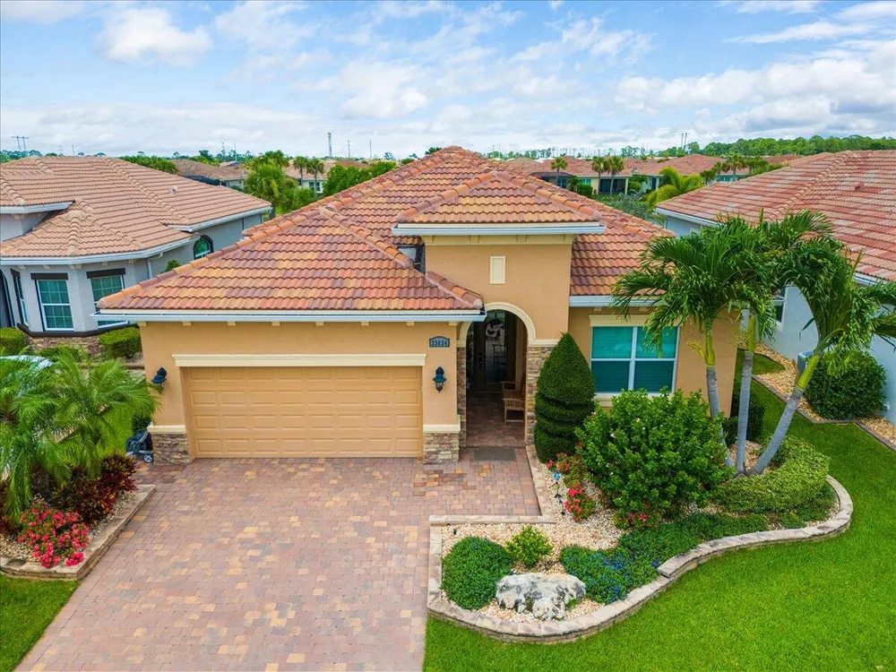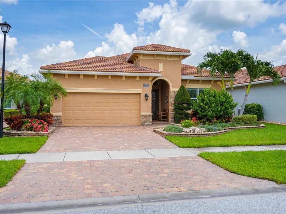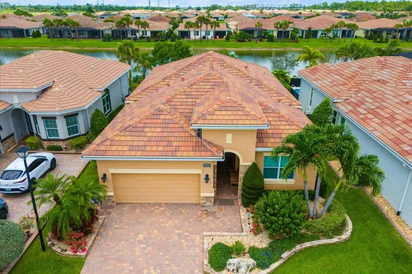 Beautiful Lago Model at Verano (PGA Village) with mature landscaping & lake View. Features CBS Construction, Barrel tile roof, paver driveway & walkway. Boasts open floor plan, volume ceilings, tile that looks like wood planking throughout, crown molding, Plantation Shutters & Impact Hurricane windows & doors. Hosts 2 BR's, Den, 2 BA's & 2 Car Garage. Fabulous open kitchen with quartz counter tops, glass back splash, large Island, light soft close 42'' cabinets, walk in pantry w/ wood shelves, wall oven, microwave, cook top, Stainless steel appliances & hood. Spacious Master Suite with natural lighting, tray ceiling, lovely Master Bath includes large shower & dual sinks. Walk in closet with wood shelves. Screen enclosed lanai with covered area & tranquil lake setting.