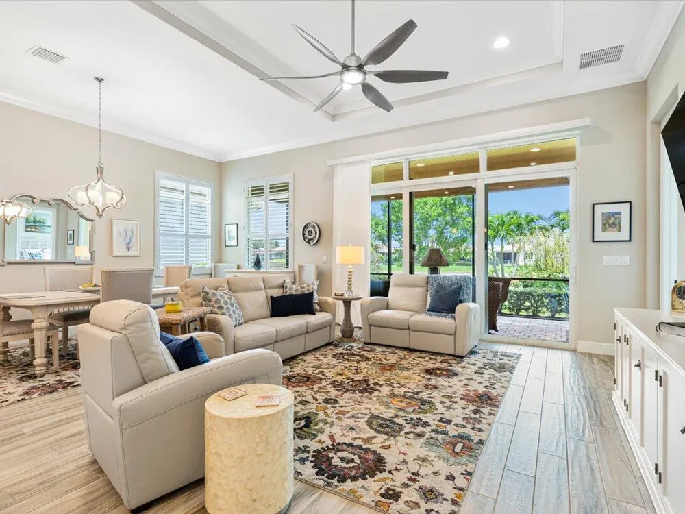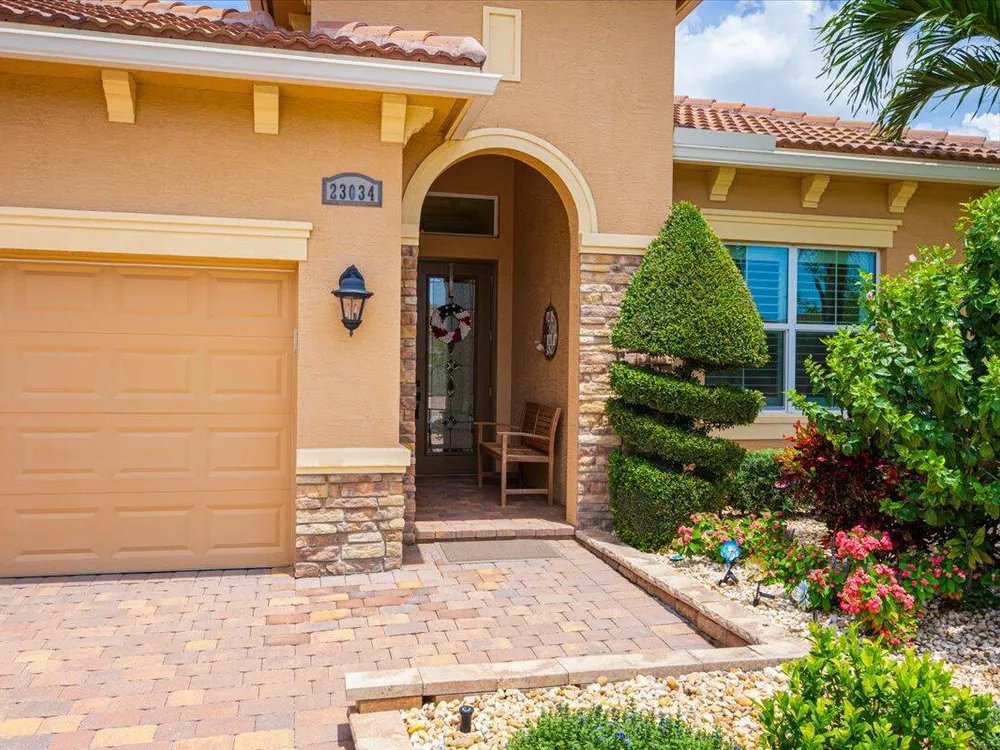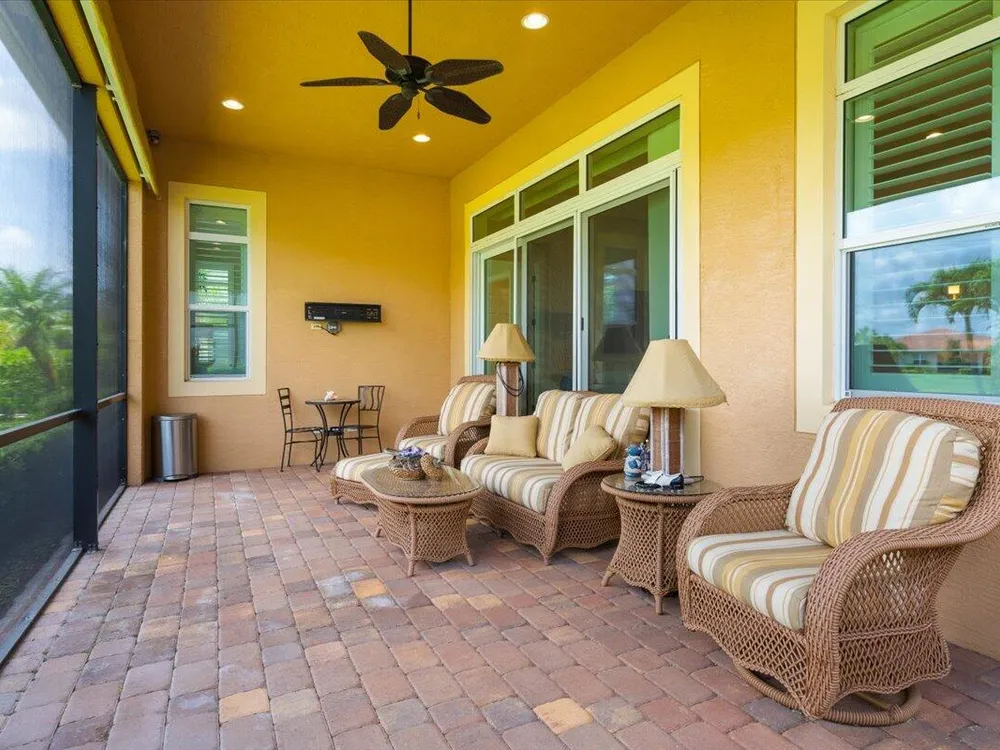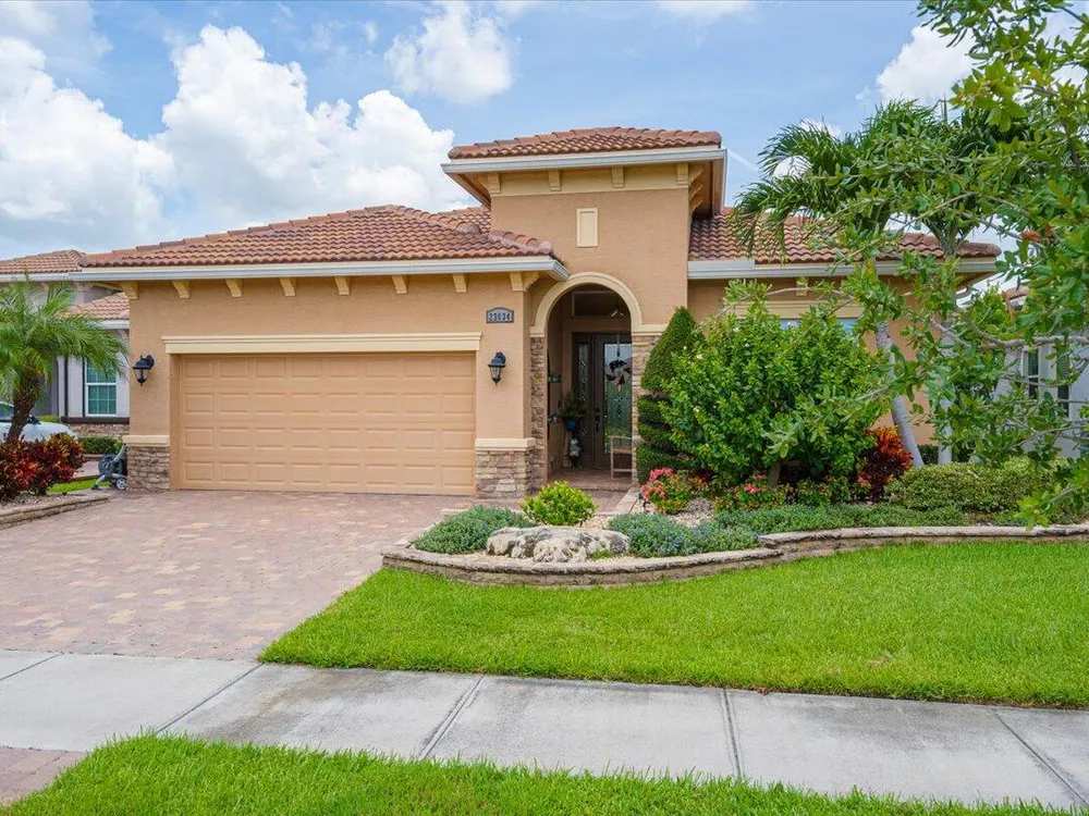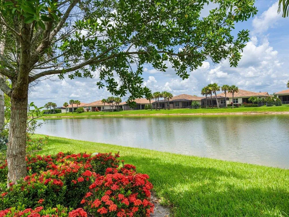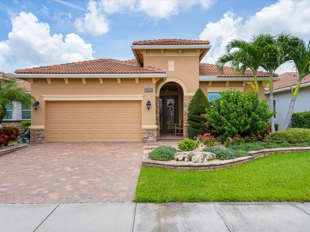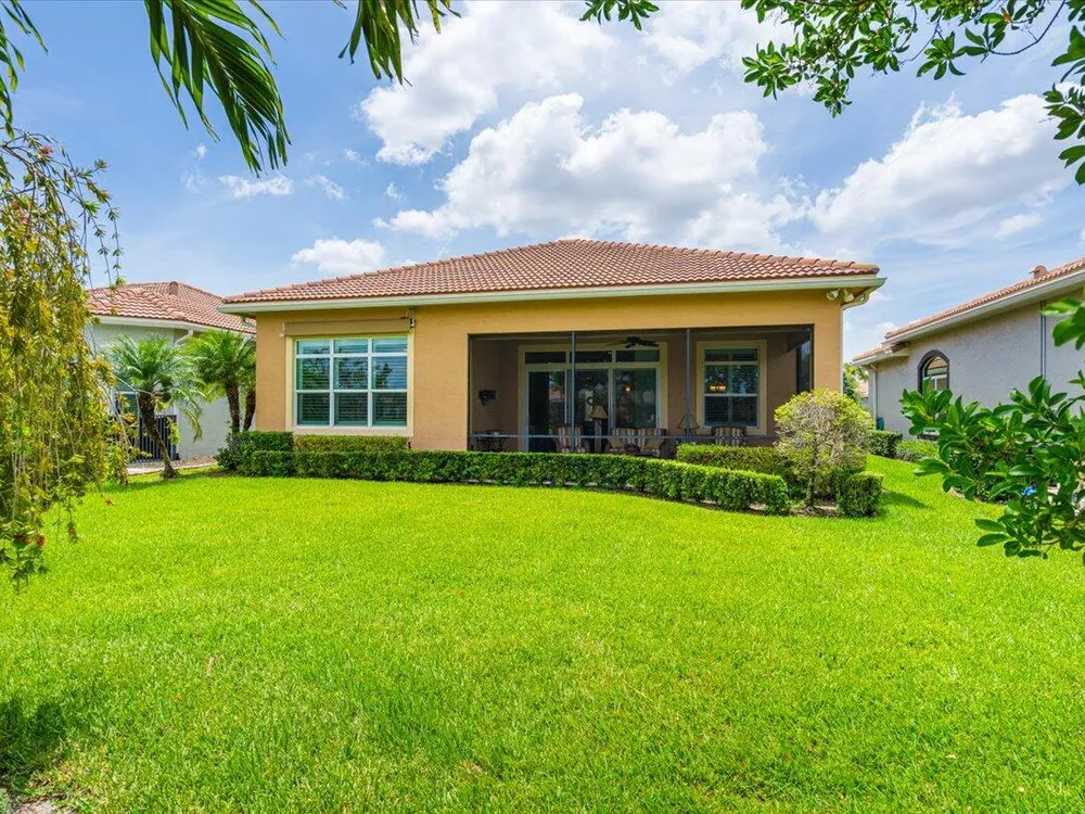 Beautiful Lago Model at Verano (PGA Village) with mature landscaping & lake View. Features CBS Construction, Barrel tile roof, paver driveway & walkway. Boasts open floor plan, volume ceilings, tile that looks like wood planking throughout, crown molding, Plantation Shutters & Impact Hurricane windows & doors. Hosts 2 BR's, Den, 2 BA's & 2 Car Garage. Fabulous open kitchen with quartz counter tops, glass back splash, large Island, light soft close 42'' cabinets, walk in pantry w/ wood shelves, wall oven, microwave, cook top, Stainless steel appliances & hood. Spacious Master Suite with natural lighting, tray ceiling, lovely Master Bath includes large shower & dual sinks. Walk in closet with wood shelves. Screen enclosed lanai with covered area & tranquil lake setting.