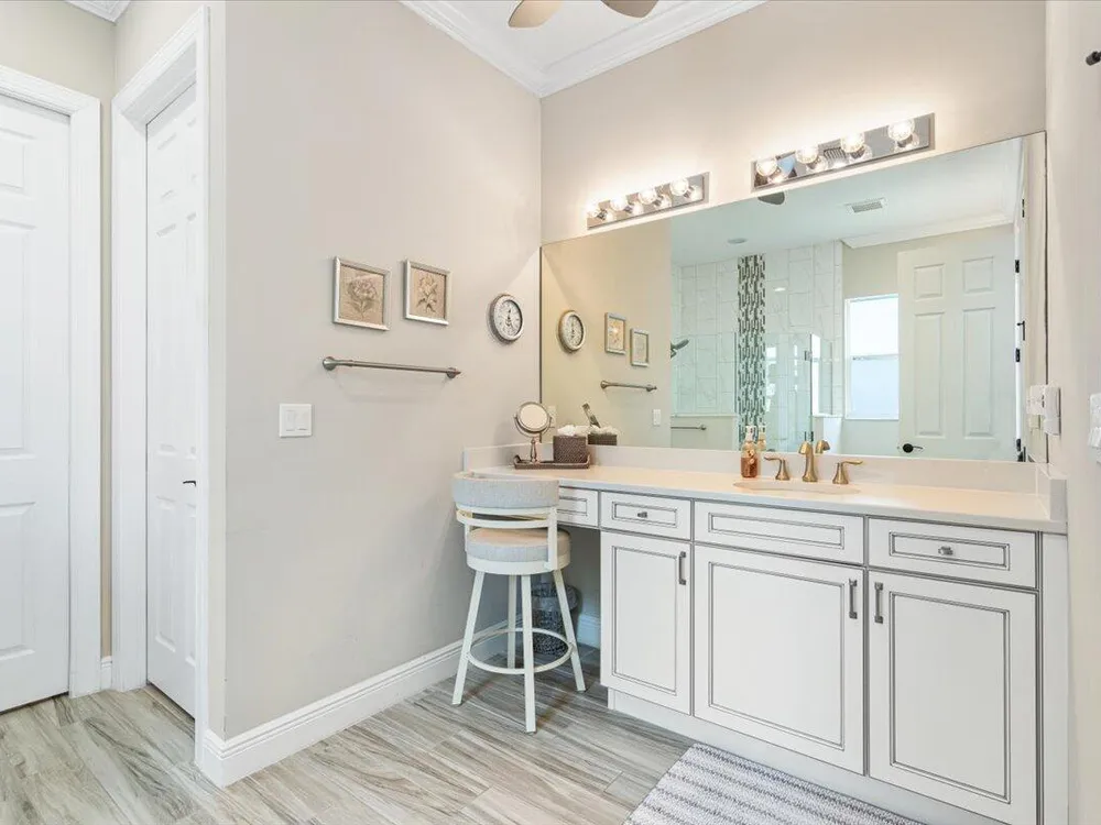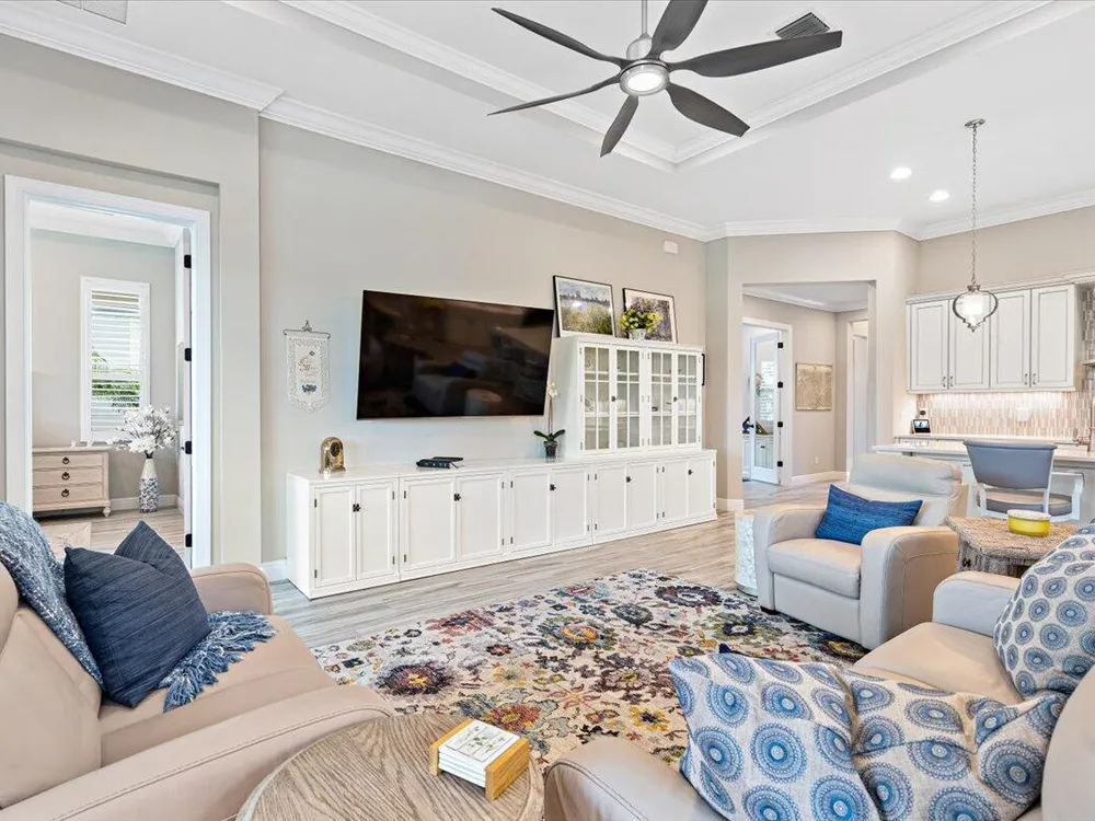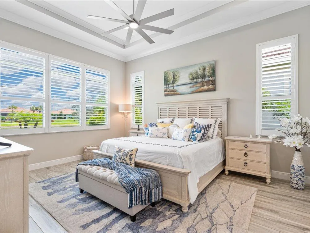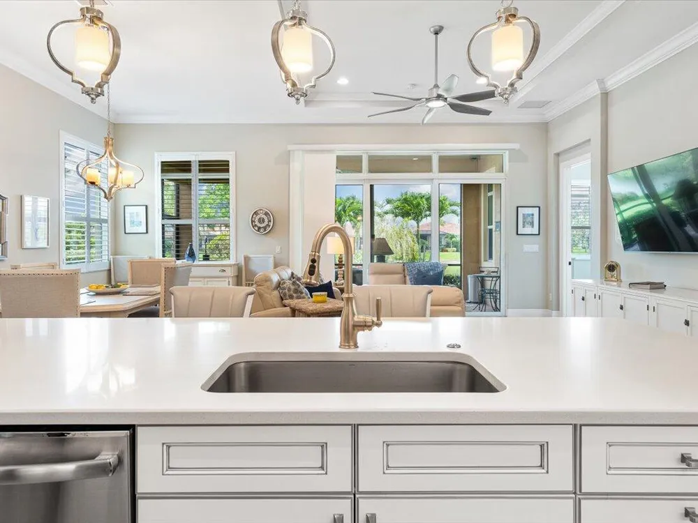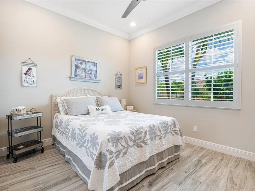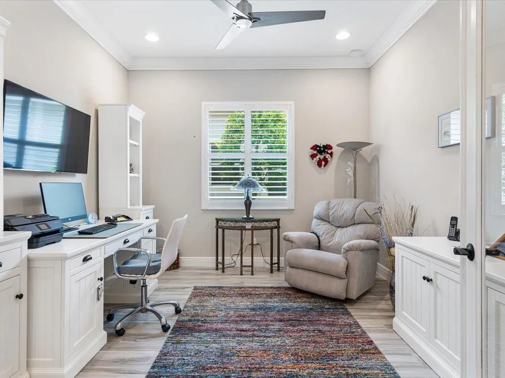 - Built-in Shelving, Entrance Foyer, Kitchen Island, Split Bedrooms, High Ceilings, Walk-In Closet(s), Home Office, Living/Dining Room, Impact Glass, Plantation Shutters, Sliding Window(s), Dual Sinks, Separate Shower, Washer/Dryer Hookup
