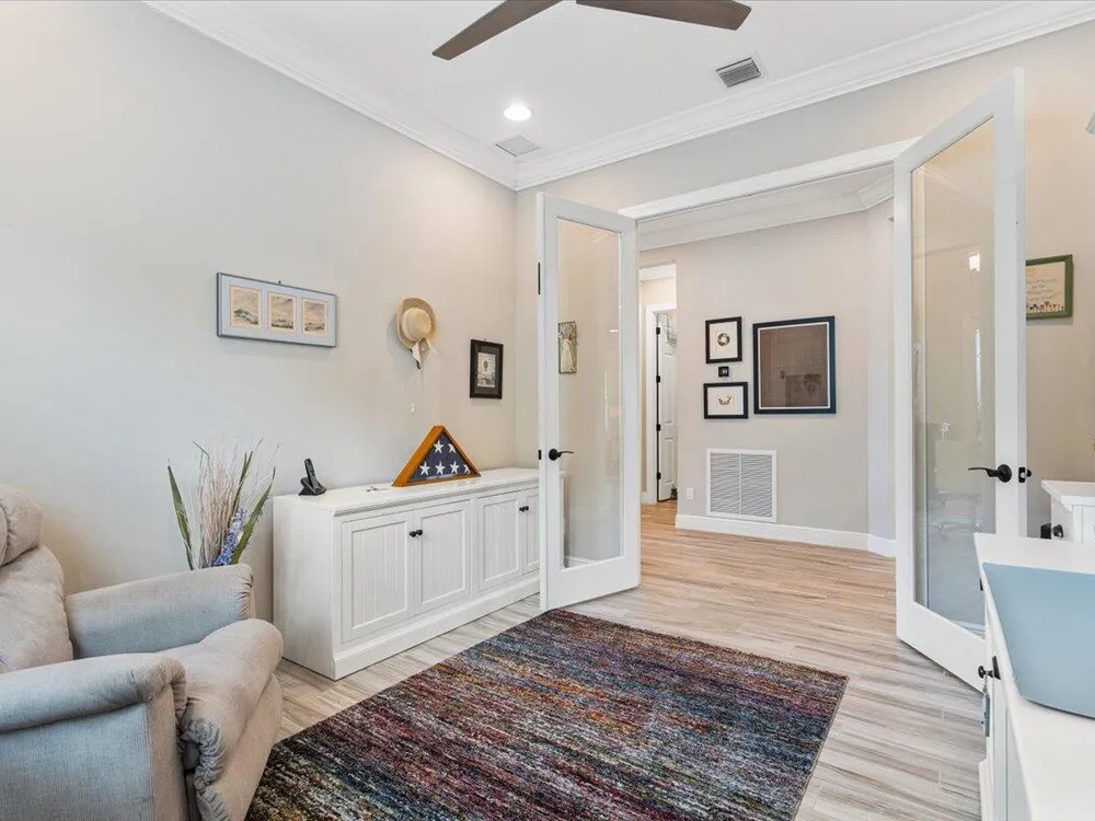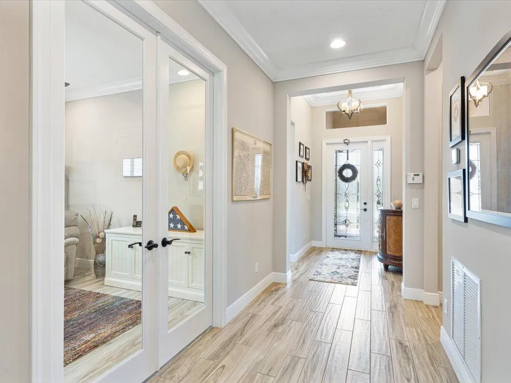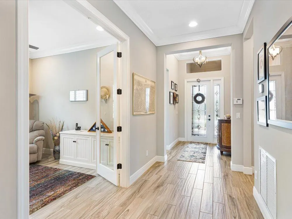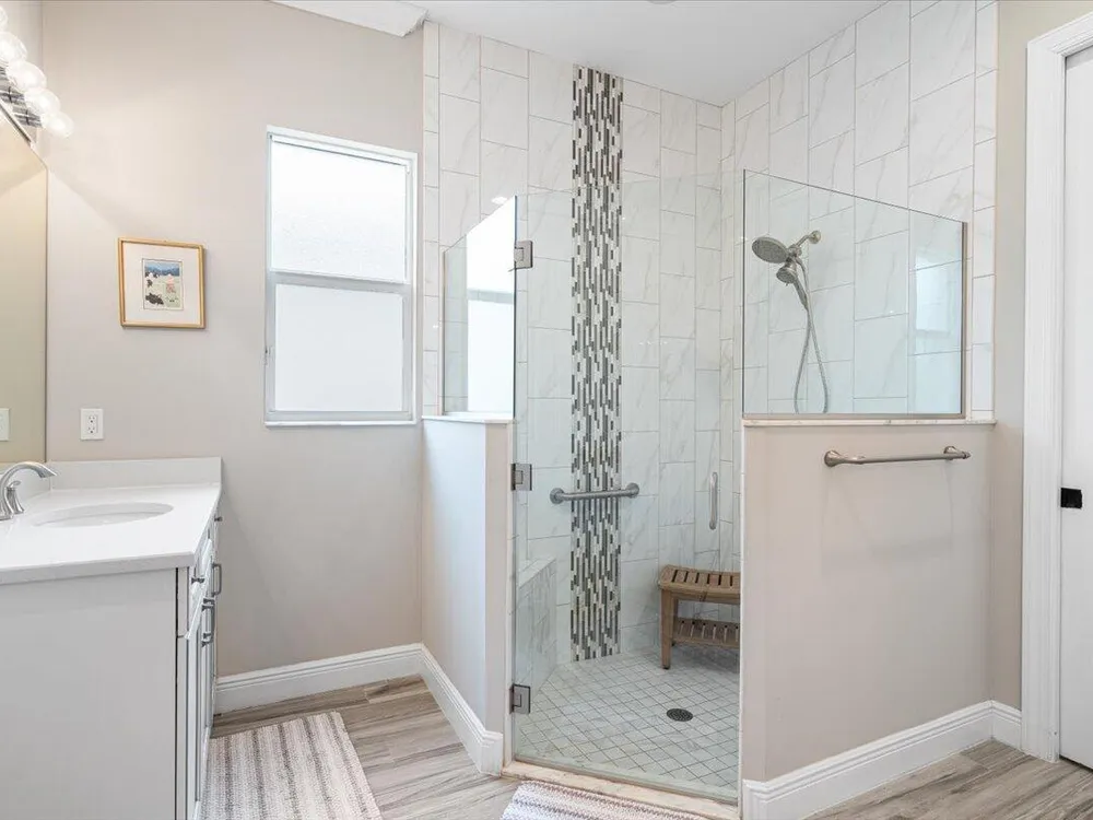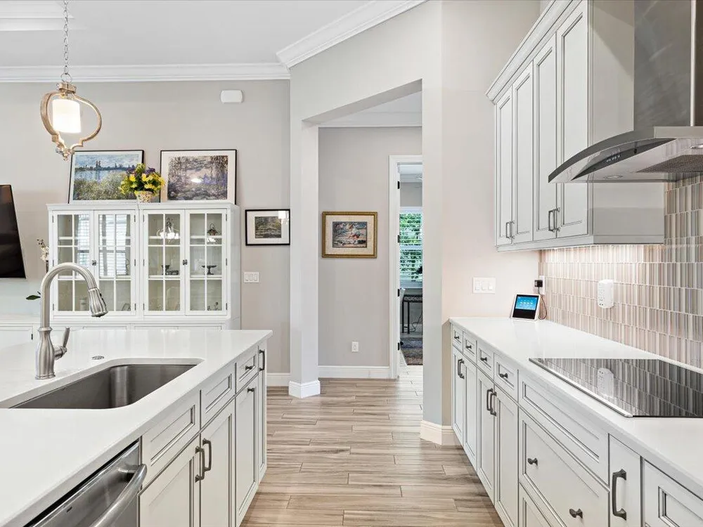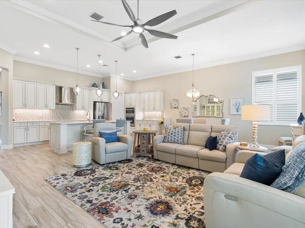 - Built-in Shelving, Entrance Foyer, Kitchen Island, Split Bedrooms, High Ceilings, Walk-In Closet(s), Home Office, Living/Dining Room, Impact Glass, Plantation Shutters, Sliding Window(s), Dual Sinks, Separate Shower, Washer/Dryer Hookup