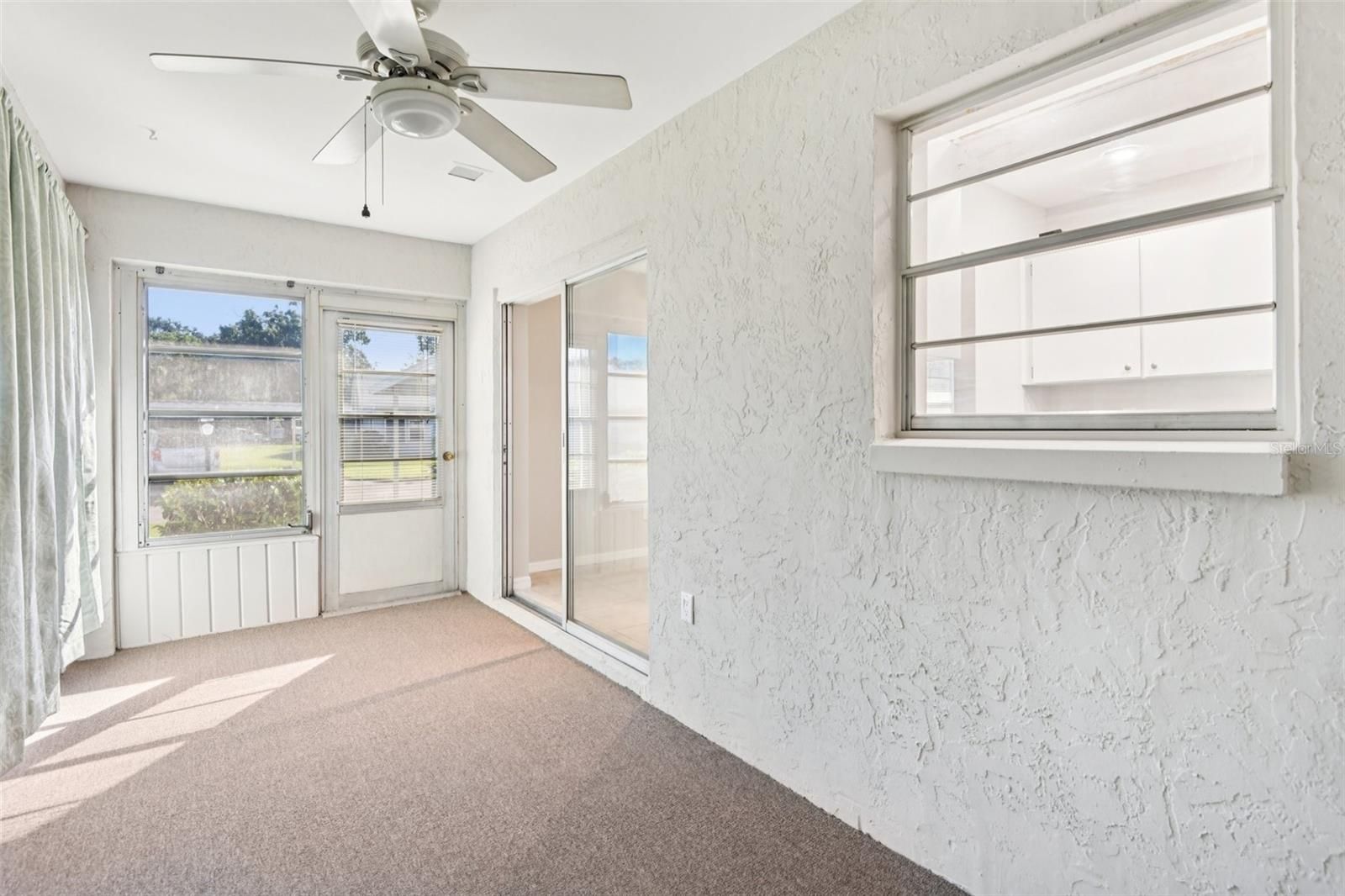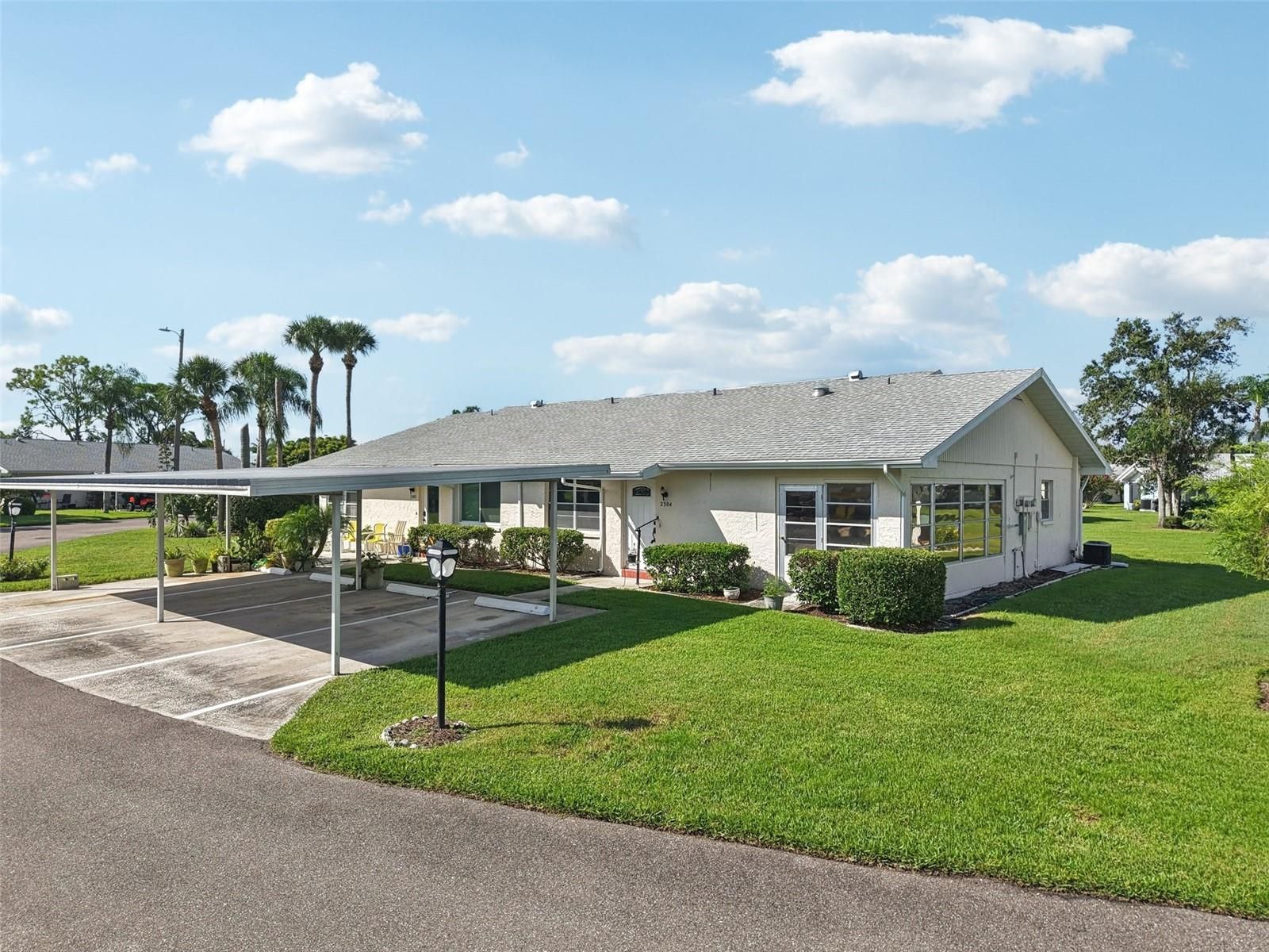 One or more photo(s) has been virtually staged. Welcome to this charming 2-bedroom, 2-bath condo in the highly sought-after Kings Point community of Sun City Center! Located on a peaceful roundabout with courtyard views, this well-maintained unit offers privacy with only one shared wall and the convenience of two dedicated parking spots right outside your front door. Inside, you'll find beautiful laminate flooring in the spacious living room, which flows seamlessly into the dining area and kitchen. Sliding glass doors lead to a bright and airy enclosed patio/Florida room—perfect for relaxing or entertaining. The kitchen boasts ample counter space and a pleasant view of the patio. The generous primary suite features an en suite bathroom and walk-in closet, while the secondary bedroom offers cozy carpet and easy access to a full guest bath. An oversized storage/utility room off the Florida room adds even more functionality. You’ll love the gated community of Kings Point, which has amazing facilities, pools, clubs and events just waiting for you to enjoy. Located between Sarasota and Tampa, this home is perfectly positioned for a convenient ride to airports, great shopping, dining, and professional entertainment. With easy access to award-winning, sandy beaches, you’ll experience the best of all worlds—without the stress of big city life. Leave the hustle behind and embrace a new chapter in Sun City Center, Florida, the state's top-ranked and most affordable 55+ retirement community. Come enjoy this move-in ready home!