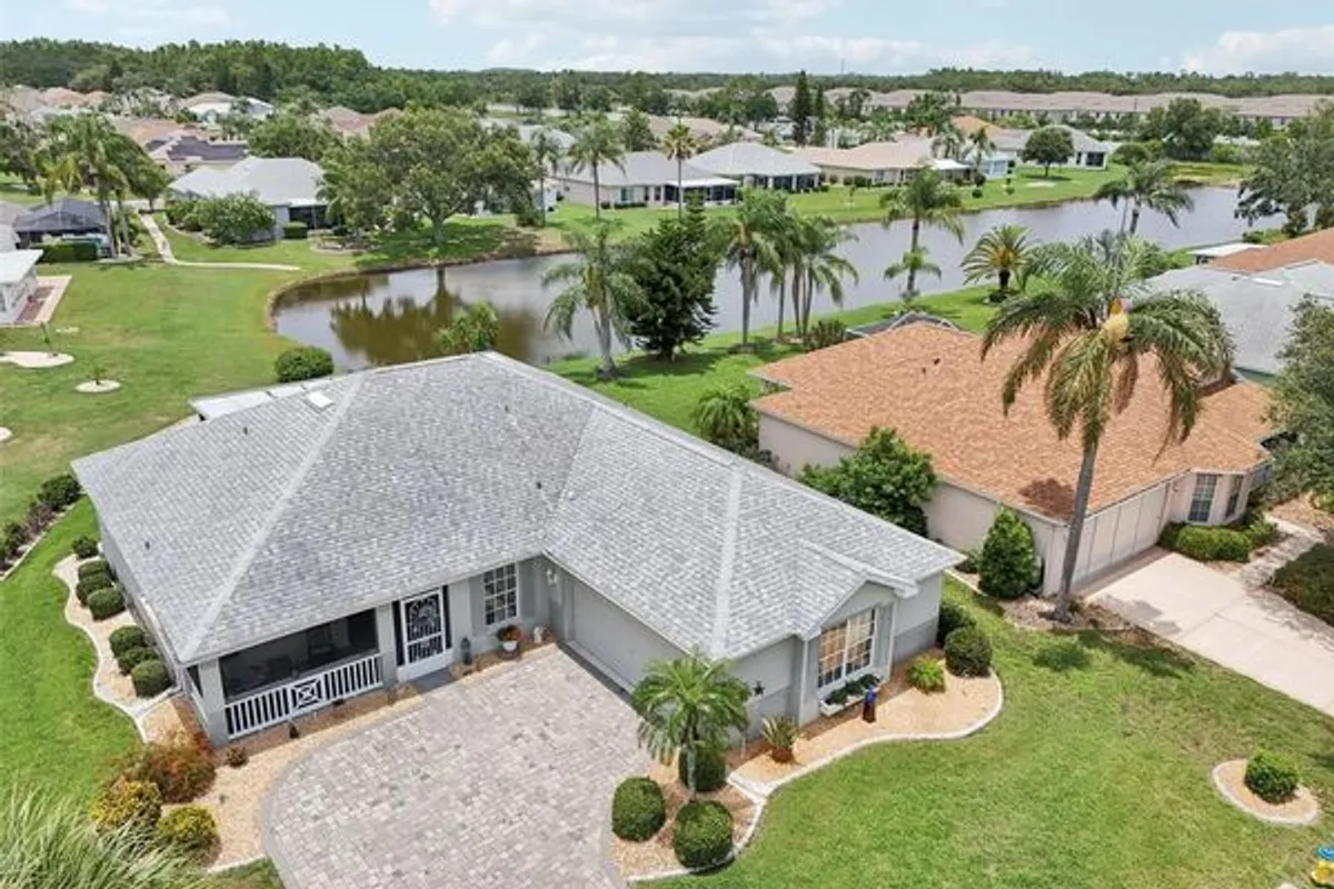 **SELLER IS PROVIDING HOME WARRANTY AND INSPECTION REPORTS** Welcome to your Florida dream home in the vibrant 55+ community of Sun City Center—ranked the #1 retirement destination in the country! This beautifully maintained Fairmont model offers over 1,700 sq. ft. of comfortable waterfront living and immediately impresses with its pavered driveway, lush landscaping, and inviting front screened porch—the perfect spot to enjoy the Florida breeze or unwind bug-free. Step inside to an inviting open floor plan that includes 2 spacious bedrooms, 2 full bathrooms, and a flexible office/den perfect for reading, hobbies, or guest overflow. The kitchen is bright and functional, complete with a new refrigerator, a cozy dinette area, double door pantry, and remote-controlled blinds. Beautiful and light luxury vinyl plank flooring flows throughout most of the home adding modern style and easy maintenance. The heart of the home opens to a large living area filled with natural light and water views that instantly create a sense of peace. From there, step out onto your expansive screened-in lanai and take in the breathtaking pond views—your private oasis for morning coffee or evening relaxation. Additional highlights include the oversized side-entry garage that fits two cars with extra room for storage or a golf cart, a newer water heater, included washer & dryer, and a home warranty for added peace of mind. This home is located in Caloosa Creek, a charming neighborhood within Sun City Center where exterior maintenance is included—freeing up your time to fully enjoy the lifestyle. Sun City Center is the country's #1 premier active golf cart friendly adult communities offering over 200 clubs and activities as well as three heated pools, golf, tennis and pickleball courts, library, state-of-the-art fitness center, community center, and more. Between Sarasota and Tampa, it is the perfect location for a convenient ride to MacDill AFB, airports, shopping, medical facilities, dining, and entertainment. With easy access to award-winning, sandy beaches, this location is the best of all worlds, but without the stress of big city life. Leave it all behind and enjoy your new life here the country’s highest-rated 55+ community! Schedule your showing today!