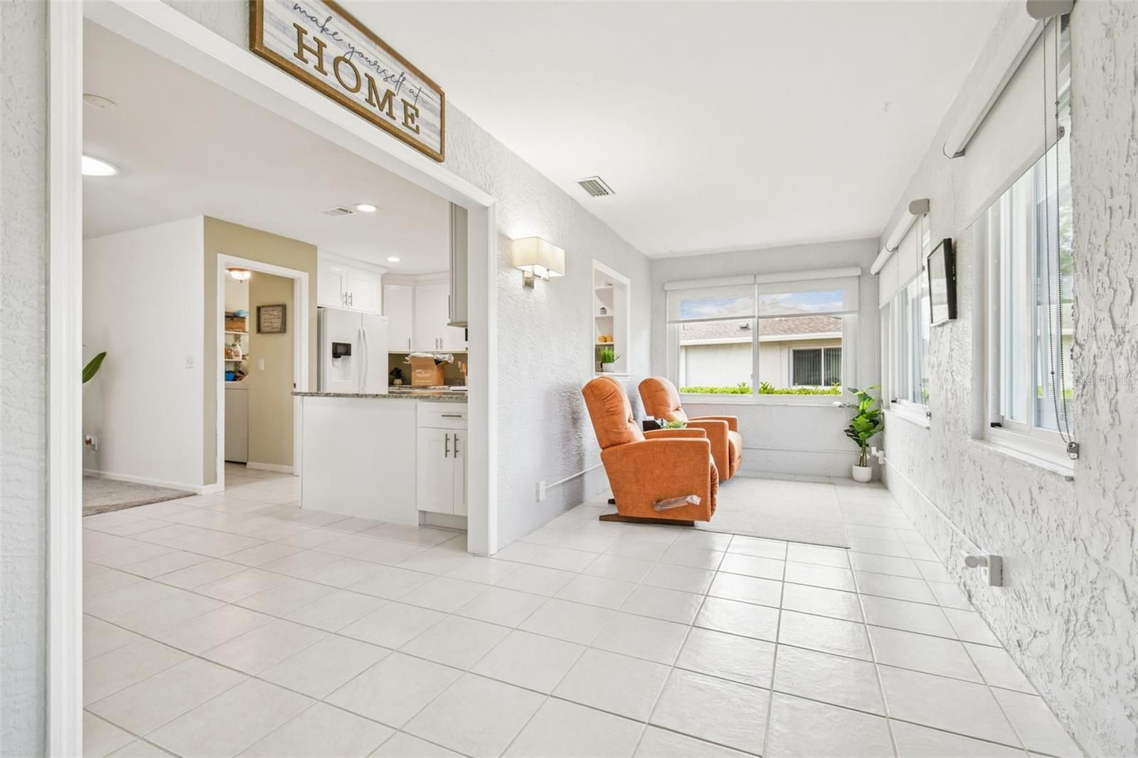 Vacation style living everyday!! This is your opportunity to own a beautifully maintained, move-in-ready home in the sought after community of Kings Point. Recent updates provide peace of mind, including a NEW roof (May 2025) and a newer AC system installed just two years ago. The home features hurricane-impact, double-pane energy-efficient windows throughout. The expanded Florida Room has been seamlessly incorporated into the home’s heated living space, bringing the total to 1,642 sq. ft. Sun-filled interiors showcase large windows and solar tubes in the breakfast area and both bathrooms. The generously sized primary suite offers a serene retreat, complemented by abundant closet space throughout the home for exceptional storage. Completing the space are matching Samsung appliances and the rare convenience of an indoor laundry room—a sought-after feature in the community. Located in a vibrant, active 55+ guarded-gate community, residents enjoy daily events and activities along with resort-style amenities rarely matched elsewhere. Highlights include the 20/20 Fitness & Spa, heated outdoor pools and spas, Veteran’s Theater, lawn bowling, pickleball and tennis courts, woodworking shop, stained glass studio, pottery rooms, card clubs, and multiple dining options—plus a convenient community shuttle providing transportation within a 20-mile radius for shopping, dining, and appointments. This guarded, gated community offers on-site staff for added security and peace of mind. Golf-cart accessibility throughout King’s Point with no time restrictions makes getting around easy and enjoyable. Welcome home to Sun City’s premier 55+ community—where every day feels like a vacation.