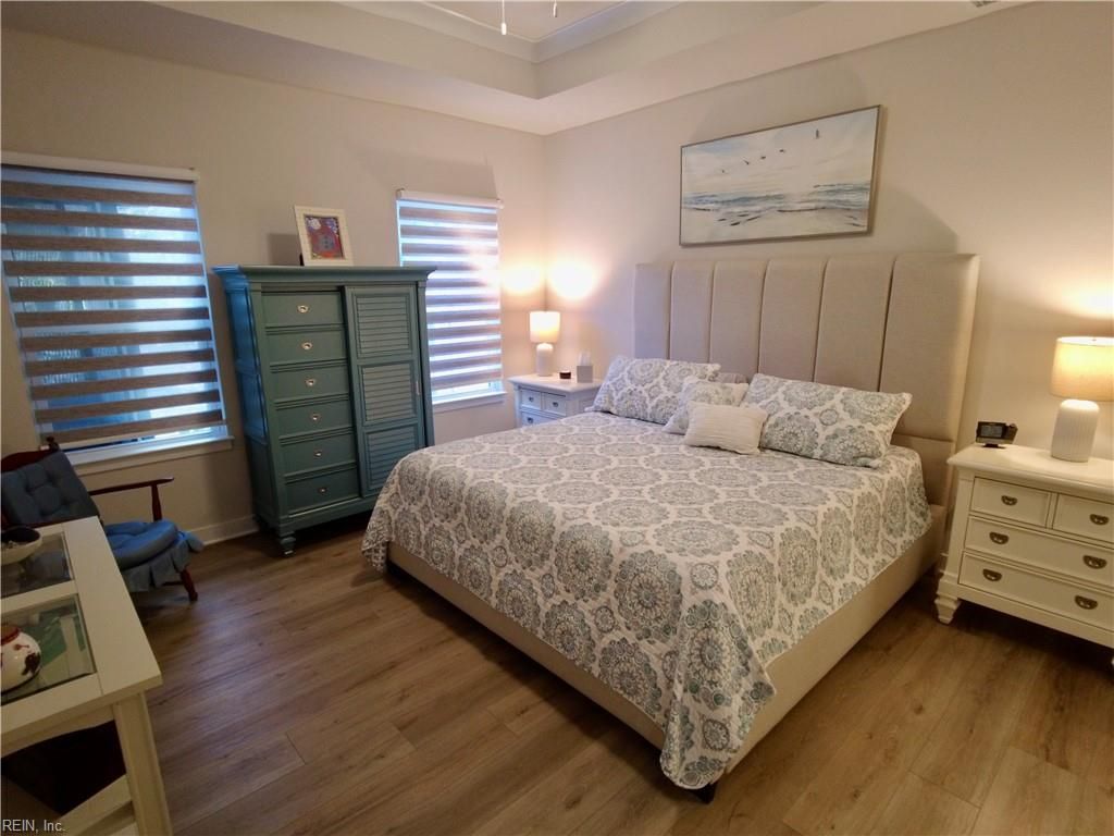 Elegant Craftsman Condo in Premier 55+ community- packed with Amenities! . Step inside to luxury LPV flooring on the 1st floor enhancing both beauty and durability. A spacious open floor plan seamlessly flows into a screened in back porch/sunroom, great for coffee and morning relaxation. Showstopping kitchen featuring quartz countertops and designer backsplash - a chef's delight with a large center island for entertaining. Upstairs, spacious bedrooms offer ample storage and privacy, while the first floor primary suite includes a well-appointed en suite bath including dual sinks, walk-in closet, tray ceilings and a great view of a wooded backyard. The garage is finished and painted. Beyond the home, the neighborhood offers an unmatched lifestyle. Residents enjoy access to resort-style heated pools, hot tubs, clubhouse, shuffleboard, tennis courts, pickleball, and even a koi pond for tranquil moments. This home is move in ready and priced to sell with loads of upgrades! Come see!
