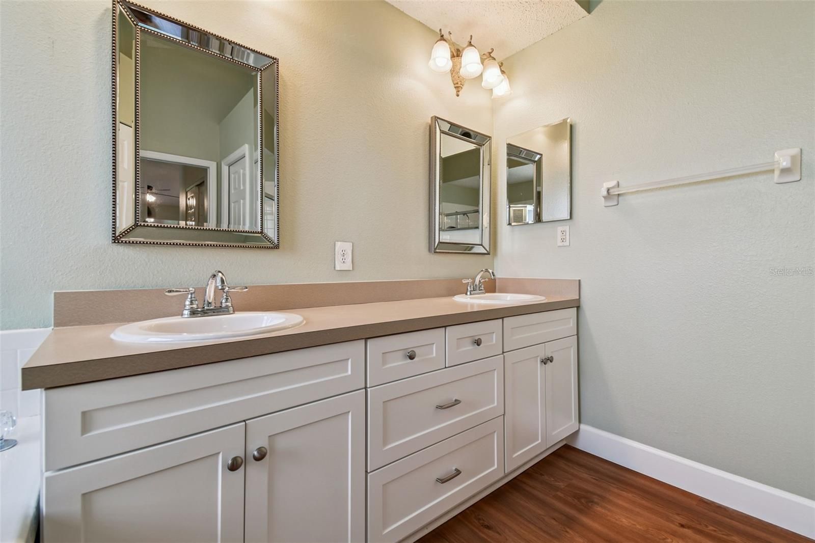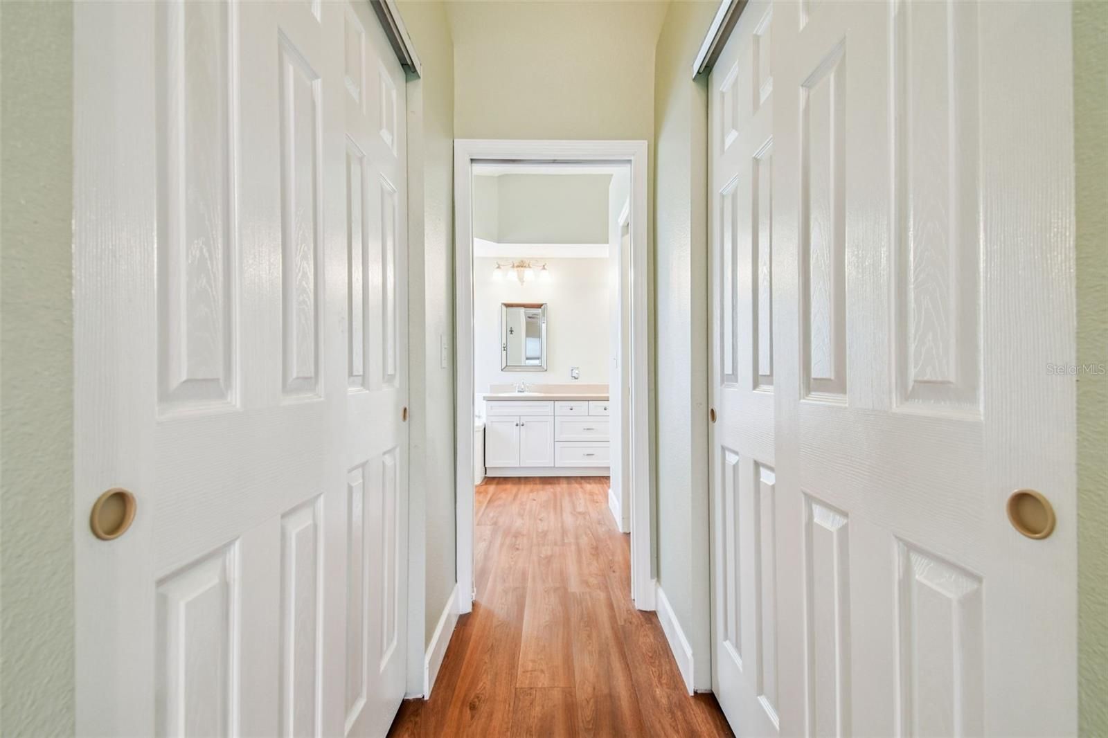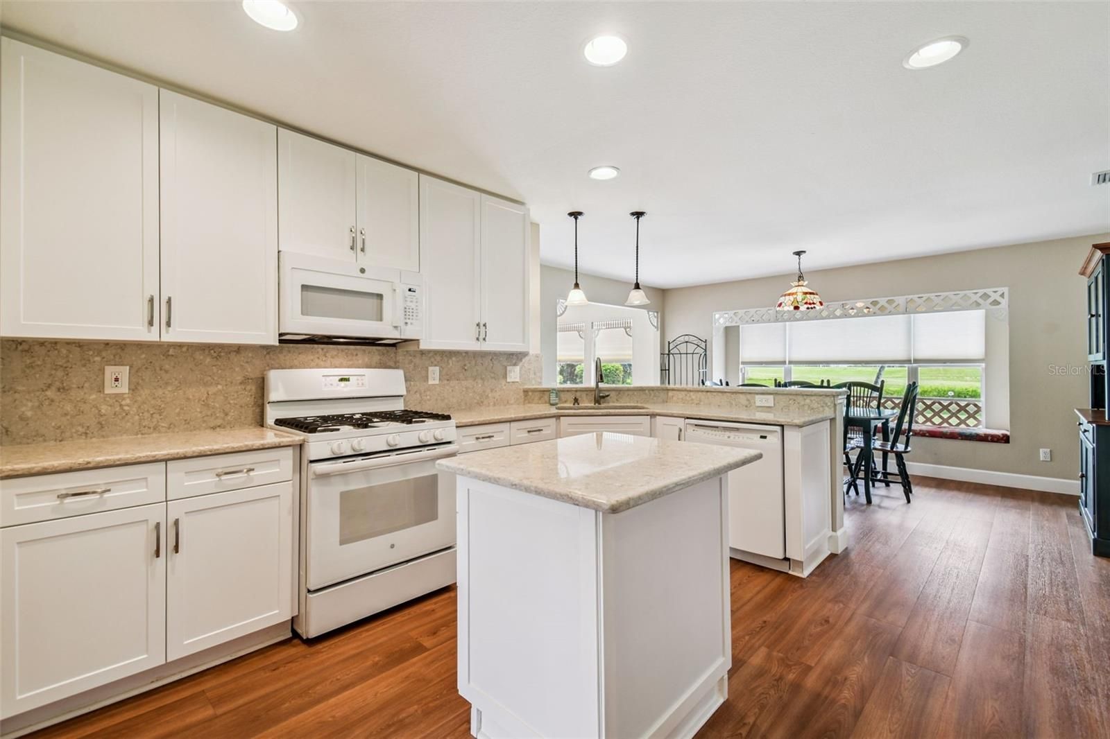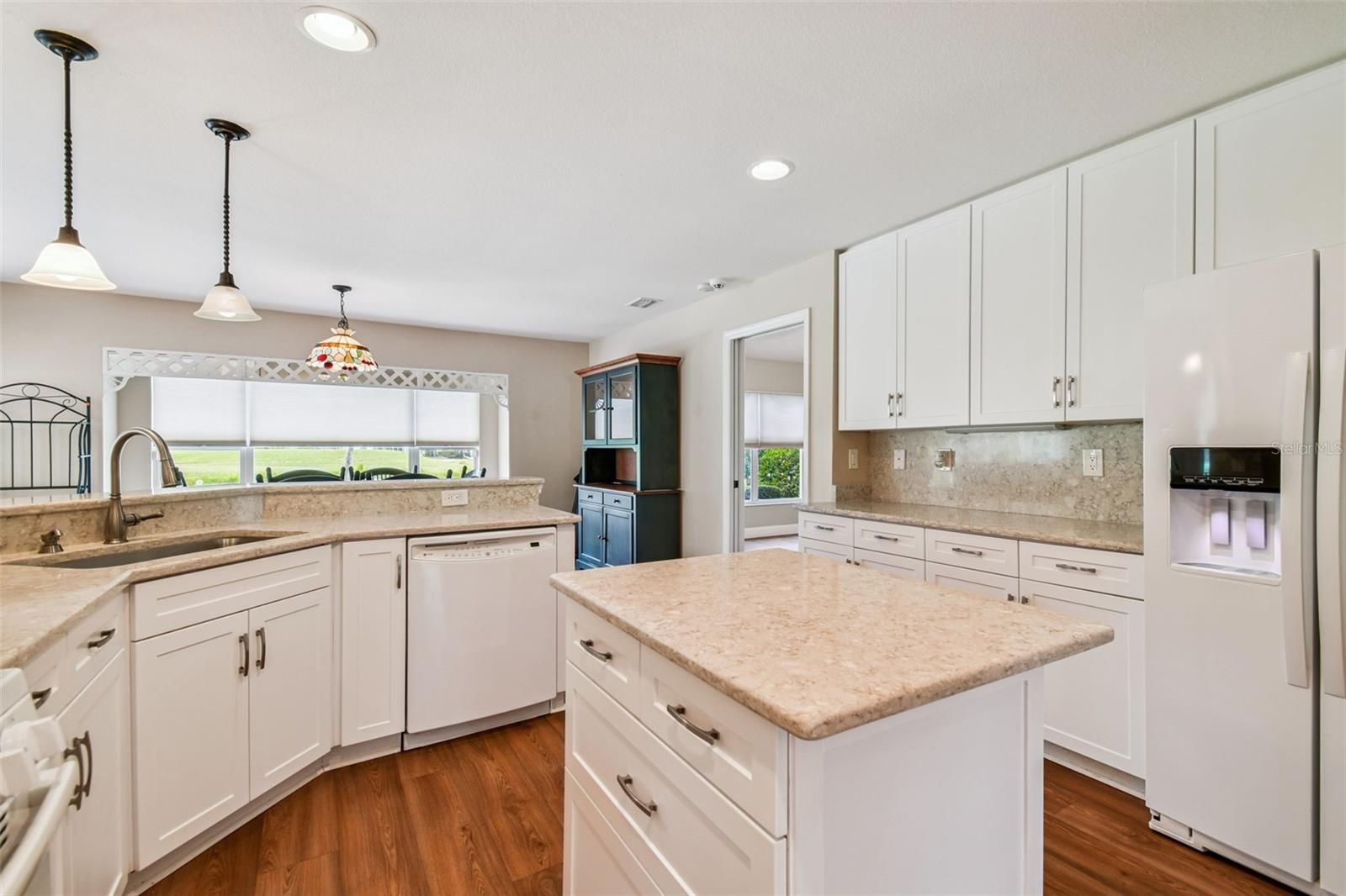 A rare Sun City Center find! This stunning balcony home has direct water views and golf course views. Located in the sought after Caloosa Trace area, on a low traffic cul-de-sac road. The kitchen is updated and gorgeous. The property is current with a 2020 roof, A/C is 2021, the hot water heater is 2020 and a water softener. The home design is perfect for relaxation and entertainment with most rooms having a view of the pond and golf course, the golf course is close, but not too close. This property is loaded with amenities including, luxury vinyl throughout, Rainbird irrigation, Ring doorbell system, alarm system, plus the refrigerator, washer and dryer are included. In sun City Center, golf carts are a way of life connecting you to shopping, fitness, entertainment & golf courses. Sun City Center was ranked the #1 Retirement Community for 2024, by Realtor.com plus Travel and Leisure Magazine. Sun City Center offers a very active lifestyle for its 55+ residents. Offering a world class fitness center, indoor Olympic lap pool, walking resistance pool, outdoor pool with hot tubs, ceramics, fabric arts, pottery. There are over 200 clubs and activities to enjoy. SCC is conveniently located near Tampa and Sarasota, malls, dining, beaches, live theater, amusement parks, sports venues. the world-renowned Anna Maria Island is worth the trip. Welcome to your retirement Oasis.