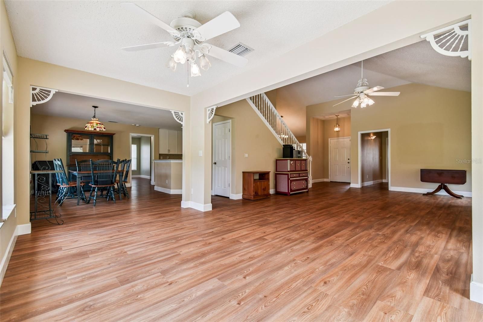 - Ceiling Fan(s), High Ceilings, Open Floorplan, Main Level Primary, Thermostat, Walk-In Closet(s), Window Treatments