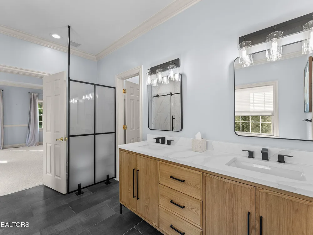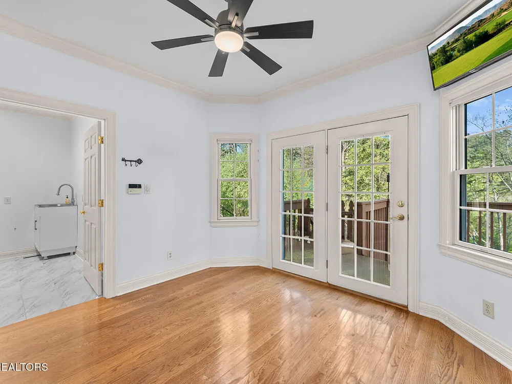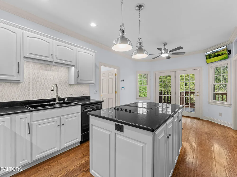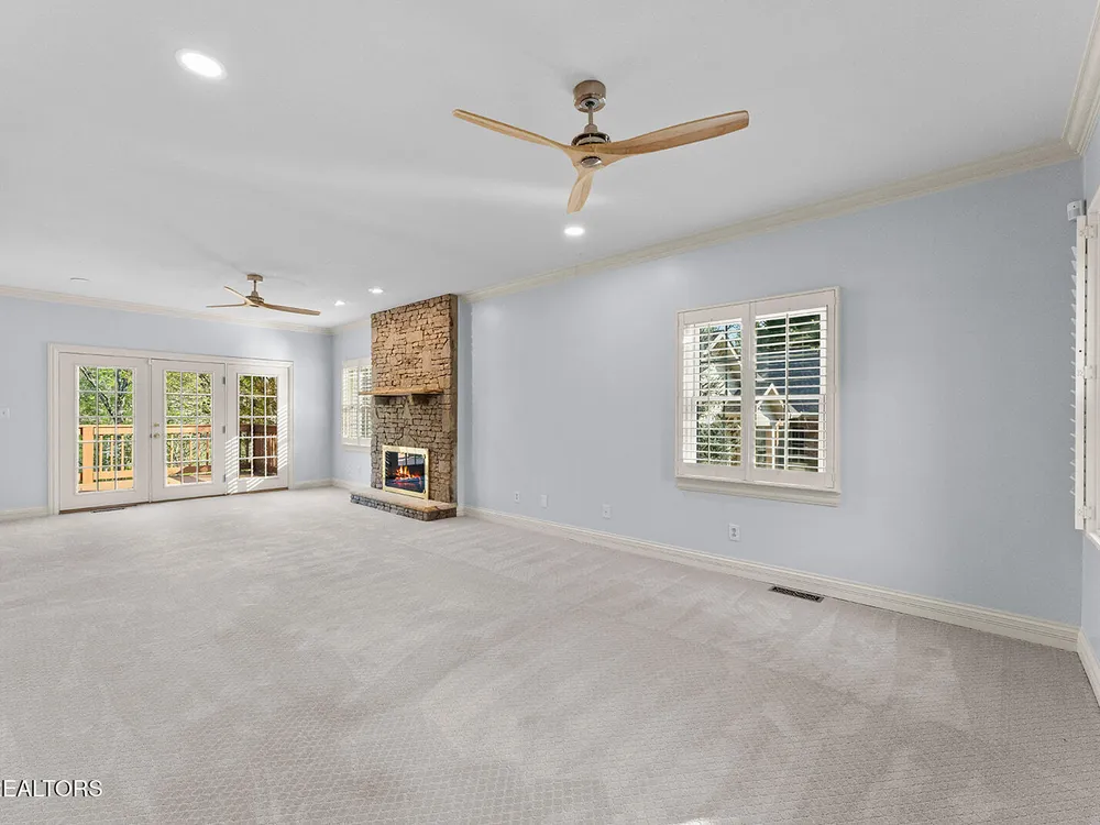 SELLERS SAY SELL! MOTIVATED & BRING ALL REASONABLE OFFERS!! Welcome to 231 Chuniloti Way, a Charming Lakefront home nestled within Tellico Village Lake and Golfing Community. This home is would make a great Air-BNB/VRBO due to its close location to the Toqua Golf Course and Lakefront, boasting an impressive 3,483 square feet of living space, featuring 4 spacious bedrooms, 4 full bathrooms, and ½ bathroom. NEW-Blue Tooth Garage doors, Renovated Living Room, Kitchen and Basement. Exterior Façade Renovated w/Cedar Accents, Stone Walls and New Shutters. As you step through the soaring entry foyer, you are greeted by an elegant ambiance enhanced by crown molding throughout. The entryway features hardwood flooring, illuminated by a hanging chandelier, and large arched window allowing natural light to flood the space, while the hardwood staircase beckons you to explore the upper level. The formal dining room, adorned with hardwood flooring and plantation shutters, provides an inviting setting for memorable meals. The lakefront living room offers plush carpeting, a stunning floor-to-ceiling stone gas log fireplace, and LED can lighting, creating a warm and inviting atmosphere. With two ceiling fans, Plantation Shutters and direct access to the expansive Lakefront composite back deck, this space is perfect for both cozy evenings and vibrant gatherings. The remodeled kitchen offers lake views, hardwood flooring, custom cabinetry, and granite countertops. Equipped with black appliances including a refrigerator, double oven, dishwasher, and microwave, this kitchen is a chef's dream. The center island has a Jen Air stovetop and pendant lighting, while the Bay'd Lake view breakfast area adds an extra touch of charm. Step outside to the main level lakefront deck, constructed with durable composite decking and featuring a stairway leading to the lush backyard. The deck is accessible from both the living room and kitchen, making it ideal for outdoor entertaining or simply enjoying the serene surroundings. The main level also offers a half bathroom, and remodeled laundry room with a cabinet and sink, ample storage, and convenient access to the spacious two-car garage, which features Bluetooth garage door technology and utility storage. Ascend to the upper level, where crown molding and carpeting continue to create an inviting atmosphere. The primary owner's suite is a true sanctuary, featuring a cozy gas log fireplace and a tray ceiling with a ceiling fan. The en suite bathroom has been thoughtfully remodeled, showcasing tiled flooring, a luxurious walk-in shower with floor-to-ceiling tiles, and a relaxing soaking tub. Custom cabinetry with double sinks and a granite countertop adds to the spa-like experience, complemented by a privacy-screened toilet area and a generous walk-in closet. The upper level also includes three additional guest bedrooms, each appointed with ceiling fans and ample closet space, as well as two well-designed guest bathrooms. A versatile bonus room provides extra space for recreation or relaxation. The lower walk-out basement level offers additional living space, ideal for an in-law suite. Featuring a family room with a floor-to-ceiling stone gas log fireplace, a wet bar area, full guest bathroom, and flex room that could be used as a bedroom and this level is perfect for hosting friends and family. The covered lakefront patio, equipped with a system with Drybelow type system and guttering to keep you dry, allows for seamless indoor-outdoor living. The exterior of the home is equally impressive, showcasing all brick and Masonite siding, professionally landscaped grounds, and an irrigation system. A concrete driveway provides ample parking, and a concrete sidewalk wraps around the right side of the home to the backyard. With a large, level aluminum-fenced backyard and a paved pathway leading to six feet of lake frontage, perfect for enjoying the tranquil waters of Tellico Lake there is nothing left to desire.