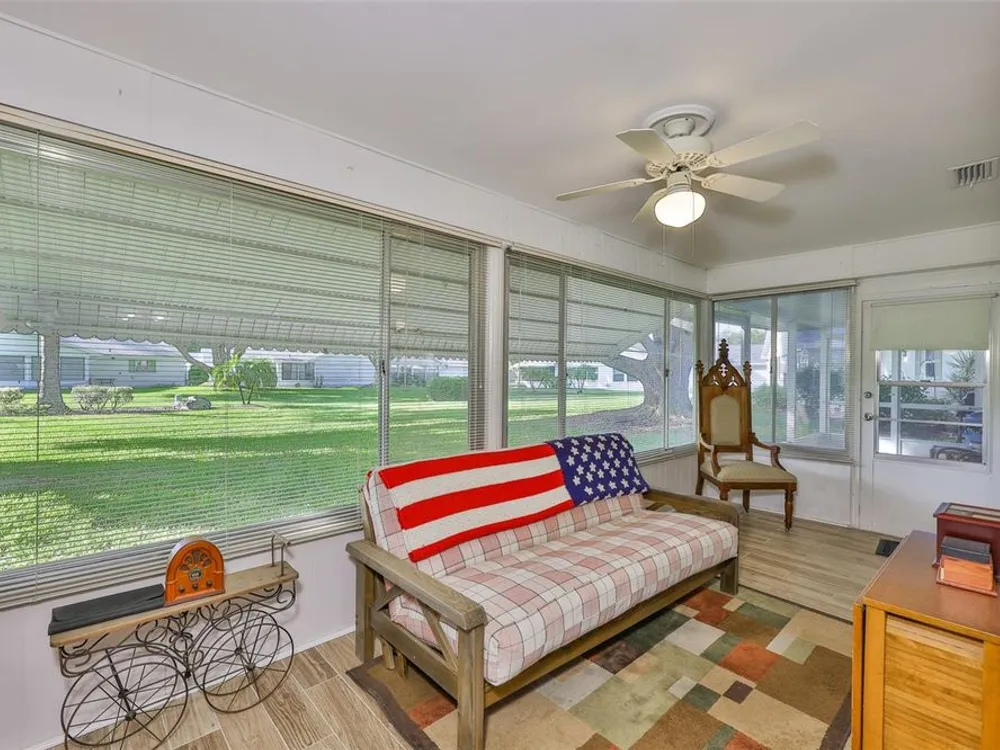 Come see this charming 2 bedroom, 2 bath condo has new wood look tile flooring in all main areas (NO carpet!) Know that you are drinking clean water with the Reverse Osmosis! The primary bedroom has a walk-in closet and the bathroom has a newer vanity. Step out back, where you can enjoy the newer screened-in back lanai and unwind. This condo also has an attached carport big enough to house a golf cart with a large storage room for all your needs which many condos do not have. Enjoy clean gutters without the hassle, with LeafFilter gutter guards! Two clubhouses, an 850-seat community theatre, six heated pools, pickleball, tennis, golf, fitness center, & sports/social clubs to join in abundance! No worries about maintaining your exterior, it is almost all included in the condo fees! Fees include cable, internet, exterior insurance, maintenance grounds, pest control, private road, security, water, trash, sewer and more. Kings Point, a thriving, gated 55+ community has amazing facilities, pools, clubs and events ready for you to enjoy. Located between Sarasota and Tampa, this home is a short commute to airports, shopping, dining, and professional entertainment. Enjoy easy access to award- winning beaches. Sun City Center, Florida, is the nation's top-ranked 55+ community according to Realtor.com.