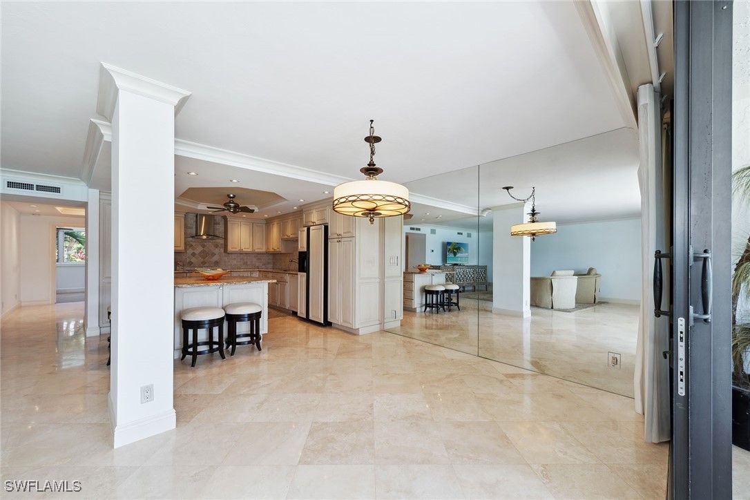 Experience waterfront living at its finest in this three-bedroom home in the desirable West building at Admiralty Point, ideally on a rare 10-acre peninsula in The Moorings. This spacious home offers breathtaking front-row views of Doctors Pass, Moorings Bay and the Gulf. The open floor plan is designed to maximize light and views, with wall-to-wall impact sliders that showcase the view. The large living and dining areas flow into the kitchen, complete with a center island with bar seating, granite countertops, stainless steel appliances and a wine cooler, ideal for entertaining. Admiralty Point offers direct beach and Gulf access, complete with on-site boat docks and a kayak launch. Additional features include under-building parking, secured lobby, 24-hour patrolled grounds and gate guard for peace of mind. Residents enjoy an unmatched array of resort-style amenities, including two social rooms, a state-of-the-art fitness center, Har-Tru tennis courts, shuffleboard, gas grills, a vehicle wash area and even a kiddie pool. Unique to Admiralty Point are its sunrise and sunset pools, offering the best of coastal experiences. All this just minutes from luxury shopping and dining at Venetian Village, Waterside Shoppes, 5th Avenue South and 3rd Street South.