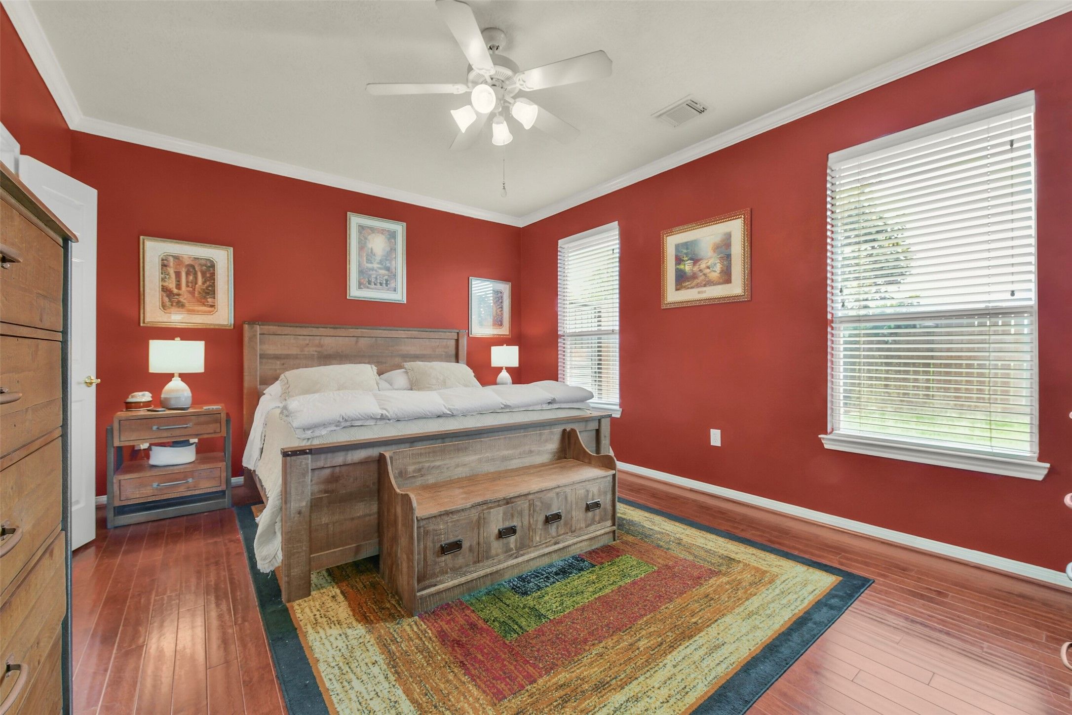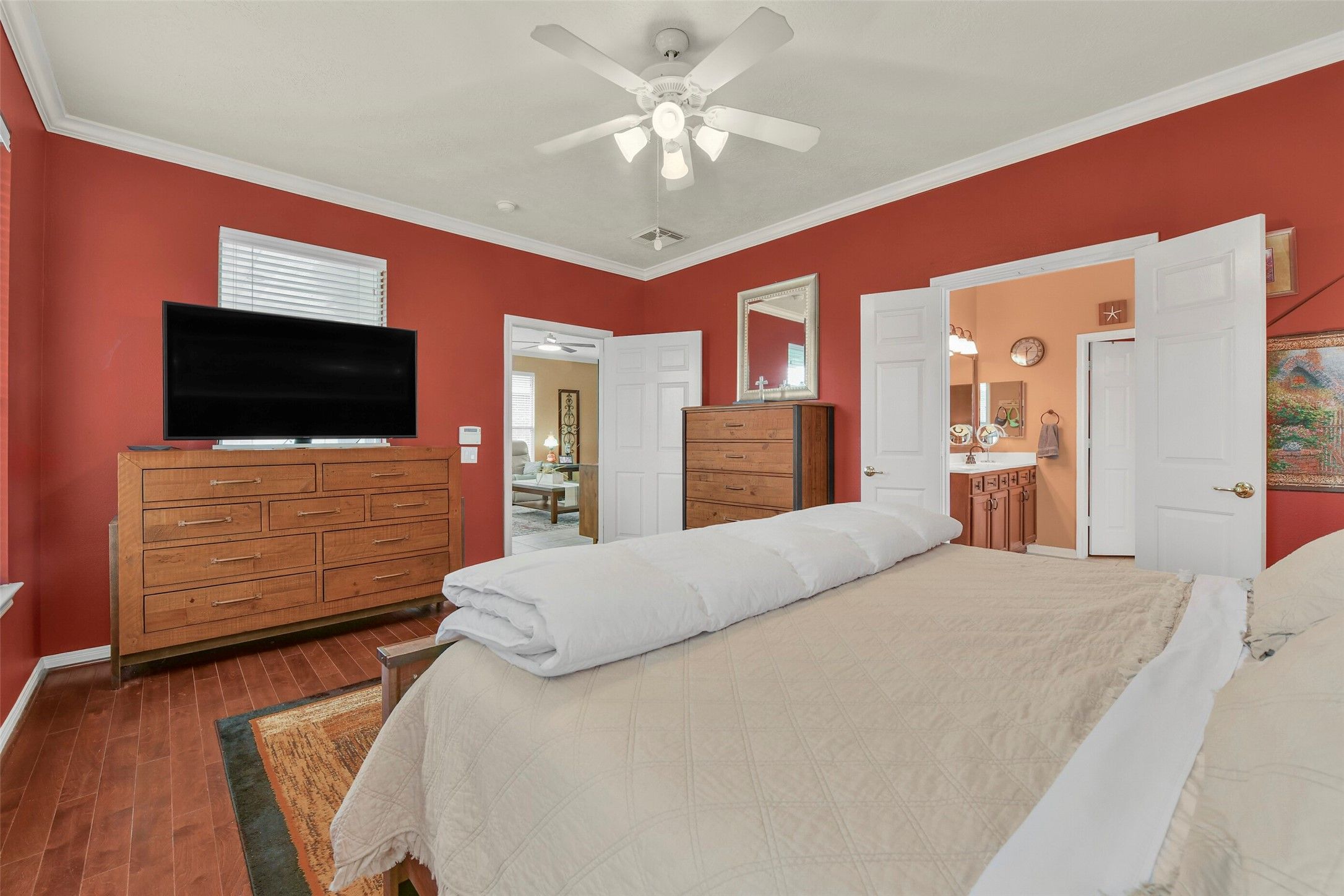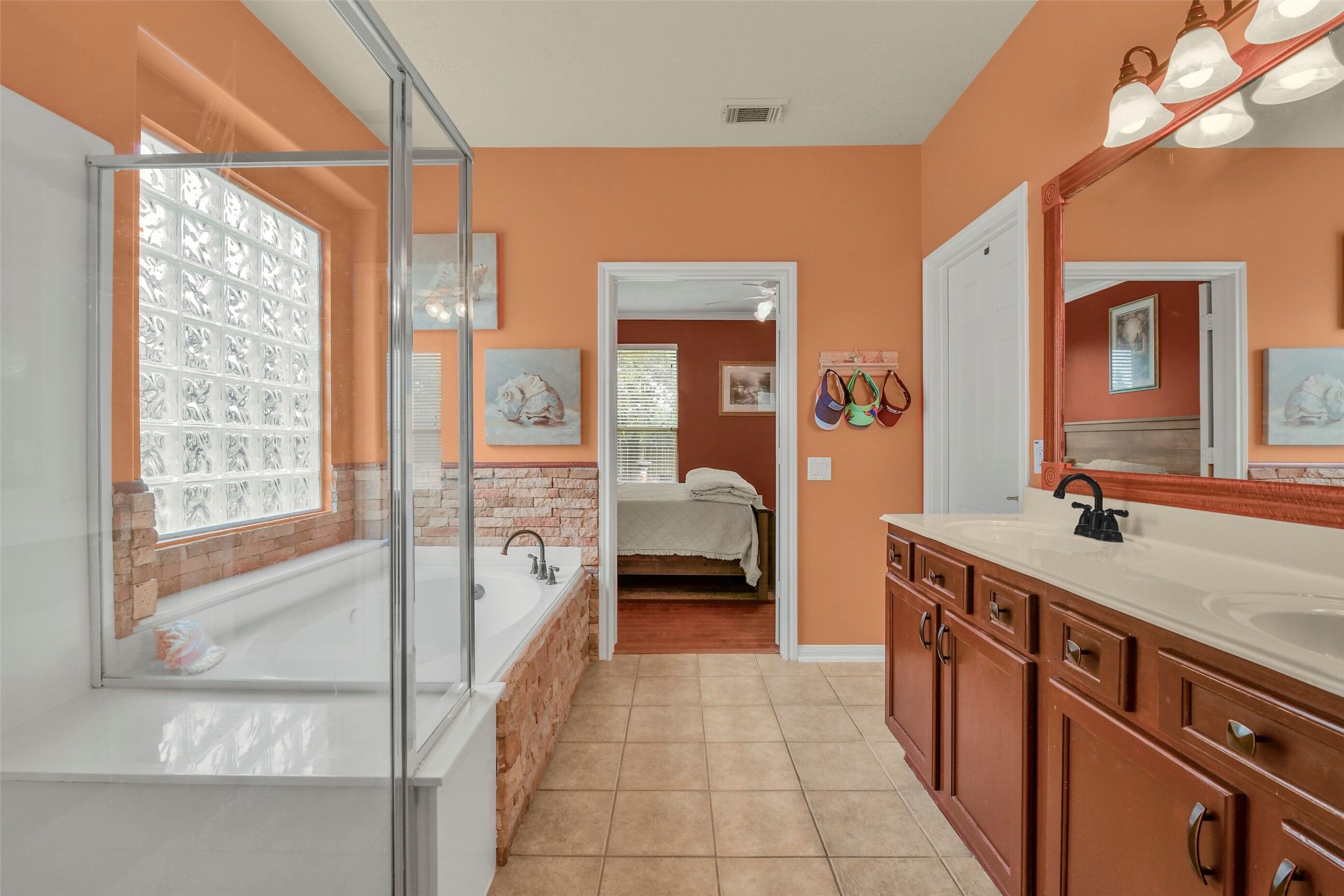 - Breakfast Bar, Crown Molding, Double Vanity, Jetted Tub, Kitchen/Family Room Combo, Separate Shower, Walk-In Pantry, Ceiling Fan(s), Living/Dining Room