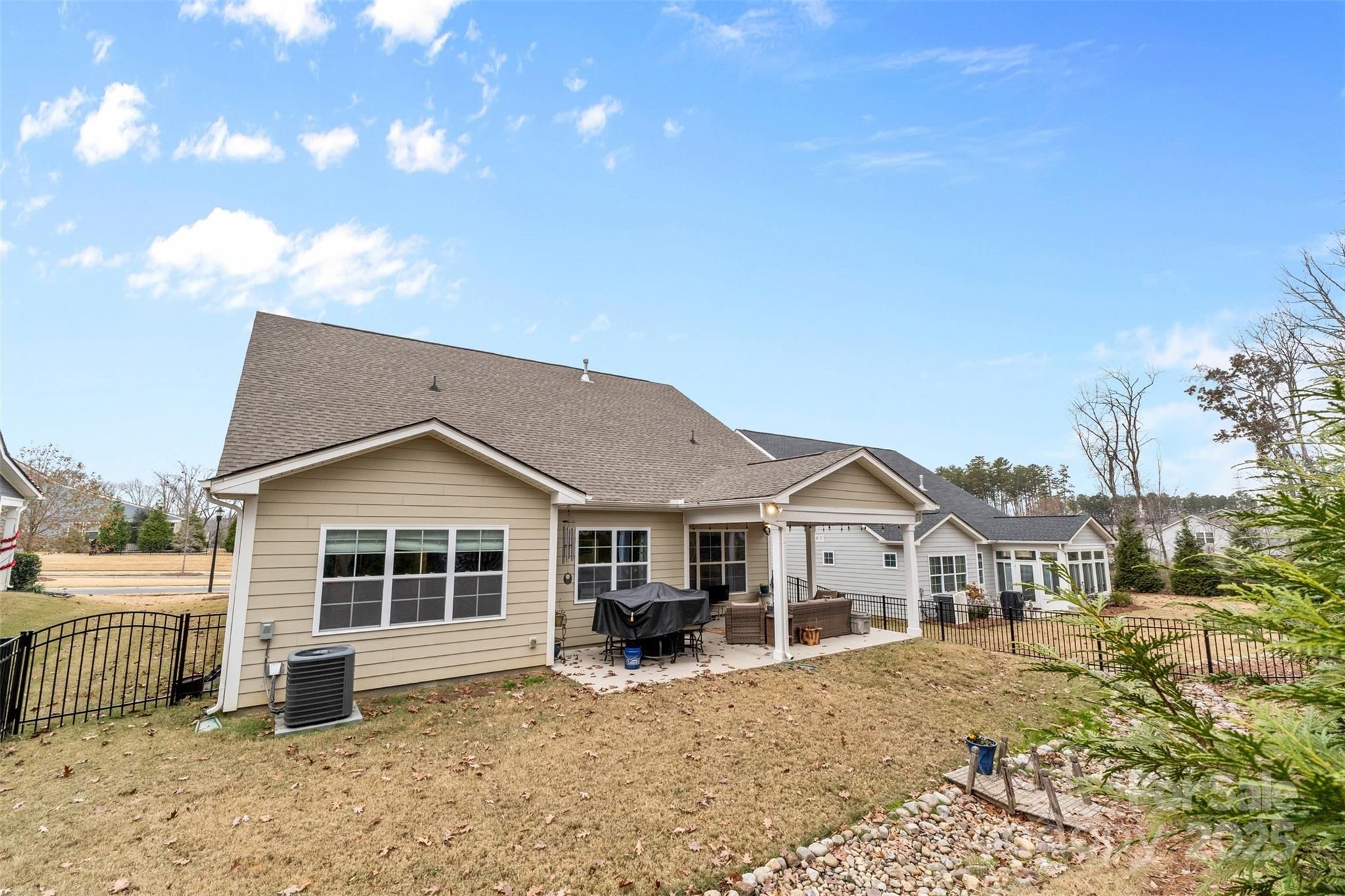Welcome to Heritage, one of Indian Trail’s premier 55+ active adult communities! Skip the wait for new construction—this 2020 home is move-in ready with a neutral modern palette. The thoughtful plan offers 2 bedrooms, a main level flex room, 2 full baths, and a bonus room above the garage—ideal for work, crafts/projects, or entertainment. The open main living area features LVP flooring, a cozy gas fireplace, and a stylish kitchen with quartz countertops and an oversized island perfect for gatherings. The light-filled primary suite includes a tray ceiling, extra windows, a walk-in closet, and a beautifully upgraded ensuite bath with tile. The main level home office could also be used as a third bedroom if needed. Enjoy extra versatility with an upstairs bonus room that provides the ideal space for hobbies, fitness, or visiting guests. Step outside to a covered patio and fenced backyard with a tree buffer for added privacy. Heritage offers a fantastic lifestyle with a clubhouse, pool, walking trails, and included lawn maintenance—all in a prime Wesley Chapel area location close to shopping, dining, and everyday conveniences!