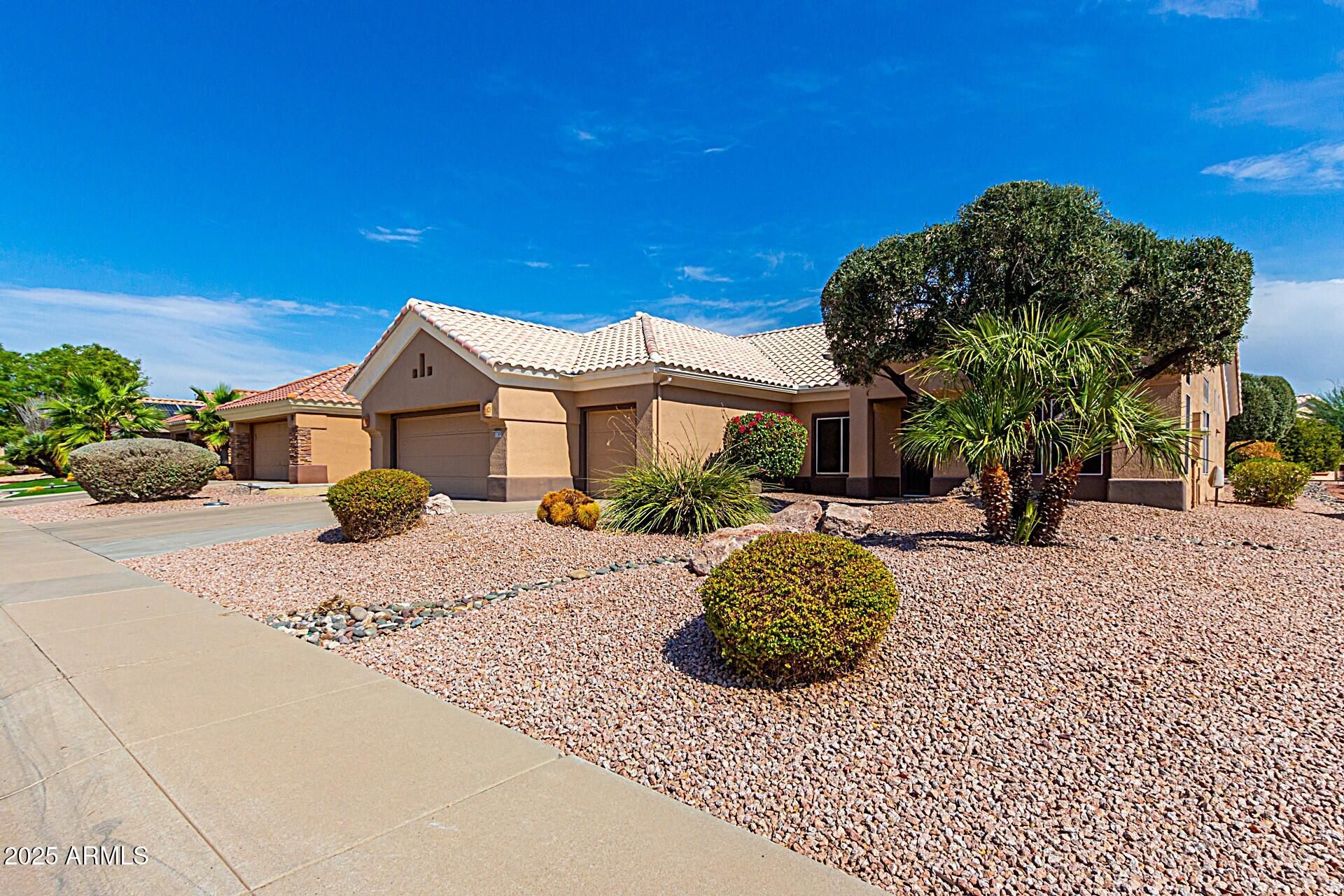 PRICED to SELL! Your search is over, here's ''THE ONE''! Spacious 2432 sq ft Home in NEWER SECTION w/NO HOA~~Boasts TILE ROOF, GOLF CART Bay +EXT length GARAGE, Den/HOBBY rm, PLANTATION SHUTTERS, Updated KITCHEN w/GRANITE COUNTERS, refinished cabinets w/PULLOUTS, GAS STOVE & BAY WINDOW! Both BEDROOMS EXPANDED to grand 21'+20' lengths, +2 CLOSETS in 2nd Bedroom & BAY WINDOW in PRIMARY Suite w/DUAL SINKS, shower & PVT water closet! w/R/O & WATER SOFTENER, a 2024 Garage Door opener & $3,900 WATER HEATER in 2023 & new HVAC in 2021! ~~ PRICE REDUCED ACCORDINGLY to ADD own COSMETIC UPDATES to YOUR TASTES~~Enjoy AZ sunsets under PERGOLA & ext Patio! ENJOY THE GOOD LIFE w/7 Golf Courses, 4 Rec Centers w/Bowling, Movie Theater, Pickleball & more! Near AZ Cardinals, SPRING TRAINING & TANGER OUTLETS