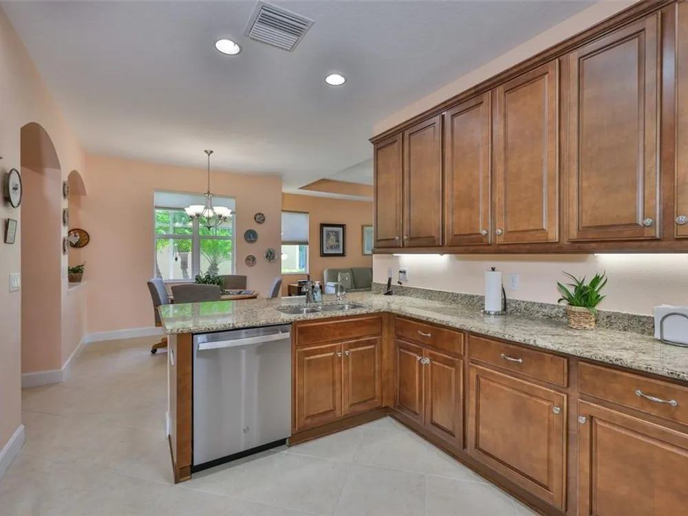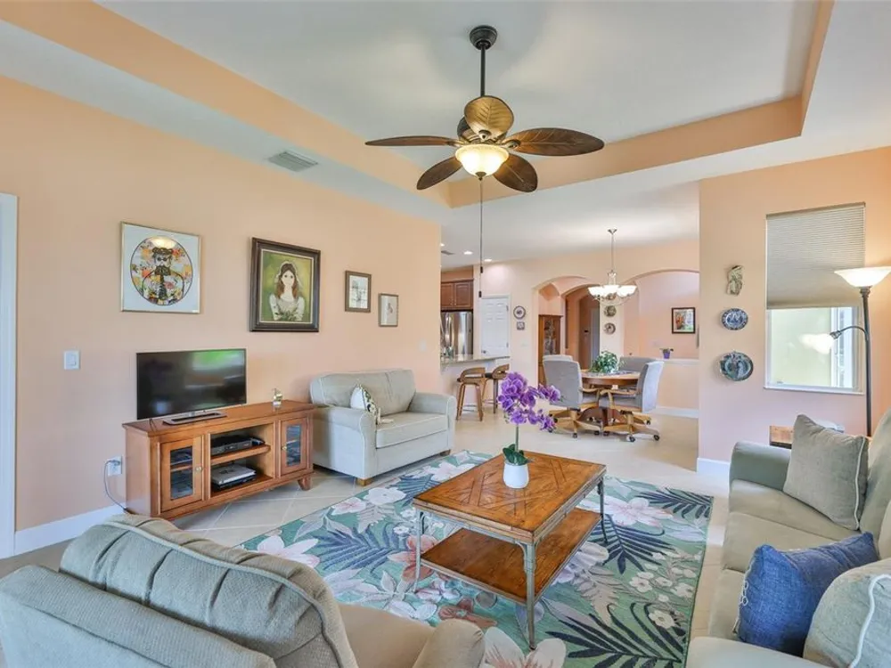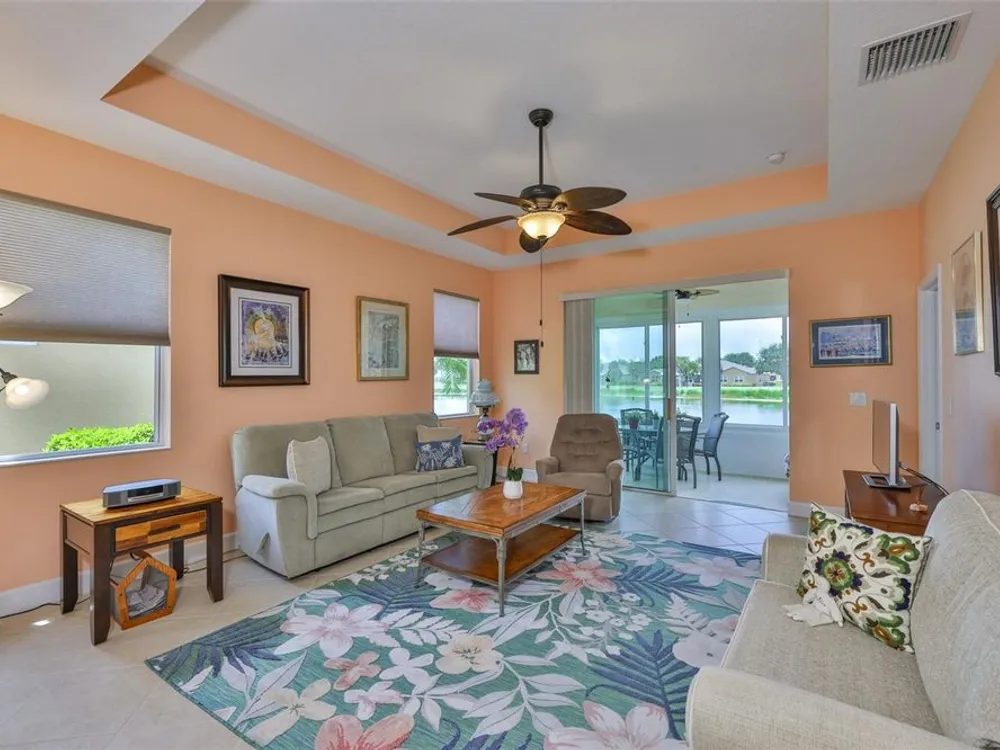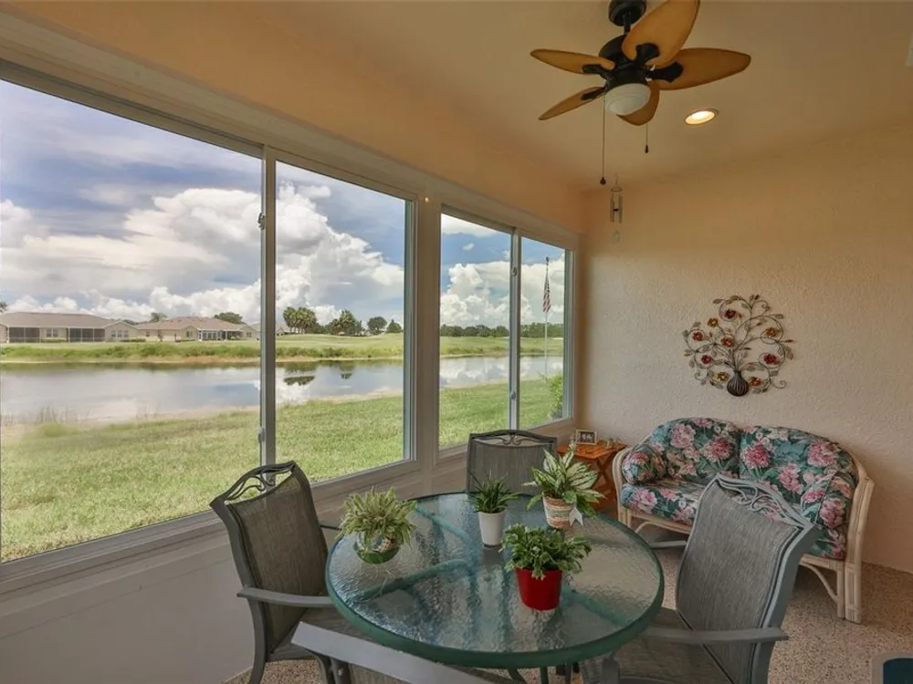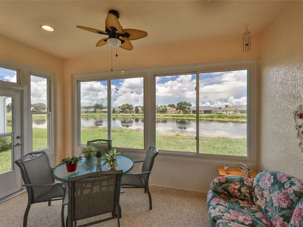 Major price reduction! Don't even think of missing this one! Welcome to your waterfront dream home that sits on a quiet street. Just a quick hop in your golf cart to the Kings Point South Clubhouse with restaurant, bar, pools, hot tub, pickle ball and much more! This lovely Palm model shows it's beauty with tall ceilings throughout. Just entering the home you sense the richness of the home with the front screened area perfect for a bistro set and plantings. Enter through the arched Foyer with recessed lighting and a coat closet! This upscale home has 2 bedrooms, 2 bathrooms, a Florida Room and an office/den. The Chef’s Kitchen has granite counter tops, dual stainless under-mount sink, solar tube with night retention, upgraded solid wood 42 inch cabinets, crown moldings and under cabinet lighting which shows off the elegant, tiled backsplash. Kitchen also has recessed lighting, a reverse osmosis system, a breakfast bar and a very efficient square shape with a huge amount of counter space and a closet pantry! All kitchen appliances are stainless with a double convection oven/range, French door refrigerator, dishwasher and convection microwave with outside exhaust too! The Great Room has a ceiling fan, tray ceiling and sliders to the waterfront Florida Room. The Primary Bedroom features a waterfront view, laminate flooring, tray ceiling, ceiling fan, cellular shades, large walk-in closet and an en-suite bathroom. En-suite bathroom features granite counters, solid wood cabinets, dual sinks, recessed lighting, exhaust fan, separate water closet and stall shower! Split floor plan provides you and your guest/family with the ultimate in privacy. The 2nd Bedroom is light, bright and airy with laminate flooring, ceiling fan and cellular shade. Bonus office/den with solar tube with night retention and recessed lighting is your space to customize and could be enclosed for privacy! Sit back and relax in your 24/7/365 Florida Room with a/c and ceiling fan. Watch the golfers on the Scepter Golf Course, enjoy your favorite beverage, read a book or just enjoy the waterfront. The hall Laundry Closet has the washer, dryer and racks for storage. The house has double pane windows with screens, thermostatic solar powered attic fan, hurricane shutters, in-wall TAEXX pest control system, termite warranty, water softener, NEW ROOF 2023, NEW HVAC HEAT PUMP 2024 with power saver, UV lights and surge protection, well insulated attic, a Safetouch security system, diagonal ceramic tile and grab bars. Don't forget the 2 car garage too! Kings Point is an active and carefree 55+ community with amazing facilities, pools, golf, activities, restaurant, bar, I always say...it's like a cruise ship on land! Conveniently located to shopping, dining, interstates, medical facilities and beaches. Choice Home Warranty transferable to you. Home is a single family residence with a Homeowners Association and not a Condominium Association. What are you waiting for? The time is now - snooze, you lose!
