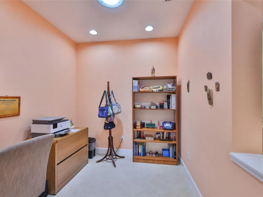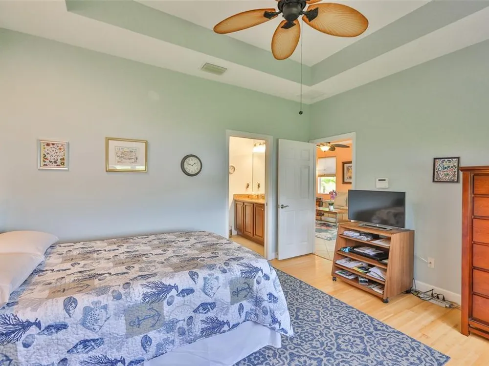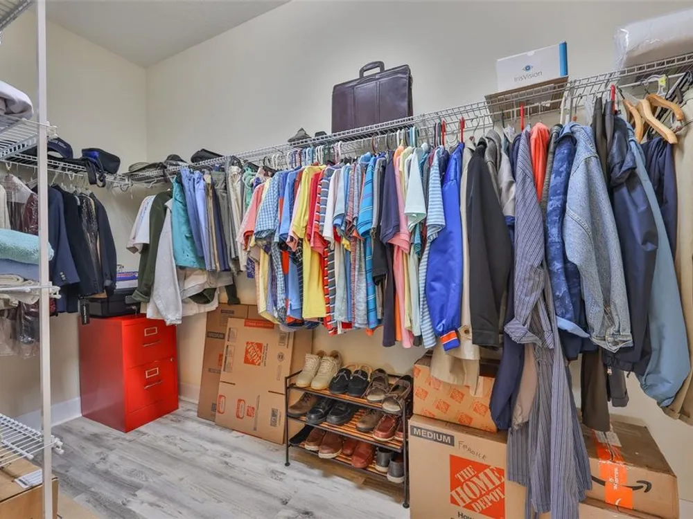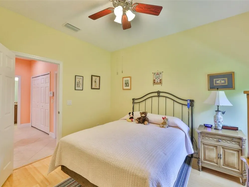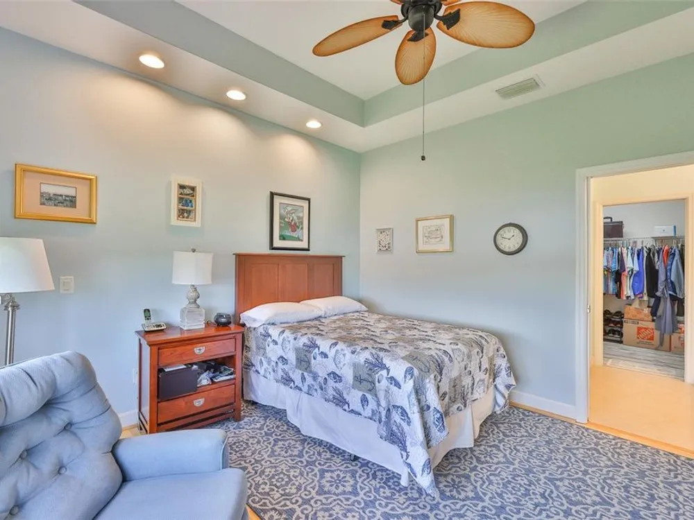 - Ceiling Fan(s), Crown Molding, High Ceilings, In-Wall Pest Control, Open Floorplan, Main Level Primary, Solid-Wood Cabinets, Split Bedrooms, Stone Counters, Thermostat, Tray Ceiling(s), Walk-In Closet(s)