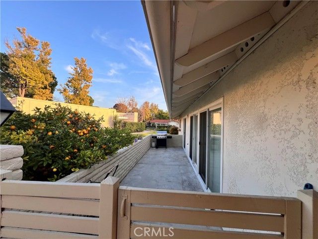 Completely remodeled single level home in Laguna Woods a 55+ community. Greenbelt location, no one above or below. The kitchen features quartz countertops & stainless steel appliances and is perfect for entertaining with a center island that opens to the family room and dining areas. A skylight was added over the island & brings in extra light. The floor plan was completely redesigned. The primary bedroom now contains a spacious walk-in closet, all ceilings raised to one level & a new laundry area. Both bathrooms have sleek touches including designer ceramic tile, lighting, & two-toned designer paint. Both showers are Walk-in showers with no steps to climb over. Triple sliding glass doors lead out to a delightful patio that captures the morning sun & offers shade in afternoon. Beautiful greenery surrounds the patio area. The home offers an opaque glass front door, wide plank engineered wood floors, recessed lighting, dual panel vinyl windows, TV & cable hookups in bedroom & living room, forced air heating and air conditioning, new electrical throughout! All the Laguna Woods Amenities too! ***New Pro pictures coming soon!***