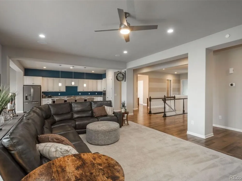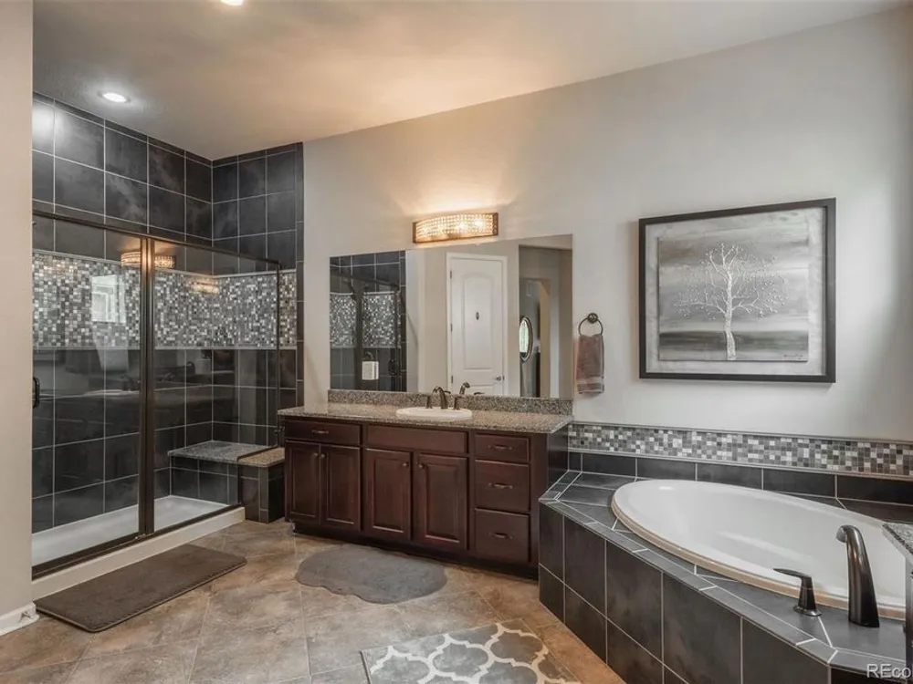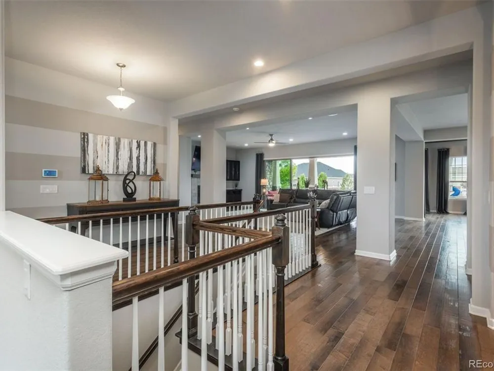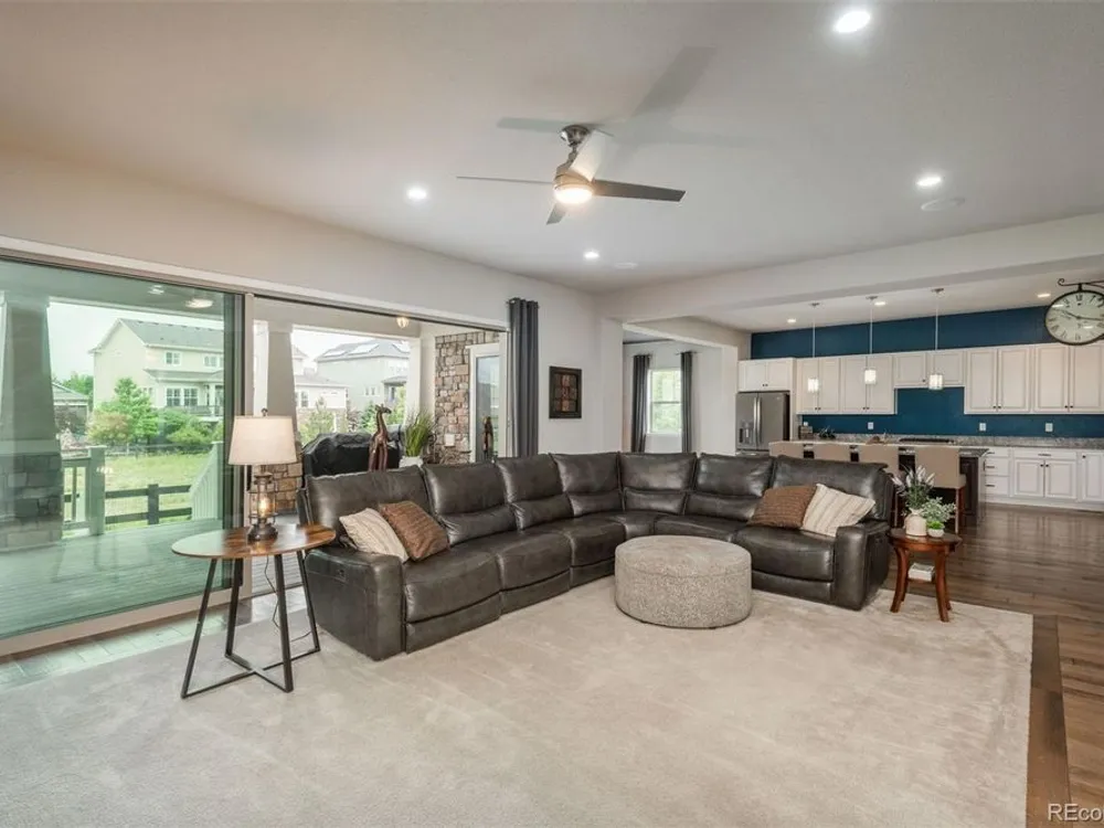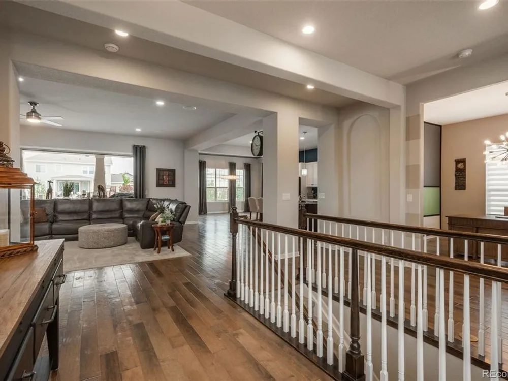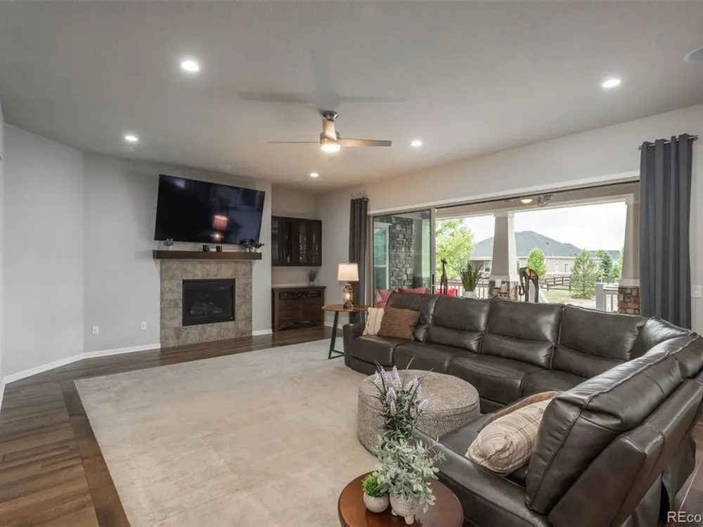 PRICED BELOW RECENT APPRAISAL! SEE THIS AMAZING OPPORTUNITY TODAY! Step into this beautifully upgraded home by Toll Brothers, located in the premier 55+ resort-style community of Inspiration! With nearly 3,000 square feet on the main level and over $140k in Builder/Seller upgrades this home will surely please the most discerning buyer!. From the moment you enter, you’ll notice the wide foyer, warm wood plank flooring, and open flow leading into the expansive great room featuring a newly added surround sound system, mantle, and remote-controlled shades. Natural light fills the space thanks to the dramatic 15-foot multi-panel sliding glass doors, which stack open to connect seamlessly to the outdoors. Step outside to a large, covered deck—perfect for year-round Colorado indoor/outdoor living. The gourmet kitchen is a true centerpiece with ample cabinetry and counter space, a large eat-in island, white French country-style cabinets, stainless steel appliances, and a walk-in pantry. The adjacent dining area is filled with windows and opens to the deck. Down the hall, you’ll find a versatile bonus room ideal as an office or possible bedroom, a stylish half bath, and a private guest suite with walk-in closet and en-suite bath. The primary suite includes a spacious bedroom with remote-controlled blackout shades, a luxurious bath with dual raised vanities, soaking tub, and beautifully tiled shower, along with a generous walk-in closet. The laundry/mud room features added cabinetry and a utility sink. The newly finished basement includes a large open area, additional bedroom, sleek new bar with wine fridge, and a ¾ bath. Car enthusiasts will love the extended 3-car garage—upgraded with 4-foot depth extension, epoxy flooring, 220V outlet, and air compressor. Recent updates include a brand-new Class V roof, gutters, and screens in 2024. Residents enjoy exclusive access to the Hilltop Club with clubhouse, resort-style pool, and more!