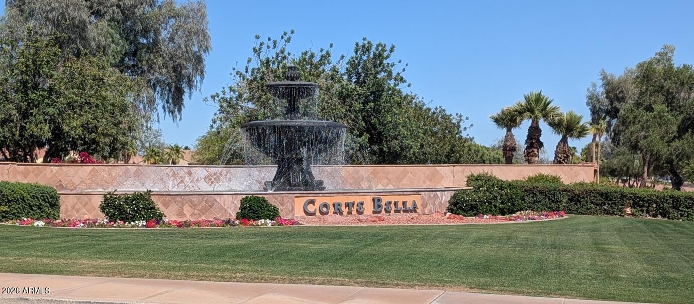 Perfectly positioned on a ¼ Acre Lot adjacent to a scenic walking path, this residence offers both privacy & tranquility within the prestigious guard-gated Corte Bella Country Club community. From the moment you arrive, the care, quality, and thoughtful upgrades of this exceptional home are immediately evident. A charming gated courtyard creates a warm & inviting entry, setting the tone for the elegance that unfolds inside. Step through the foyer into the Formal Living & Dining areas, where expansive picture windows draw your eye to the beautifully designed backyard, complete with a covered patio, remote-controlled awning, & a striking stone fountain waterfall that creates a peaceful, resort-style ambiance. The heart of the home is the Great Room, where refined comfort meets modern convenience. Enhanced with surround sound & a custom-built-in entertainment unit, it flows seamlessly into the upgraded Kitchen. Here, you'll find exquisite cabinetry with rope detailing & crown molding, under-cabinet lighting, quartz countertops, a generous center island with bar seating, LG stainless steel appliances, & a premium Kraus single-basin sink, every element thoughtfully selected for both beauty & function. The Primary Suite is a private retreat offering dual vanities, a luxurious jetted soaking tub, walk-in shower, & an expansive walk-in closet. Throughout the home, you'll appreciate the abundance of storage & the elevated finishes, including newer porcelain tile flooring in all main living areas, plush carpeting in the bedrooms, & custom window treatments that add warmth & sophistication. Designed with flexibility in mind, the home features a full private Casita with its own entrance, ideal for guests or Multi-Generational Living. The versatile 4th bedroom, complete with a solid wood Murphy bed, easily transitions into an Office or Den to suit your lifestyle. Step outside to a backyard designed for both relaxation and entertaining, featuring a built-in BBQ area, gas fire pit, enhanced landscape lighting, & an updated PVC irrigation system with new valves, ensuring beauty and efficiency year-round. Significant system upgrades provide peace of mind, including two brand-new Trane HVAC units (2026) & a sophisticated CCTV security system installed in 2022, along with an upgraded breaker box and additional electrical sub-panel. With a nod to green technology, this home contains the H2O Concepts Whole House water purification system. Even the garage has been elevated with high-quality built-in cabinetry, workbenches, & a utility sink. Enhancements include iron fencing on the pony wall for additional security and privacy. A spacious laundry room with upper & lower cabinetry, counter space, & a utility sink, along with updated bathrooms featuring new toilets and an upgraded 5/8-inch glass shower door in the hall bath. Energy efficiency is enhanced with fully prepaid solar panels. With over $110,000 in upgrades, this home is a seamless blend of elegance, comfort, and modern efficiency. An exceptional opportunity to enjoy refined living in one of the area's most sought-after communities.