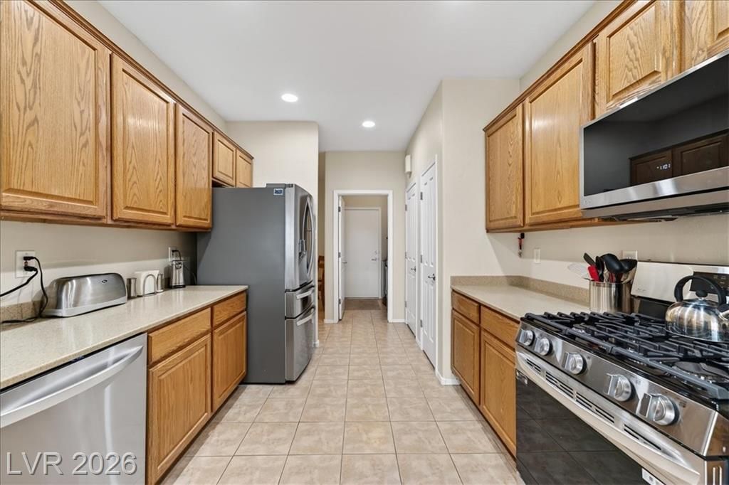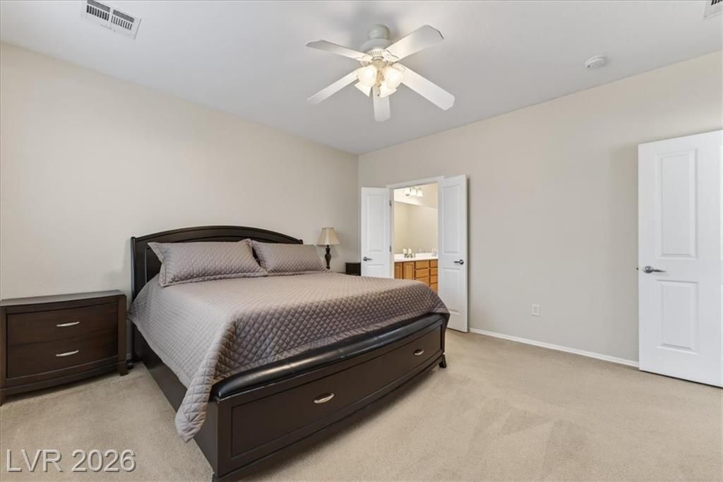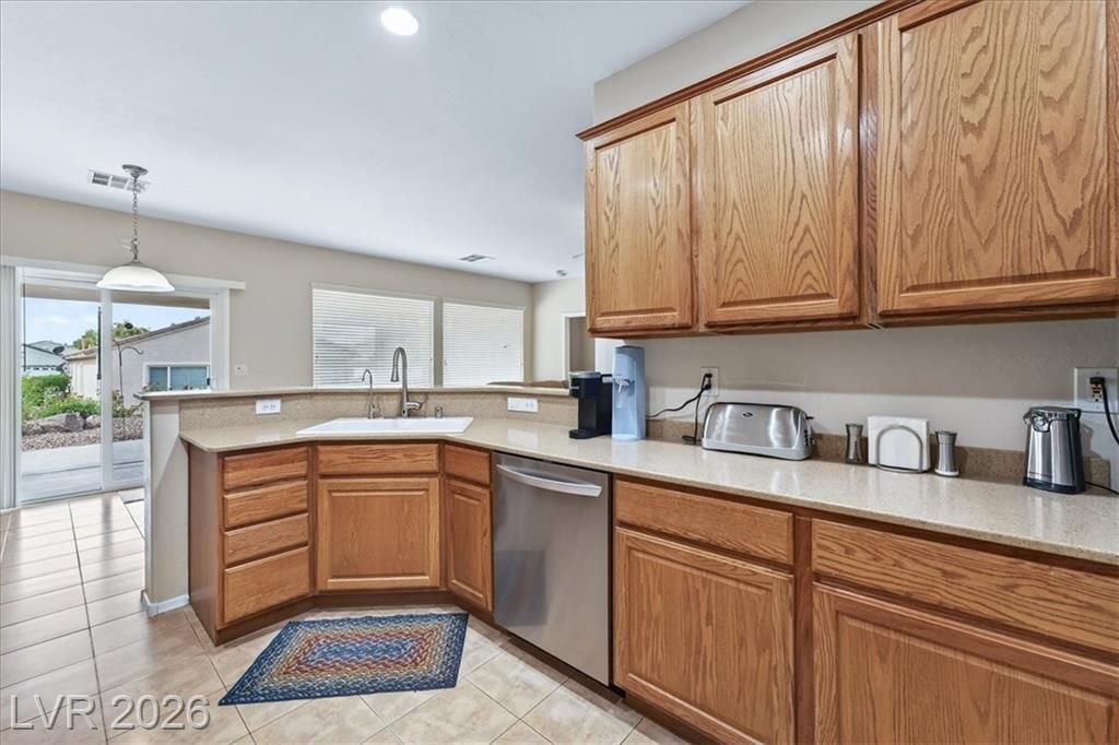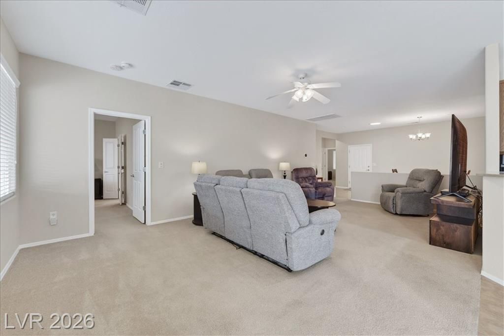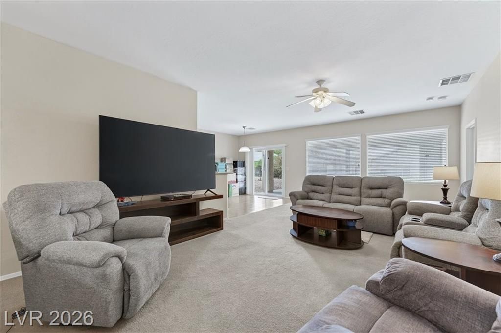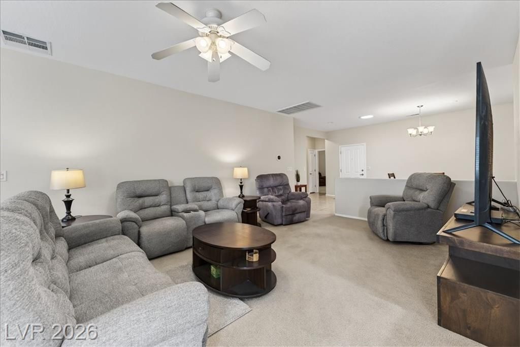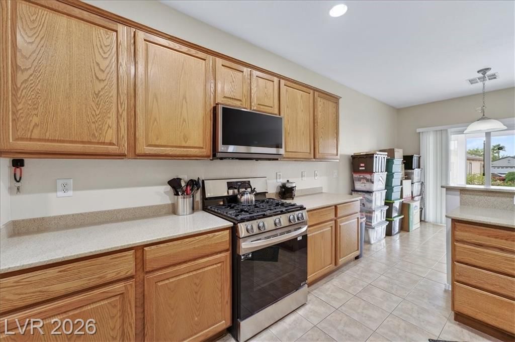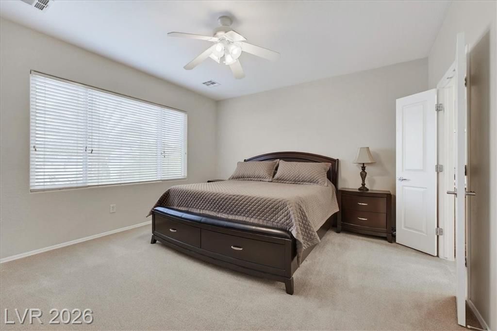 Located in the heart of Solera at Anthem, Henderson's premier Del Webb 55+ community, this open concept 3 bedroom Franklin model features a freshly painted interior with neutral colors throughout. The kitchen boasts all-new stainless steel LG ThinQ Wi-Fi enabled appliances, pantry, & Corian counters. Upgrades galore including stacked stone exterior facade, security gate at the front entry, epoxy driveway & walkway, ceiling fans throughout, and new LG front loader washer & dryer! Major system upgrades include a new HVAC core, new water heater, new garage door opener, all-new comfort height toilets, water softener & reverse osmosis system. Step outside to your extended covered patio featuring motorized remote-control shades, plus included new stainless steel BBQ! IDEAL LOCATION situated just steps from the gorgeous Solera Community Center where residents enjoy a clubhouse, fitness center, indoor pool, outdoor spa, tennis, bocce ball, & more included in your HOA Fees!