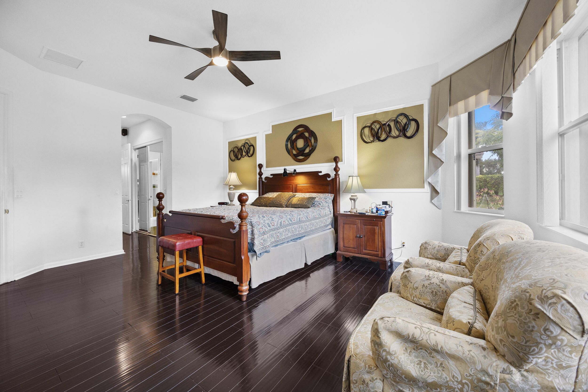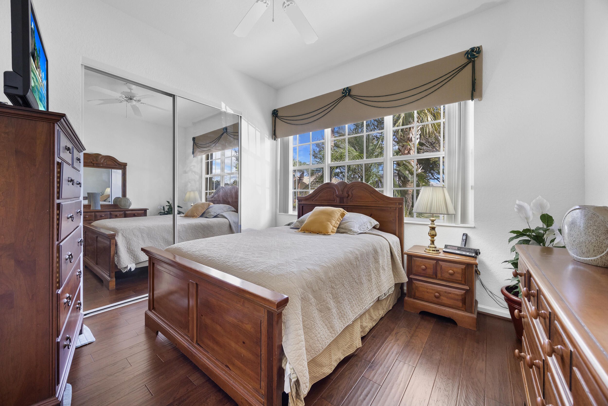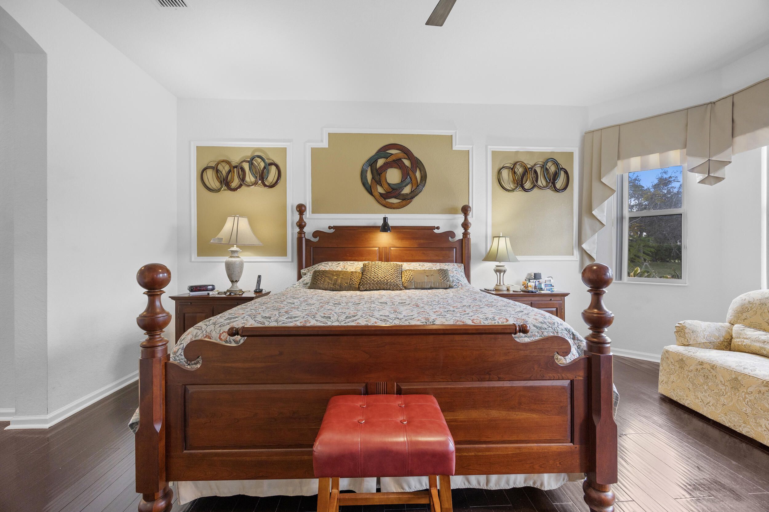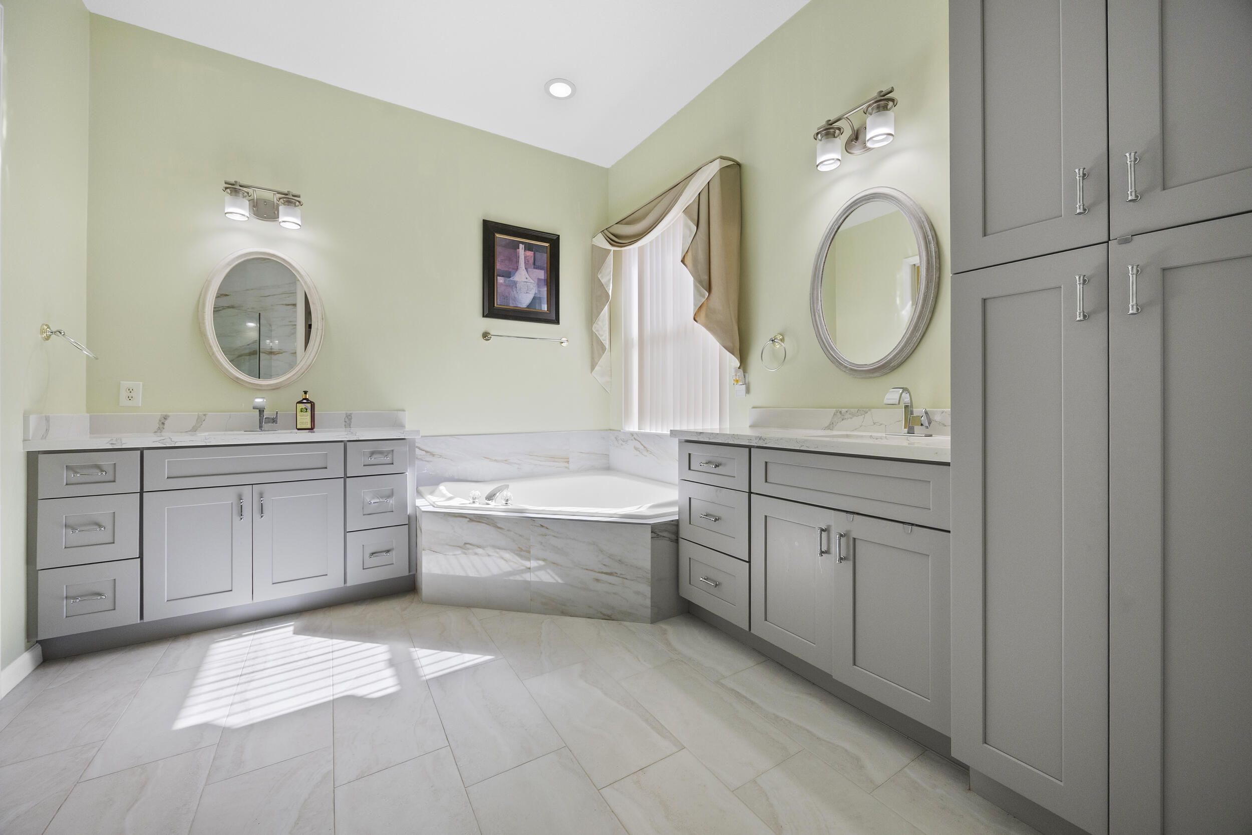 You'll love coming home to this vibrant active adult community in the highly desirable Sailfish Cove within the gated Baywinds community. Residents enjoy a fully staffed clubhouse with a grand lobby, fitness center, card rooms, ballroom, billiards, library, movie theater, craft room, and multiple pools—including a resistance walking pool—plus countless resort-style amenities. This home features elegant crown moldings, high ceilings, and warm, inviting tones throughout. Both the Primary Suite and a guest bedroom have ensuite bathrooms. The Primary includes dual vanities, a relaxing jacuzzi tub, glass-enclosed shower, private water closet, and a floor-to-ceiling linen closet. The spacious island kitchen opens to a generous family room, perfect for entertaining. For quiet moments, enjoy