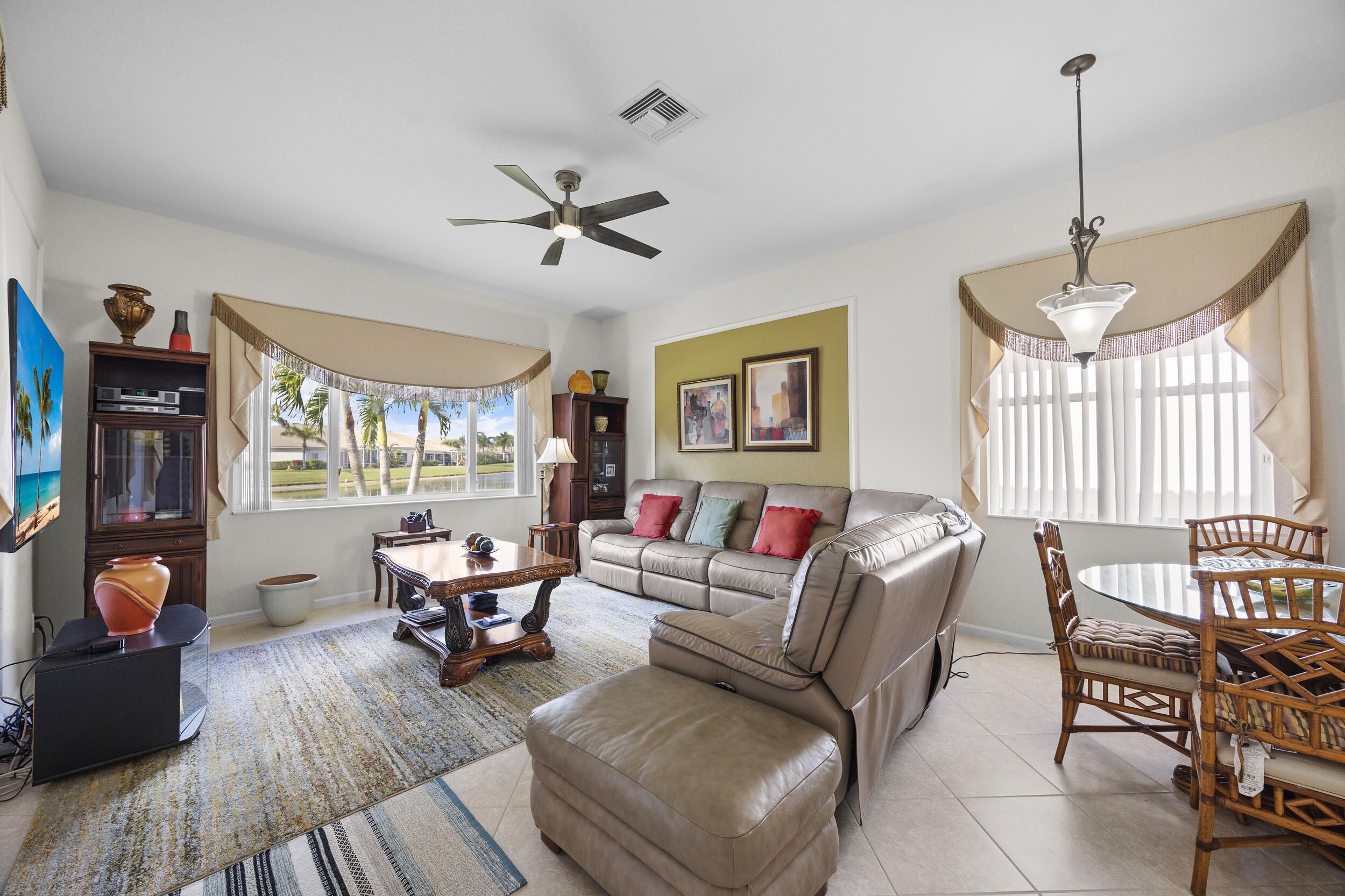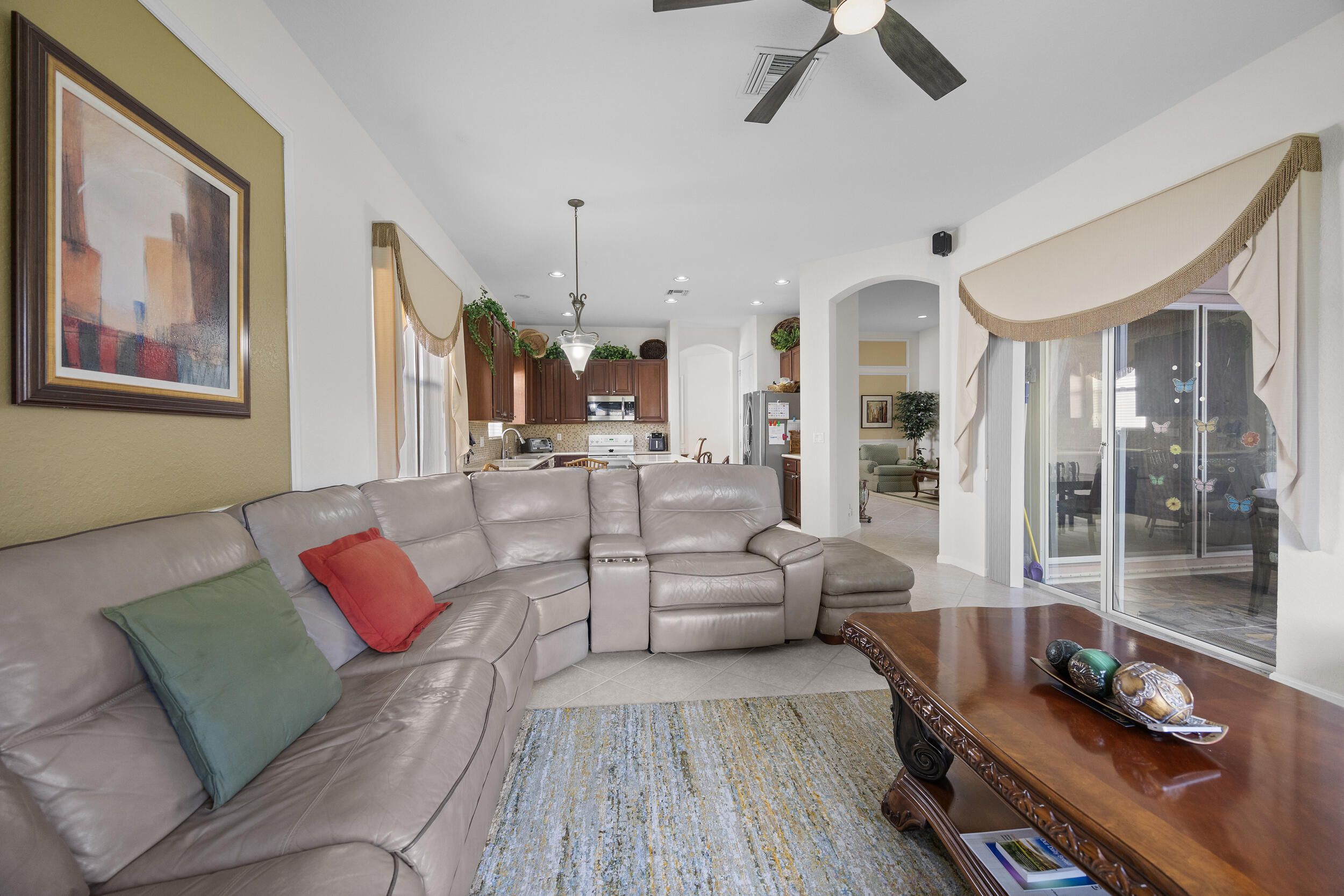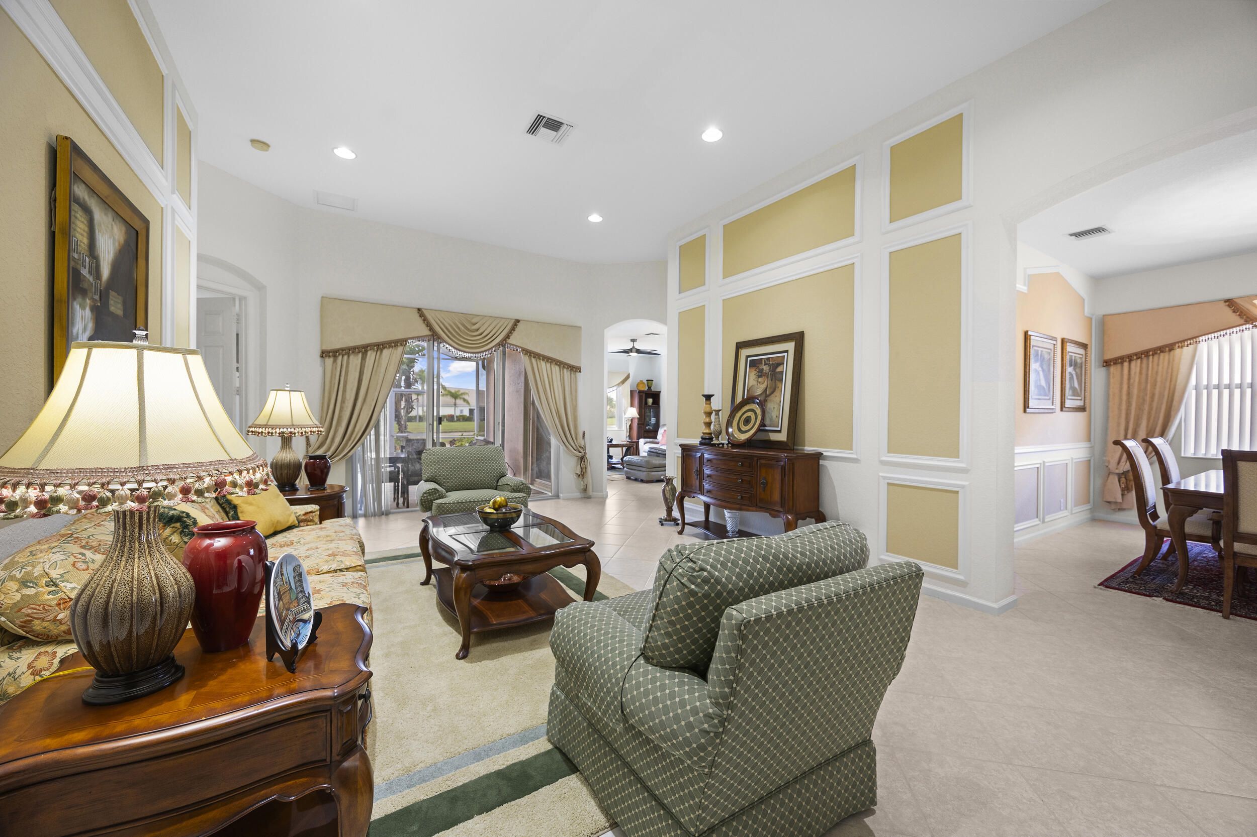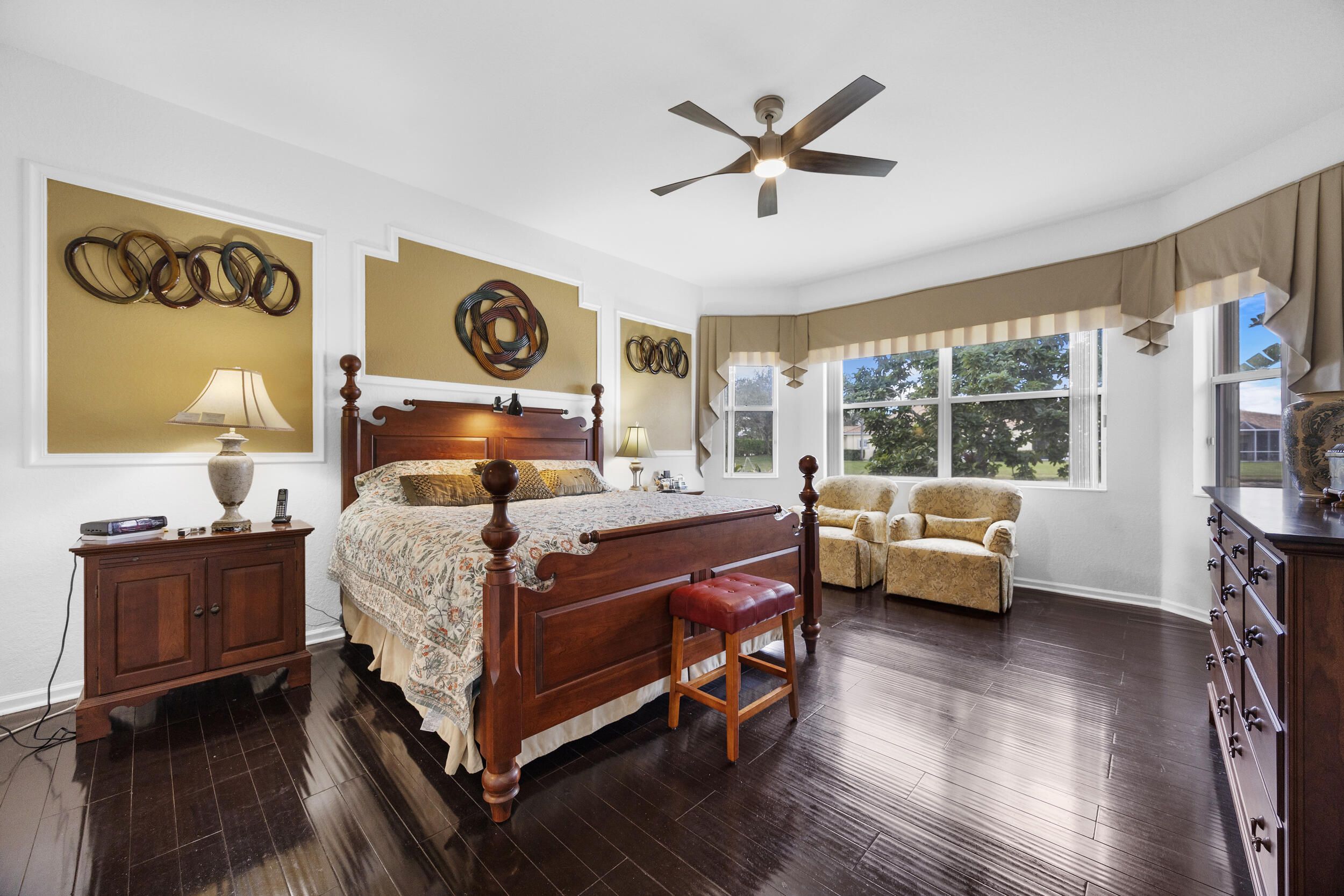 You'll love coming home to this vibrant active adult community in the highly desirable Sailfish Cove within the gated Baywinds community. Residents enjoy a fully staffed clubhouse with a grand lobby, fitness center, card rooms, ballroom, billiards, library, movie theater, craft room, and multiple pools—including a resistance walking pool—plus countless resort-style amenities. This home features elegant crown moldings, high ceilings, and warm, inviting tones throughout. Both the Primary Suite and a guest bedroom have ensuite bathrooms. The Primary includes dual vanities, a relaxing jacuzzi tub, glass-enclosed shower, private water closet, and a floor-to-ceiling linen closet. The spacious island kitchen opens to a generous family room, perfect for entertaining. For quiet moments, enjoy