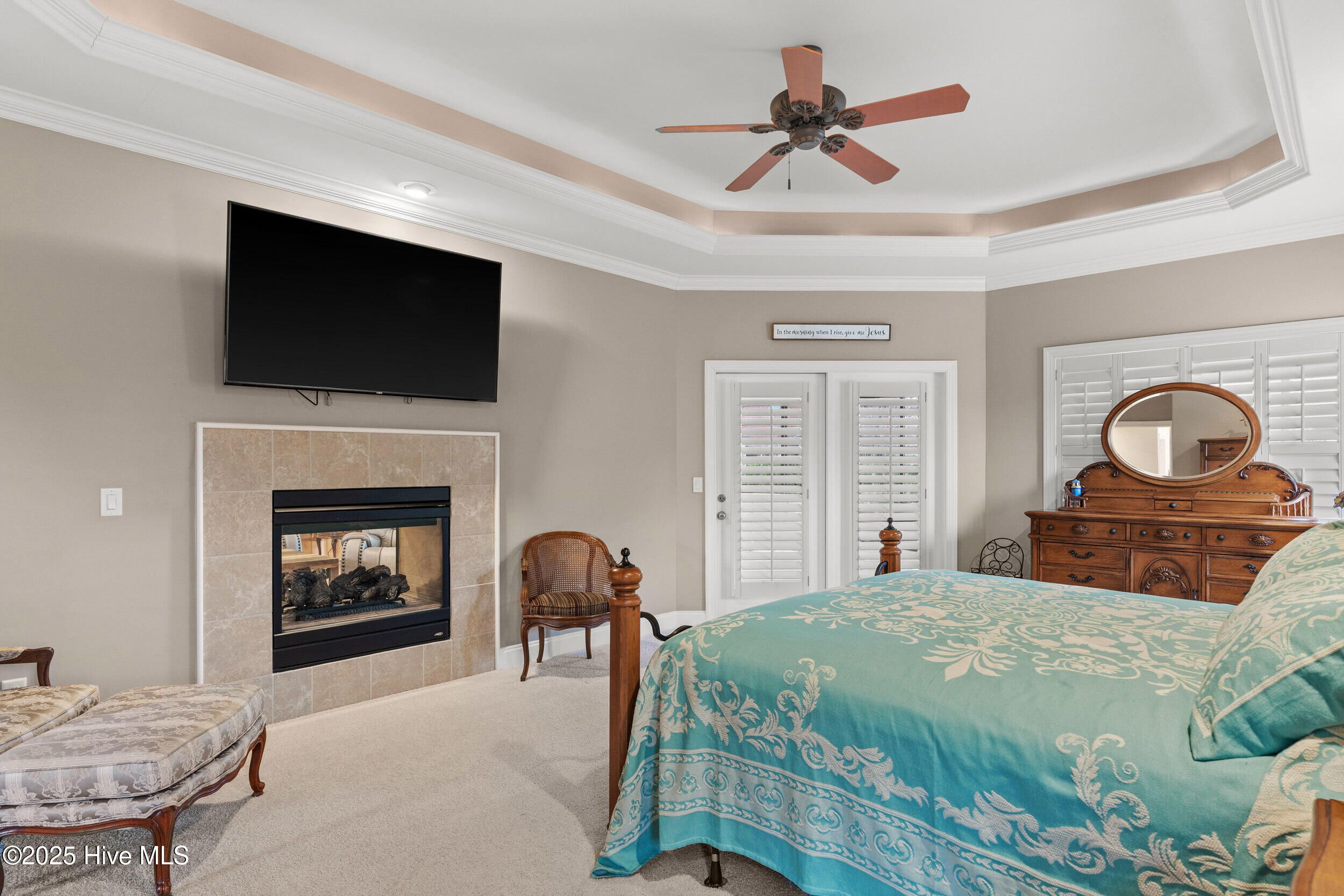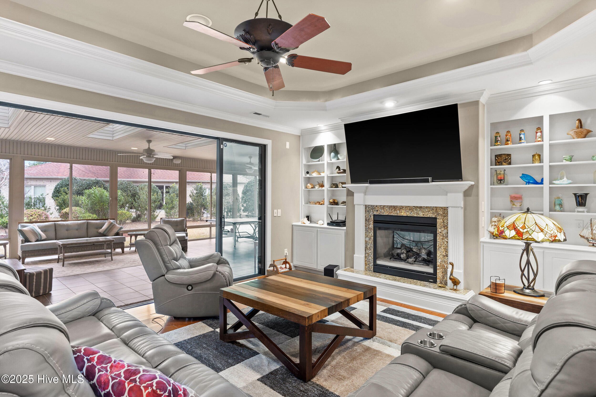 - Master Downstairs, Walk-In Closet(s), Tray Ceiling(s), High Ceilings, Bookcases, Ceiling Fan(s), Furnished, Pantry, Walk-In Shower, Blinds