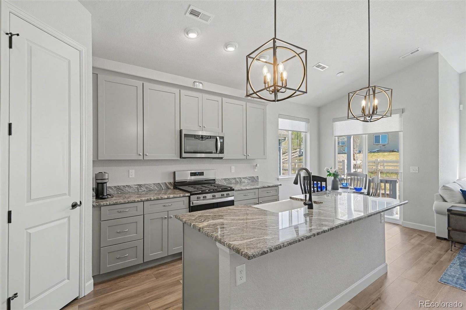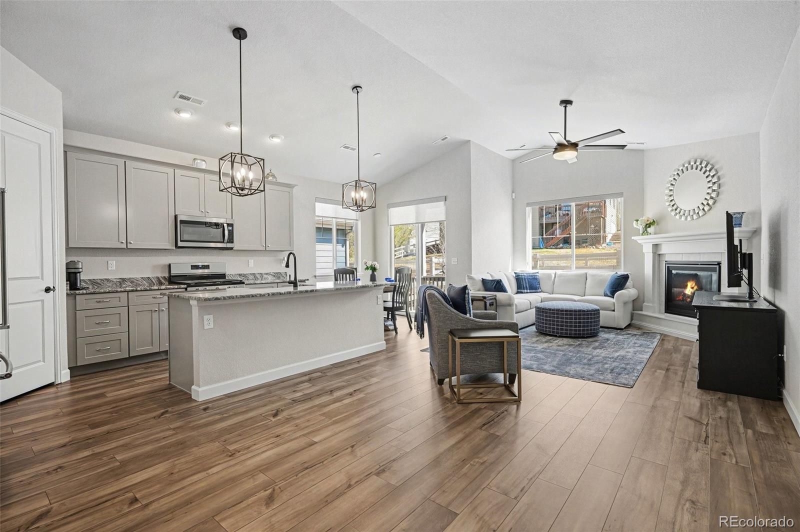 Coming Soon! Elevated, easy living awaits in this beautifully designed ranch in Castle Rock’s highly sought-after 55+ community, Rhyolite Ranch. Step inside and you’ll immediately feel the openness of the thoughtfully designed floor plan, where natural light fills the main living spaces and creates a warm, welcoming atmosphere. The heart of the home flows effortlessly from the modern kitchen into the spacious living area that has a gas fireplace, perfect for relaxing mornings or hosting friends and family. The kitchen stands out with sleek stainless appliances, a gas stove for precision cooking, a farmhouse apron sink, a walk-in pantry, and upgraded light fixtures that add a stylish, contemporary touch throughout. This Telluride model is the community's largest floor plan, featuring two bedrooms plus a bonus/flex room. The spacious primary suite hosts a beautiful four piece bathroom, a large walk-in closet, & two linen closets for storage. The second bedroom has its own private en-suite bath. The bonus room easily adapts to your lifestyle whether you need a home office, hobby room, or quiet retreat. Custom blinds & window treatments have been thoughtfully installed, adding both privacy and a polished finish to every room. Enjoy Colorado’s beautiful seasons from both the covered front porch and the private covered back patio—ideal for morning coffee or unwinding in the evening. The professionally designed xeriscape yard delivers curb appeal without the upkeep, giving you more time to enjoy the things you love. Located within the vibrant Crystal Valley Ranch area, residents enjoy access to resort-style amenities including a clubhouse pool, fitness center and outdoor pickleball courts—all included through the HOA. If you’ve been searching for low-maintenance, move-in-ready living with thoughtful upgrades in a welcoming, active adult community—this is where your next chapter begins.