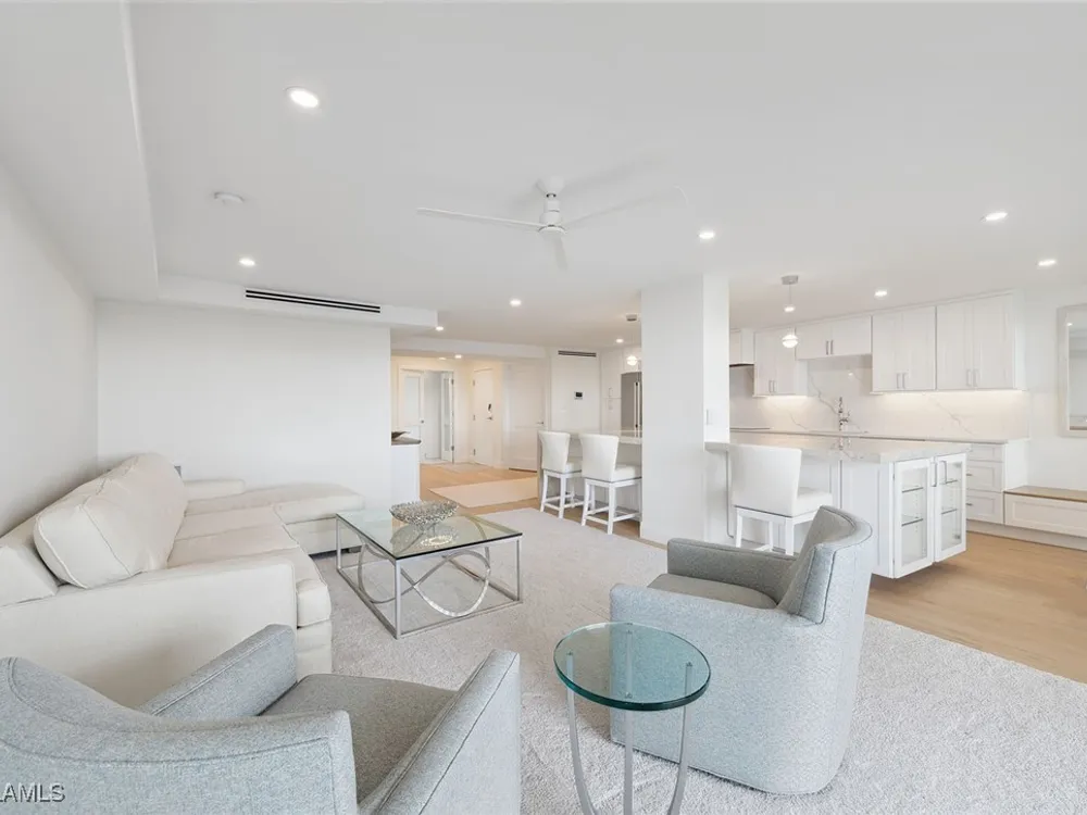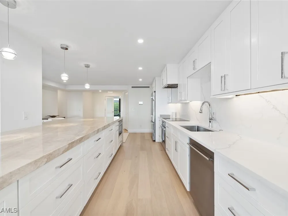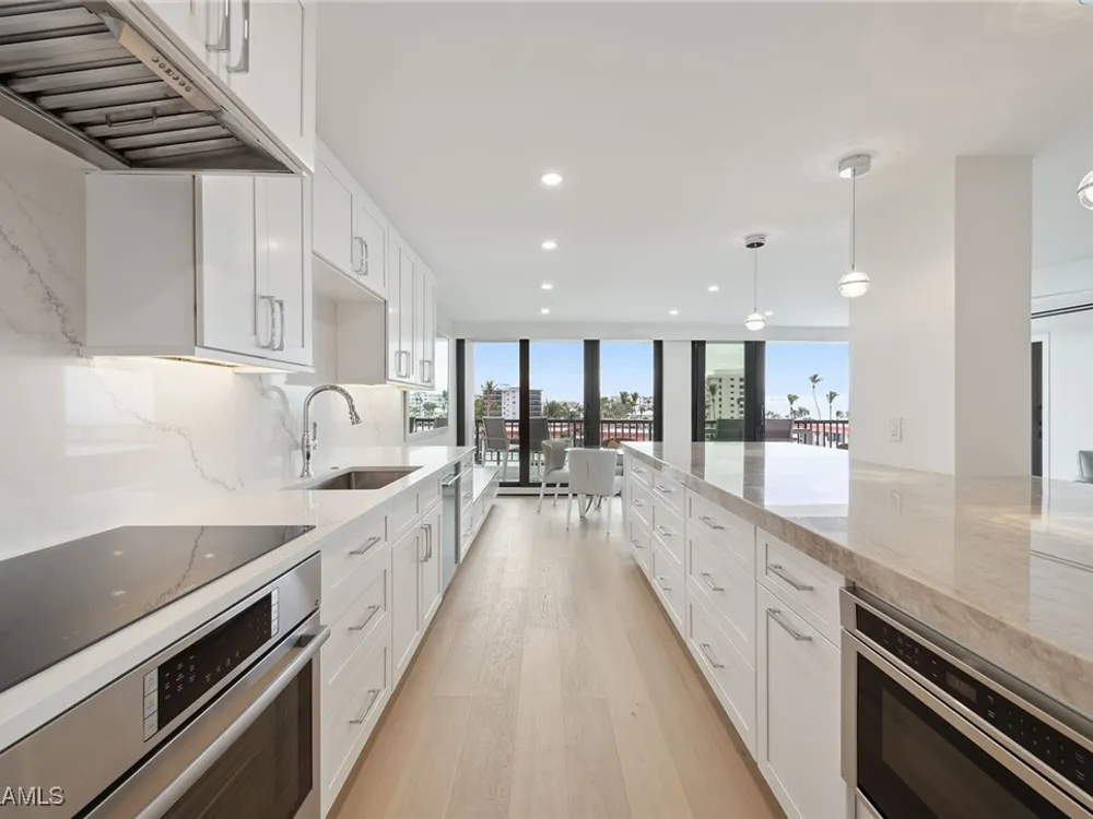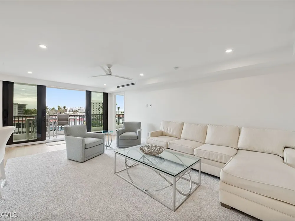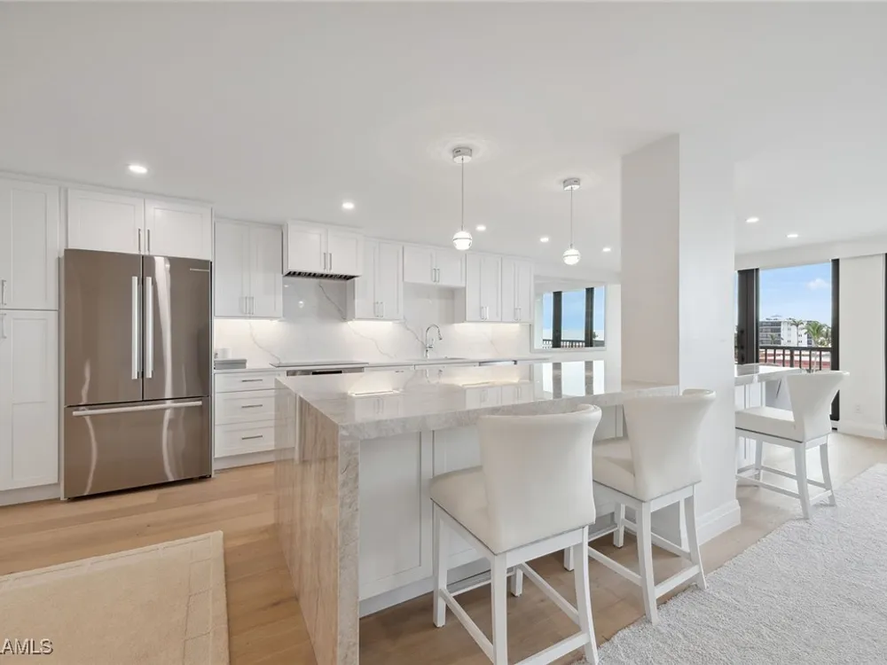 Breathtaking southwestern views of the Gulf and Doctors Pass await you at this fully remodeled fifth-floor home in the west building of Admiralty Point. The redesigned floor plan is highlighted by an open kitchen, complete with stainless steel Bosch appliances, quartz countertops and backsplash, and an oversized Taj Mahal quartzite island complete with seating and ample storage space. Additional features include recessed lighting, all-new ductwork, HVAC system, a tankless instant water heater, a smart home control panel, impact sliders and windows, and more. Enjoy direct beach access and direct gulf access with on-site boat docks and a kayak launch. Added security is provided with under-building parking, a secured lobby, 24-hour patrolled grounds and a gate guard. Admiralty Point has it all on 10 acres of prime beach and bayfront property with two social rooms, fitness facility, Har-Tru tennis courts, shuffleboard, gas grills, a vehicle wash area and even a kiddie pool. Additionally, residents can take advantage of sunrise and sunset pools, unique to Admiralty Point. After a day on the water, indulge in world-renowned shopping and dining at Venetian Village, 5th Ave South or 3rd Street South, all just a short drive away.