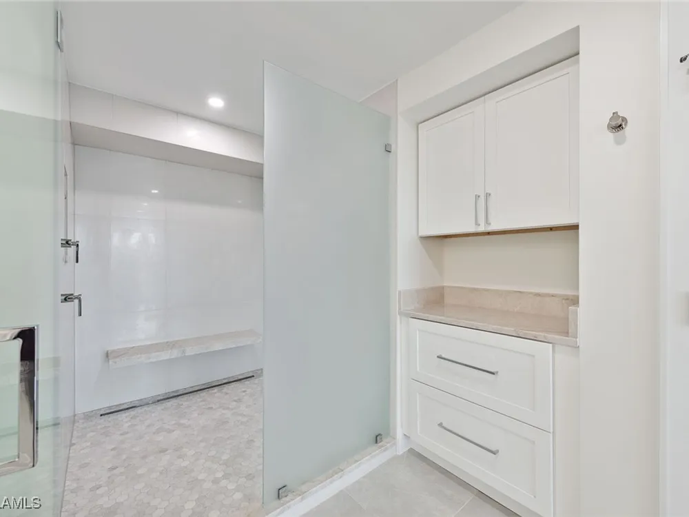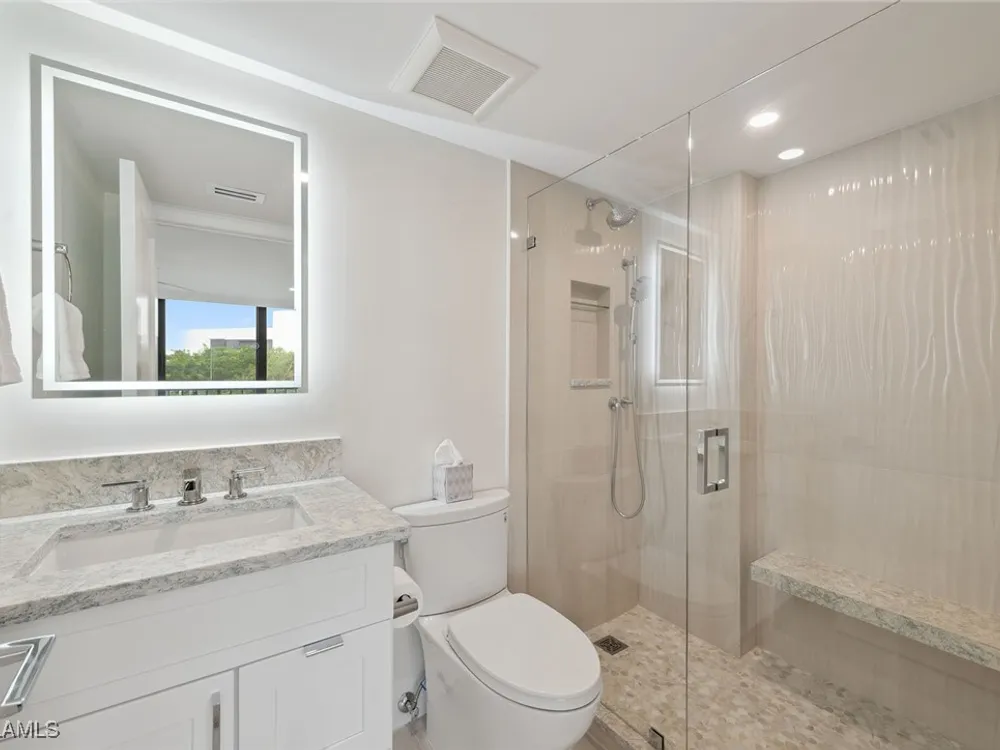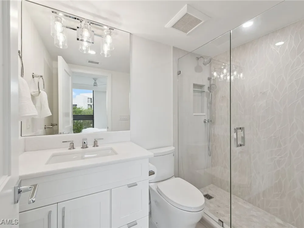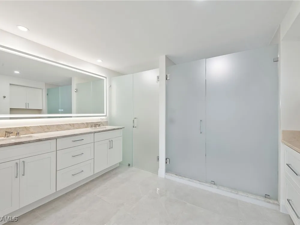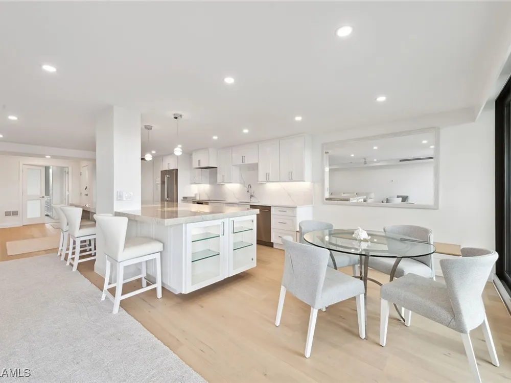 Breathtaking southwestern views of the Gulf and Doctors Pass await you at this fully remodeled fifth-floor home in the west building of Admiralty Point. The redesigned floor plan is highlighted by an open kitchen, complete with stainless steel Bosch appliances, quartz countertops and backsplash, and an oversized Taj Mahal quartzite island complete with seating and ample storage space. Additional features include recessed lighting, all-new ductwork, HVAC system, a tankless instant water heater, a smart home control panel, impact sliders and windows, and more. Enjoy direct beach access and direct gulf access with on-site boat docks and a kayak launch. Added security is provided with under-building parking, a secured lobby, 24-hour patrolled grounds and a gate guard. Admiralty Point has it all on 10 acres of prime beach and bayfront property with two social rooms, fitness facility, Har-Tru tennis courts, shuffleboard, gas grills, a vehicle wash area and even a kiddie pool. Additionally, residents can take advantage of sunrise and sunset pools, unique to Admiralty Point. After a day on the water, indulge in world-renowned shopping and dining at Venetian Village, 5th Ave South or 3rd Street South, all just a short drive away.