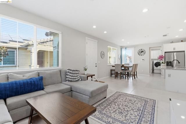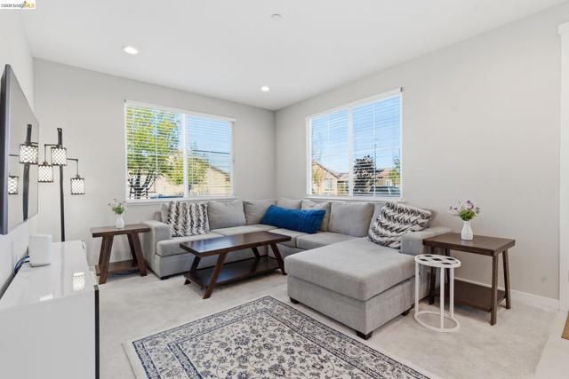 Welcome to this beautifully maintained, light-filled one-story duet home in Summit at Liberty, a 55+ active adult community. Step inside to a bright and inviting living area with recessed lighting in the living room and kitchen eating area, creating a warm and welcoming space for relaxing or entertaining. The kitchen features modern white cabinetry, granite countertops, and a stylish backsplash over the stove. It also includes a stainless-steel sink and LG stainless steel appliances, including a side-by-side refrigerator, gas stove with range hood, microwave, and dishwasher. Beautiful tile flooring enhances the kitchen, bathroom, and laundry room, while light-colored carpeting adds comfort in the living room and bedrooms. Push-up blinds on windows throughout provide a clean, modern look, and the washer and dryer are included. Additional features include a 1-car garage and leased solar! Residents of Summit at Liberty enjoy resort-style community amenities including a clubhouse, gathering barn, tennis and pickleball courts, a pool and spa, a fully equipped fitness center, and planned activities. Welcome Home!