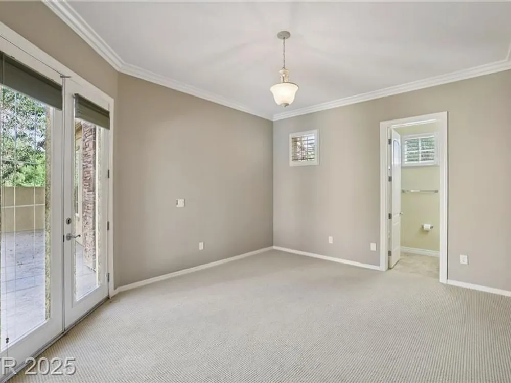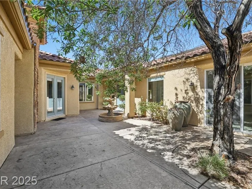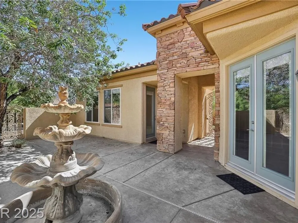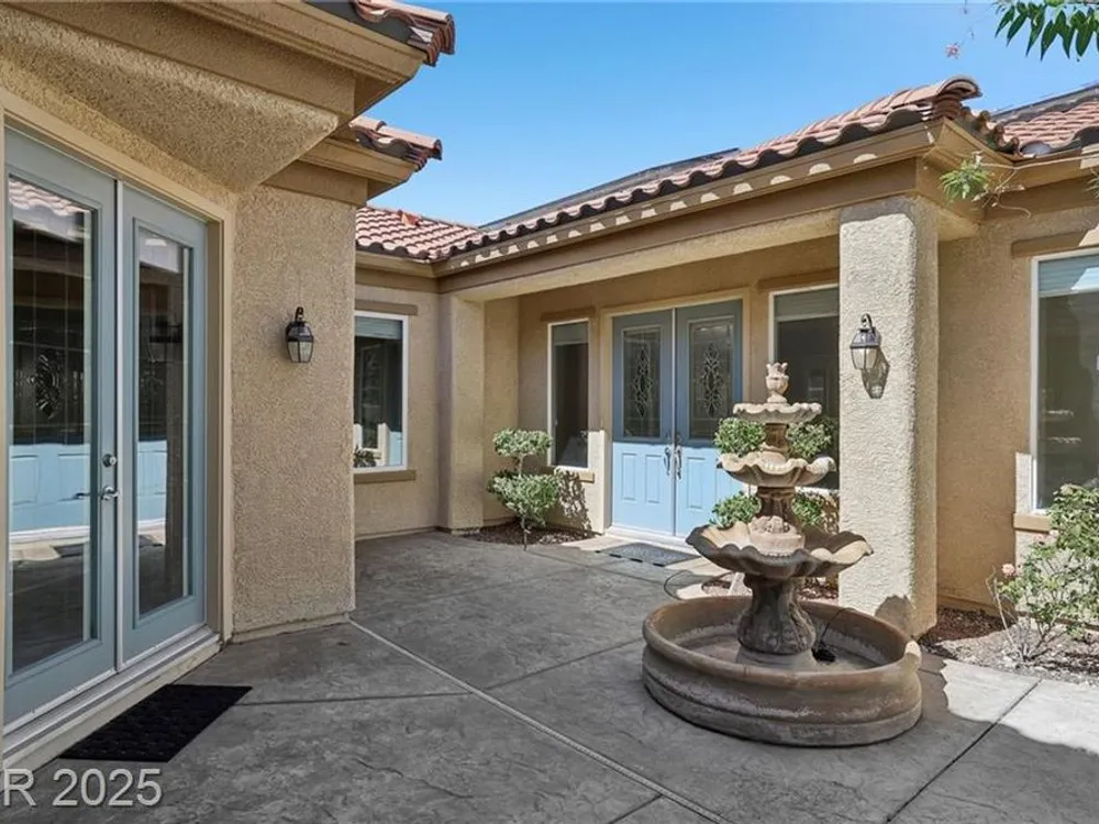 You deserve the best in Pinnacle Village, a gated Sun City Anthem community. Homes rarely combine privacy and comfort like this. A gated front courtyard connects the living room, detached CASITA, and dual primary suites, setting the stage for seamless indoor-outdoor living. Enter through striking stained glass French double doors into an open layout with 9' ceilings, 8' doors, and crown molding. Energy efficient 8’ high windows bring in tons of natural light. The large great room with wet bar is perfect for entertaining, while the chandelier-lit formal dining room adds elegance and convenience. The gourmet kitchen features all stainless steel appliances, including 5-burner cooktop and double convection oven. Both primary bedrooms include private full baths, and shutters on every window allow light and privacy as you choose. The wrought iron, fully fenced backyard is a rare treat in this neighborhood, offering a private retreat for relaxation or gatherings. Come fall in love today!
