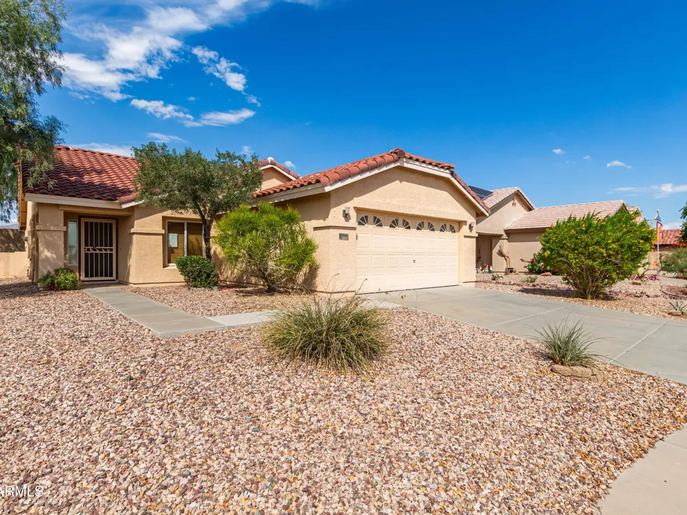 Located in the 55+ Sundance Adult Village, this home is situated within 1 mile of Sundance Parkway, the I-10 freeway, and multiple shopping and dining locations. Inside, an open-concept layout features vaulted ceilings, ceiling fans, and built-ins for added functionality. A front-facing den/office provides a flexible workspace, while the great room and primary bedroom both open to a full-length covered patio, providing outdoor access. Residents have access to community amenities including an 18-hole championship golf course, two pools, hot tub, fitness center, and clubhouse.