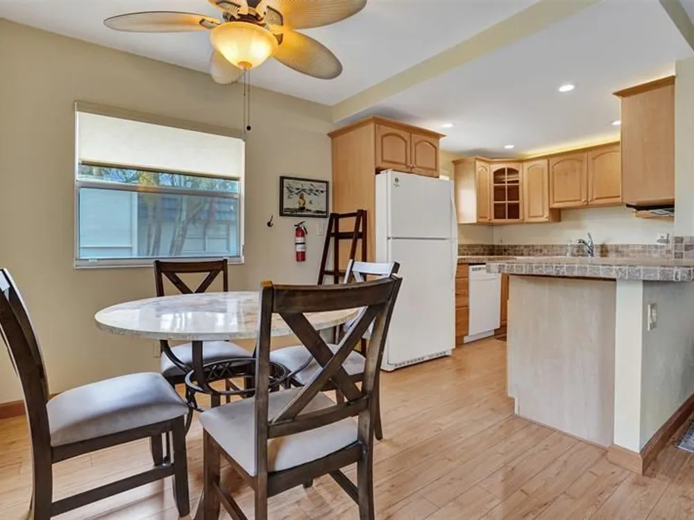Discover this tastefully updated 2-Bed/2-Bath in the sought-after Kings Point 55+ community. Complete with a private screened back patio with a washer and dryer. This unit is located on the 2nd Floor with secure elevator access. Enjoy a bright open layout with a newer kitchen featuring extra cabinetry, tumble stone countertops, countertop seating, and updated appliances. Both bathrooms have been redone with granite countertops. Very large walk-in closet in the primary bedroom. Kings Point offers world-class amenities, including golf, tennis, pools, a large clubhouse, fitness facilities, a theater, and a courtesy bus. Located on a quiet side of the community close to shopping, dining, and beaches. **CAN PURCHASE FURNISHED**