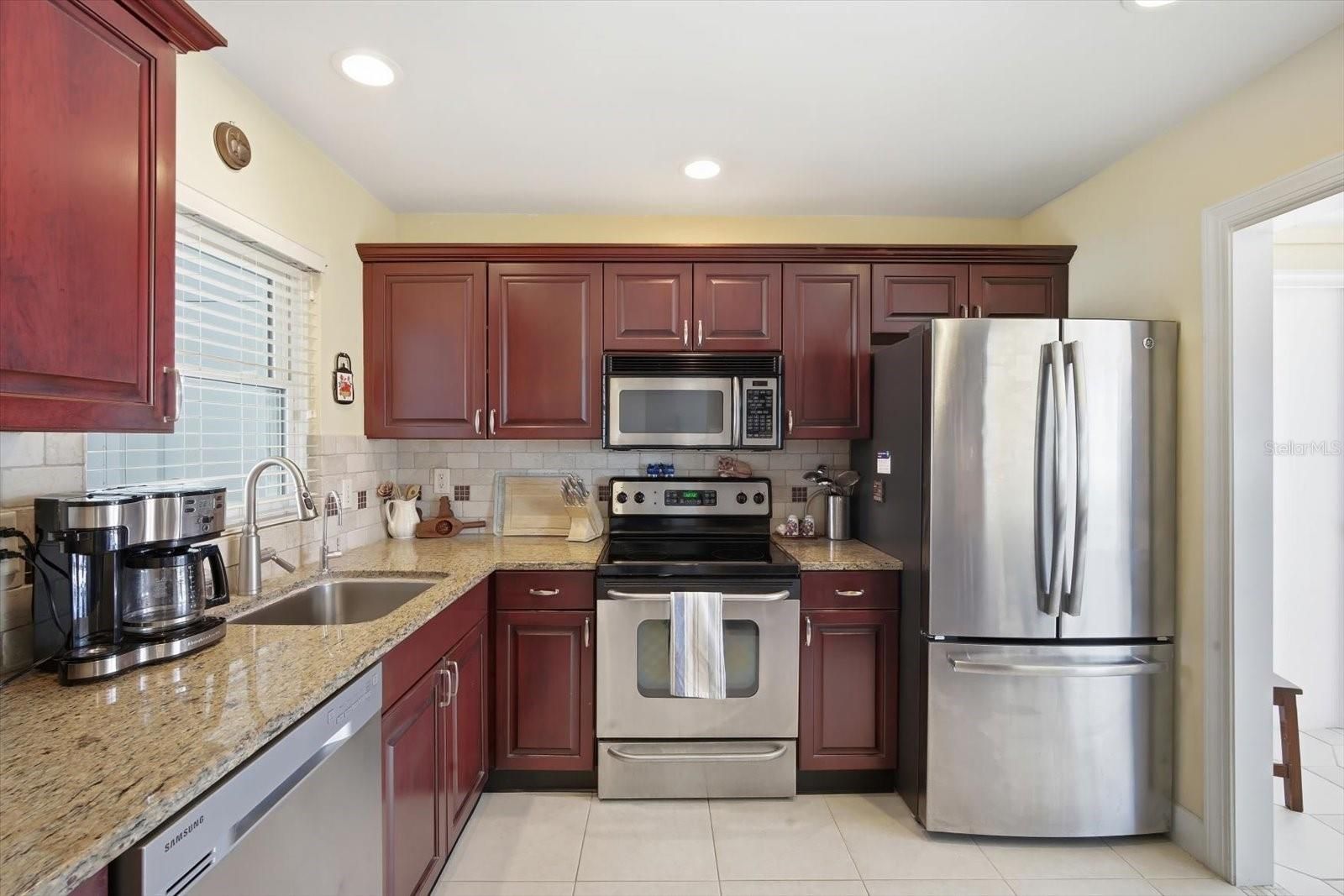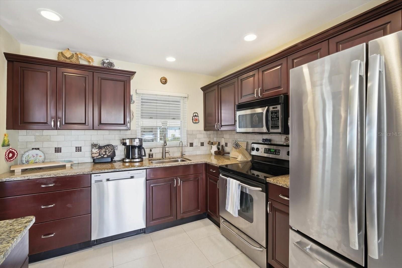 Welcome to easy Florida living in this 2-bedroom, 2-bath 55+ villa in beautiful Sarasota just 15 minutes away from Siesta Key! Comfortable, bright, and thoughtfully designed and NEW Roof and HVAC (2024) for added peace of mind - Come enjoy the relaxed lifestyle Sarasota is known for. Step inside to discover tile flooring throughout the entire home — no carpet here, creating a low-maintenance living space that’s perfect for Florida living. The stylish kitchen features rich wood cabinetry, granite countertops, a beautiful backsplash, and stainless steel appliances, offering both charm and functionality for everyday cooking and entertaining. Just off the kitchen, the sunny dining area is filled with natural light thanks to two large sliding glass doors, making it a welcoming place to start your morning or gather with friends. The spacious great room provides plenty of room to relax or host guests, with an open feel that makes the home comfortable and inviting. Both bedrooms are nicely sized, including the primary suite with a walk-in closet and private bath, offering a peaceful retreat at the end of the day. A laundry room conveniently located just off the 2 car carport adds everyday ease and practicality. Life in Strathmore Riverside Villas is about more than just the home — it’s about the lifestyle. Residents enjoy a wide variety of amenities designed for both relaxation and connection. The clubhouse serves as the heart of the community, featuring a fitness room, library, billiards, ping-pong, and outdoor recreation areas. A large heated pool is perfect for lap swimming, exercising, or simply relaxing in the Florida sunshine. Even better, the monthly condo fees make living here simple and stress-free, covering exterior maintenance, grounds care, water, and cable. Owners only pay for electricity and internet, allowing you to spend more time enjoying the Sarasota lifestyle and less time worrying about upkeep. For those who love being near the water, the community offers day docks for launching kayaks and fishing, along with a marina where owners can rent boat slips on a first-come basis. The social calendar stays active year-round with dances, dinners, educational luncheons, game nights, and community gatherings. Residents can also participate in a variety of social clubs including golf, arts and crafts, cards, boating, dining groups, and more, making it easy to meet neighbors and stay involved. Living in Sarasota means enjoying one of Florida’s most beloved coastal destinations. Known for its beautiful Gulf Coast lifestyle, Sarasota offers an incredible mix of award-winning beaches, dining, and outdoor recreation. Just a short drive away is the famous Siesta Key Beach, celebrated for its powdery white quartz sand and stunning sunsets. Spend your days soaking up the sunshine or enjoying waterfront restaurants in Siesta Key Village. Sarasota is also known for its vibrant cultural scene, including theaters, museums, and waterfront parks, along with endless opportunities for boating, fishing, golf, and exploring the natural beauty of Florida’s Gulf Coast. Whether you’re enjoying a quiet morning coffee at home, joining neighbors for a social event, or heading out to the beach for the afternoon, life here offers the perfect balance of relaxation and activity. If you’ve been searching for a welcoming 55+ community, fantastic amenities, and the Sarasota lifestyle close to Siesta Key, this villa is ready to welcome you home.