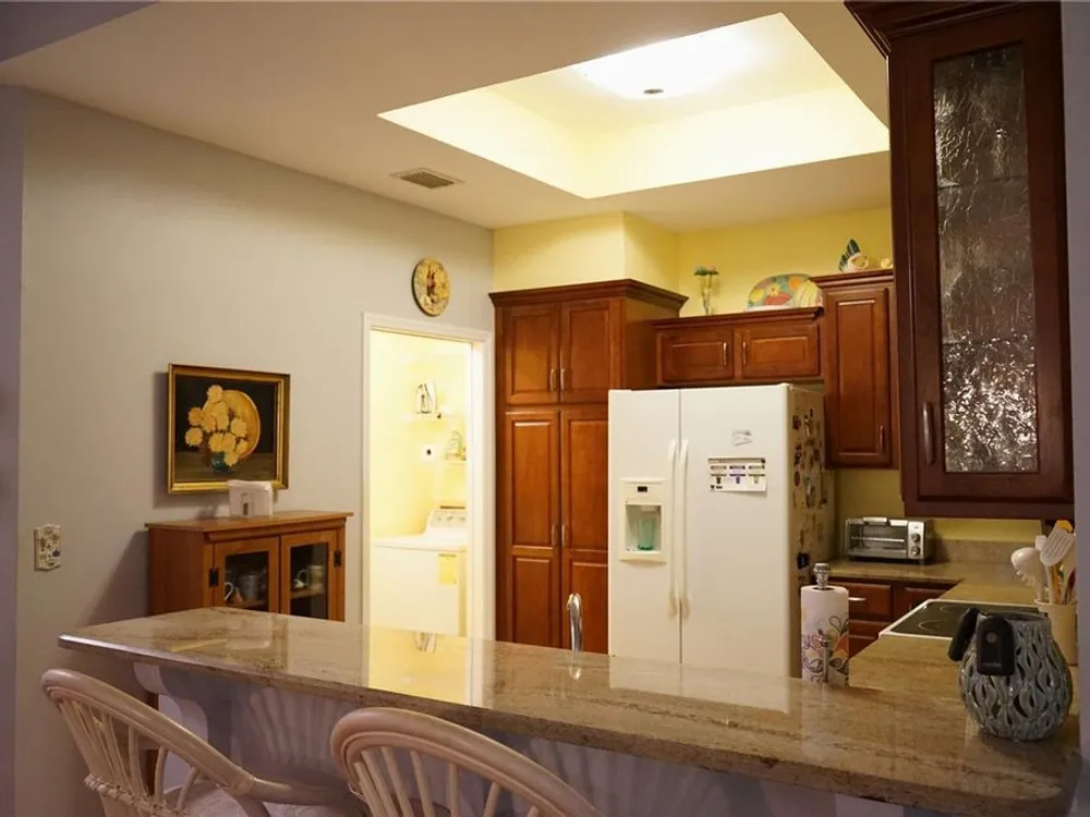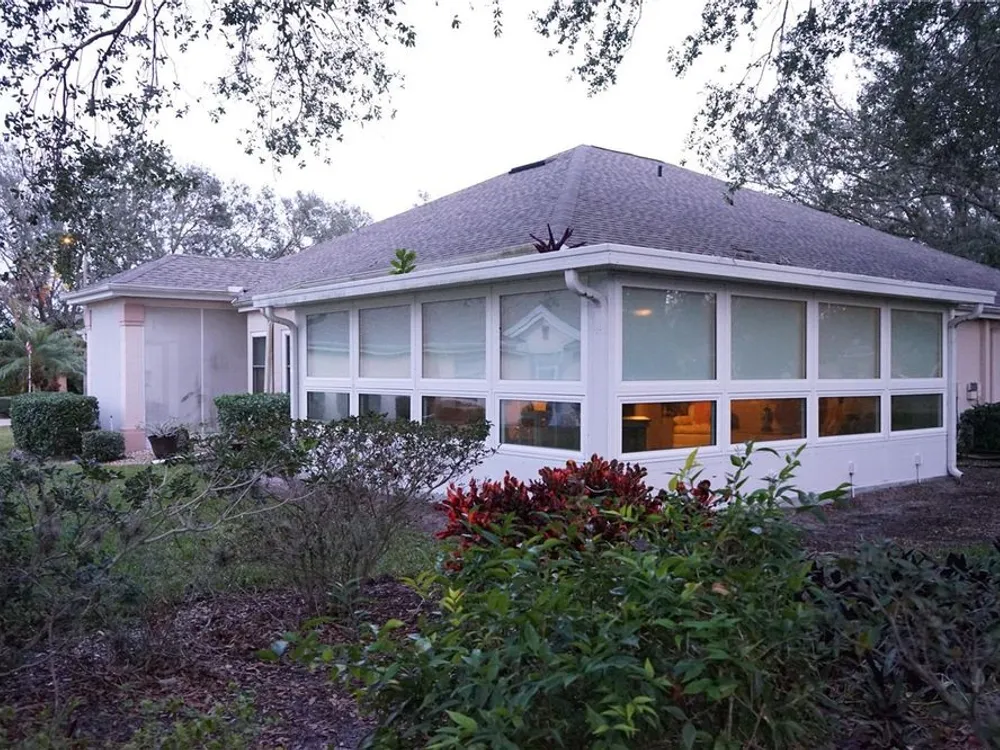 This home is located in Kings Point, an activ adlt community located in Sun City Center where the maintenance fees cover, cable, internet, yard, streets, water, sewer, trash, recreation, pools and more !! As you enter the screened front porch you'll find enough room to sit and enjoy your morning coffee. You'll enter into the great room with cathedral ceilings that covers the dining and living room with the spacious kitchen here as well. There are granite tops, plenty of cabinets, some have glass doors, crown molding, rollouts, a large pantry and more ! The laundry closet is adjacent for easy access. The owners bedroom is off the living space and holds a king size bed, has a walk in closet, dual sinks and walk in shower. The guest area at the front of the home is also a good size room and has a window seat. The glass enclosed lanai is extra long and wide and perfect for a hobby or office area. The 2 car garage comes with extra shelving for holiday decorations and beach gear. Located on a cul de sac you will find this home the perfect place too enjoy your new lifestyle.